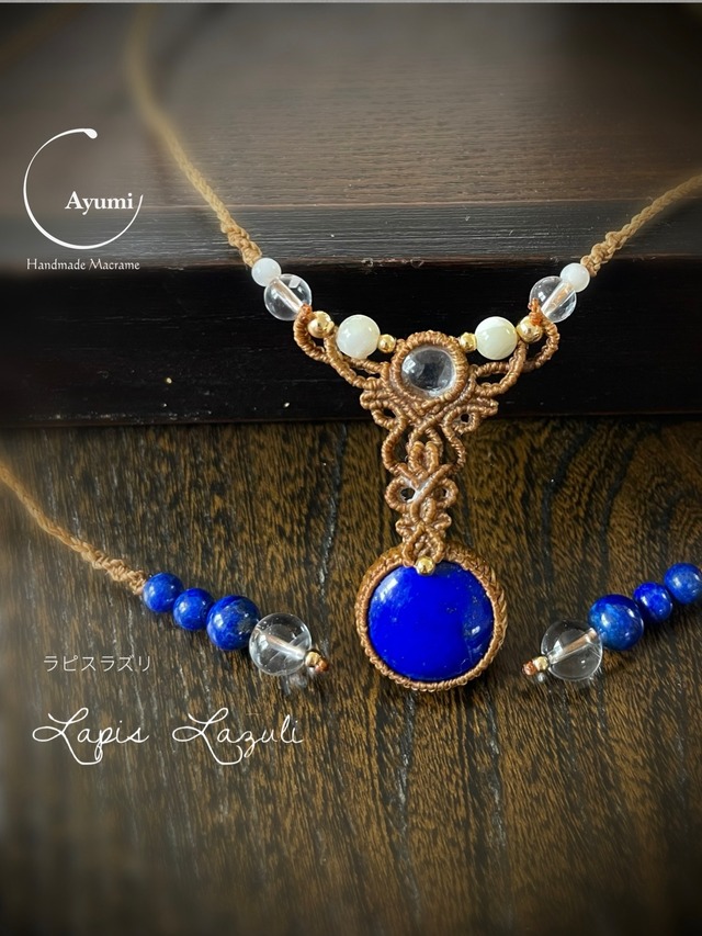 ラピスラズリと水晶ポイントの天然石ビーズのマクラメ編みネックレス♪♪♪