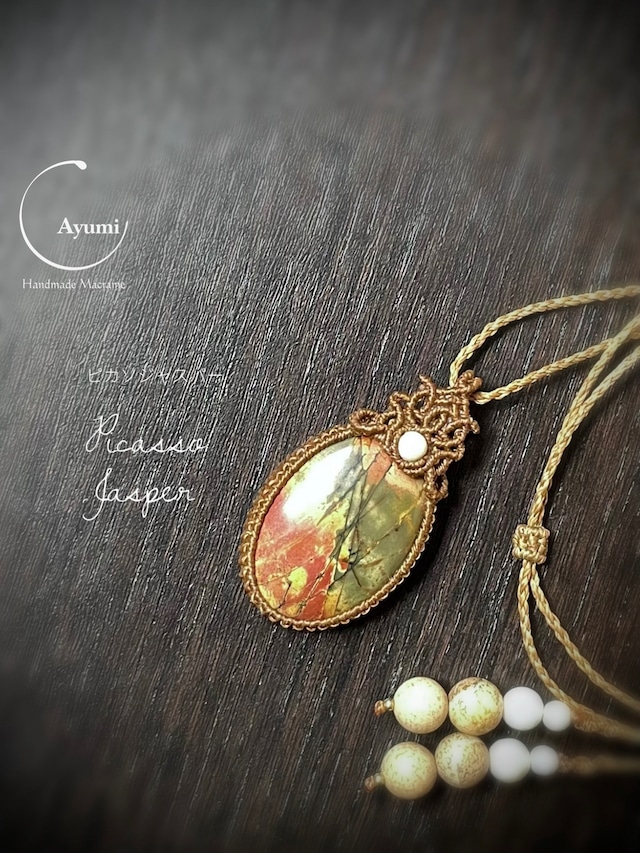 ピカソジャスパーの天然石マクラメ編みネックレス♪