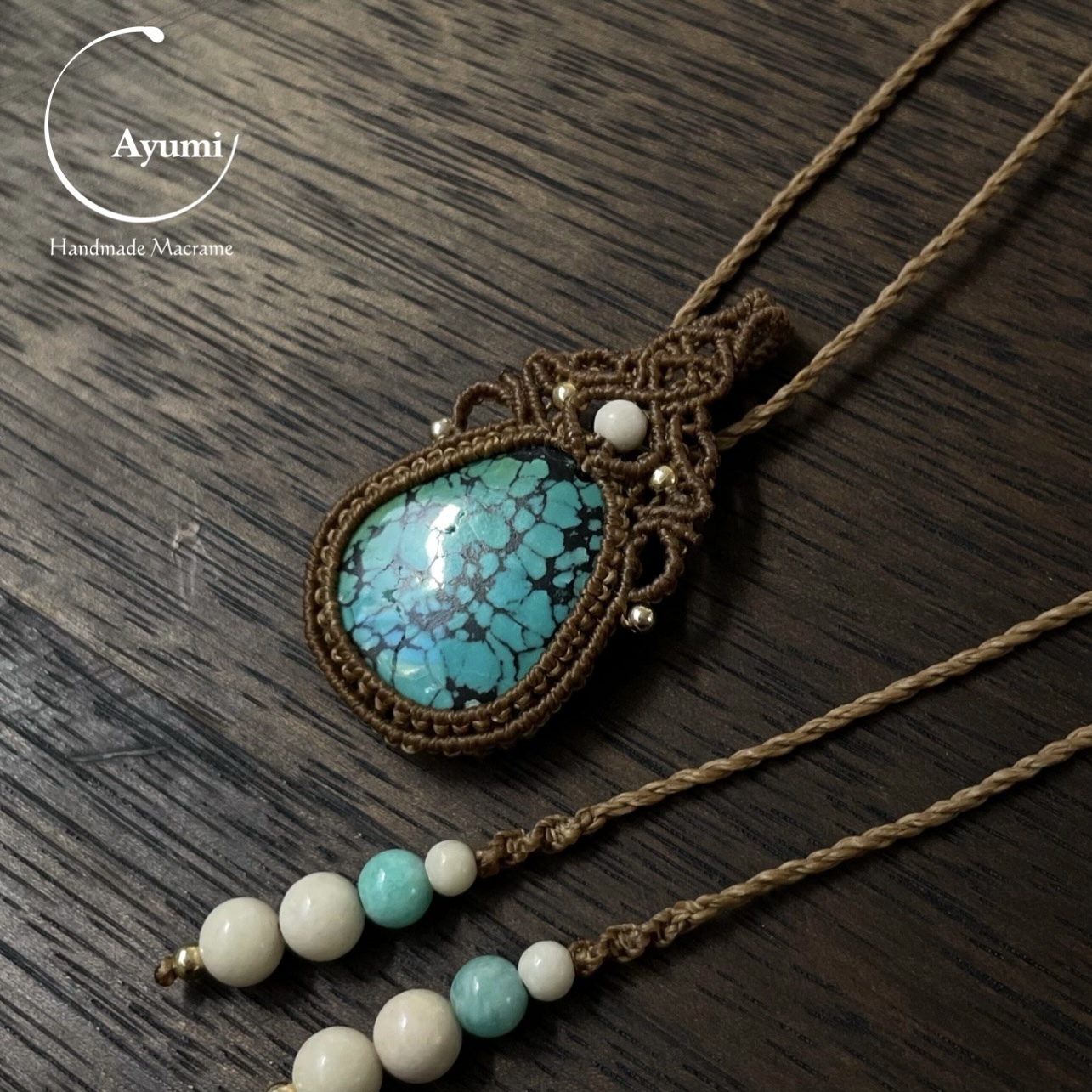 ターコイズ【12月誕生石】の天然石マクラメネックレス