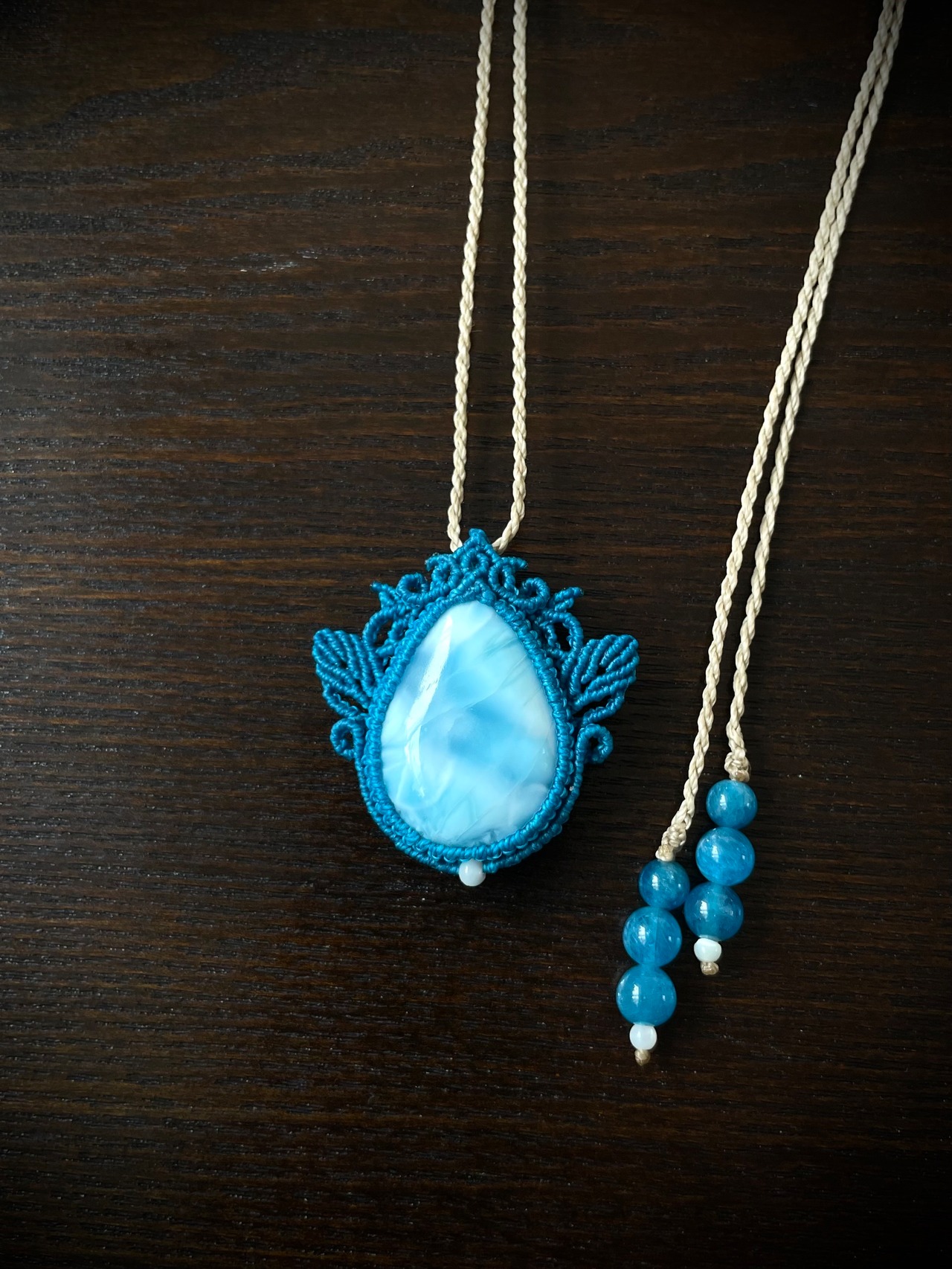 おだやかな波の誘い♪天然石マクラメ編みネックレス♪♪♪
