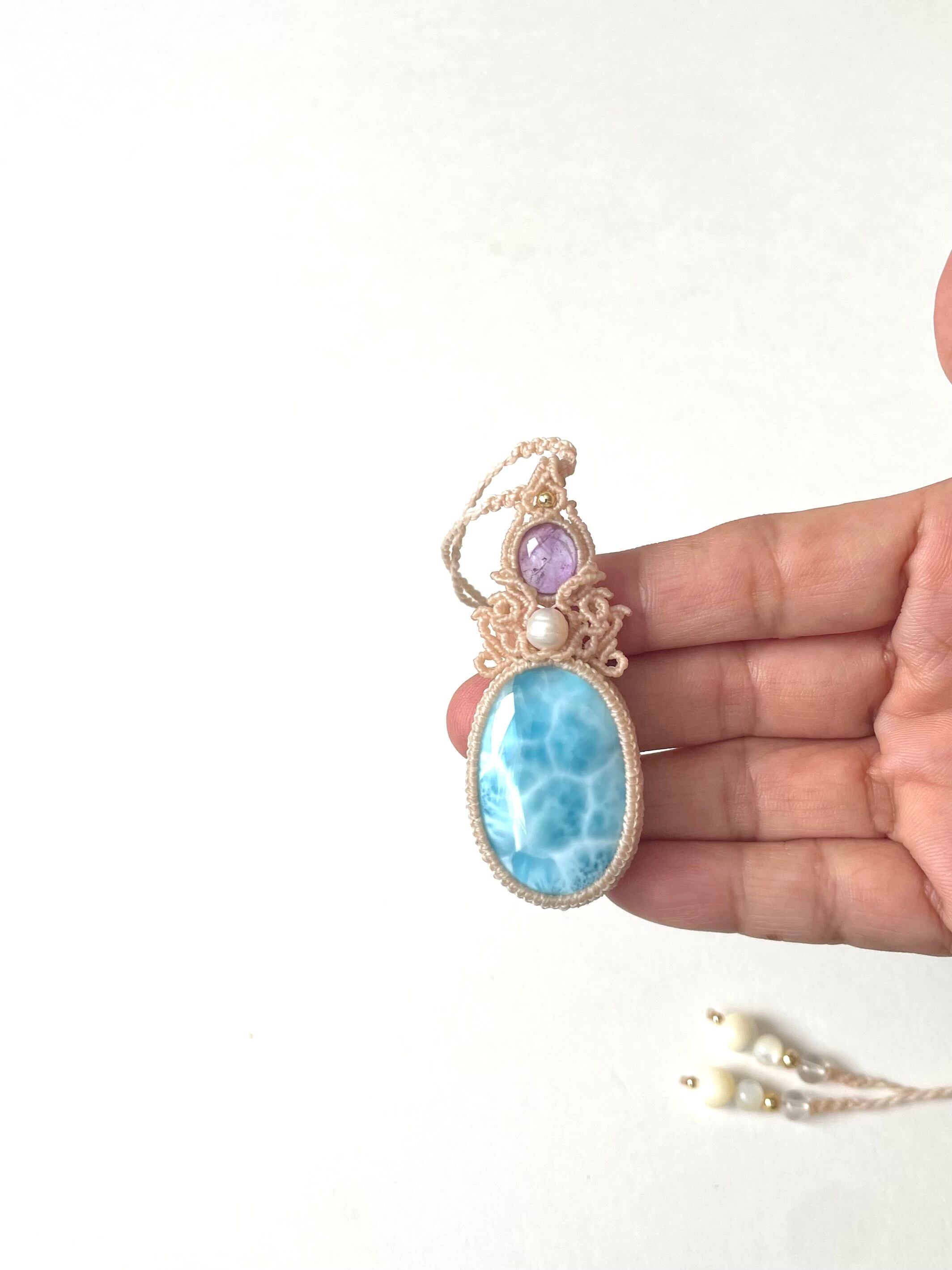 マクラメ 大人 上品 プレゼント プチギフト 天然石 マクラメネックレス マクラメペンダント マクラメアクセサリー 天然石ネックレス 天然石ペンダント 天然石アクセサリー クリスマス お守り お守りジュエリー ラリマー