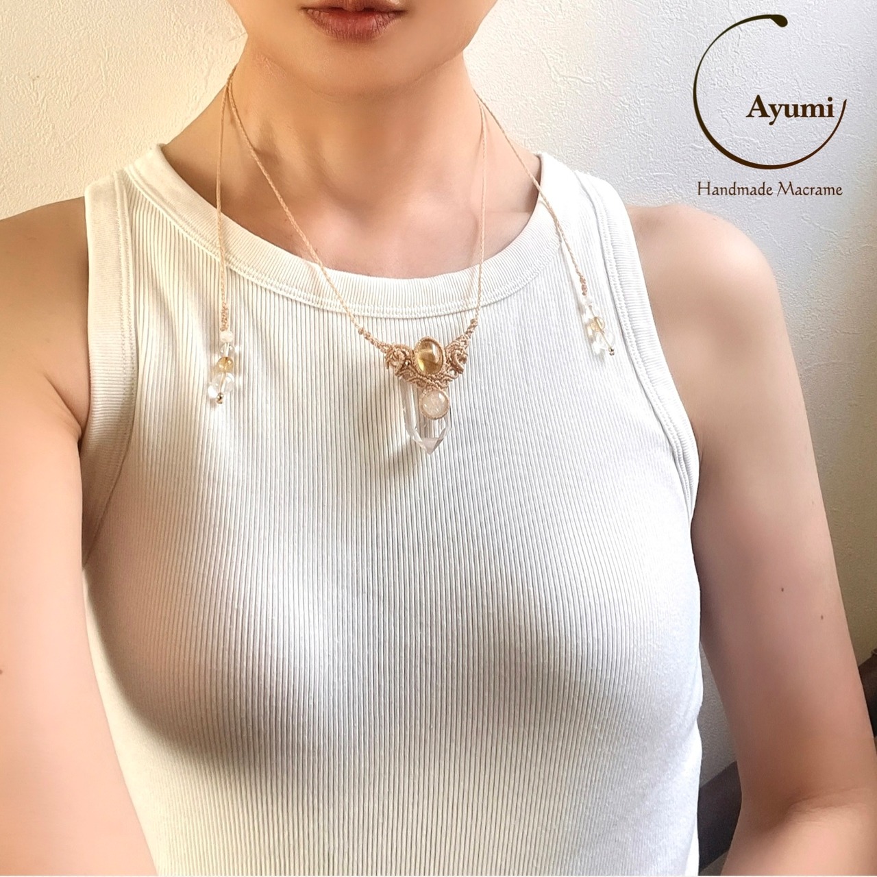 マクラメ 大人 上品 プレゼント プチギフト 天然石 マクラメネックレス マクラメペンダント マクラメアクセサリー 天然石ネックレス 天然石ペンダント 天然石アクセサリー お守り お守りジュエリー シトリン 水晶ポイント
