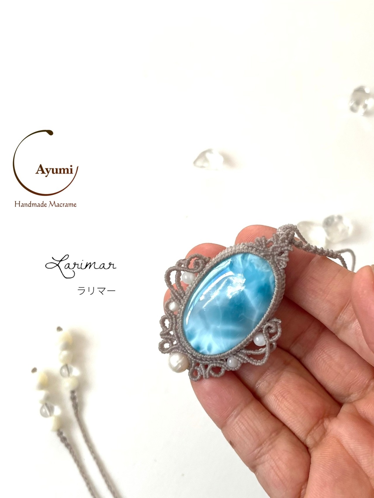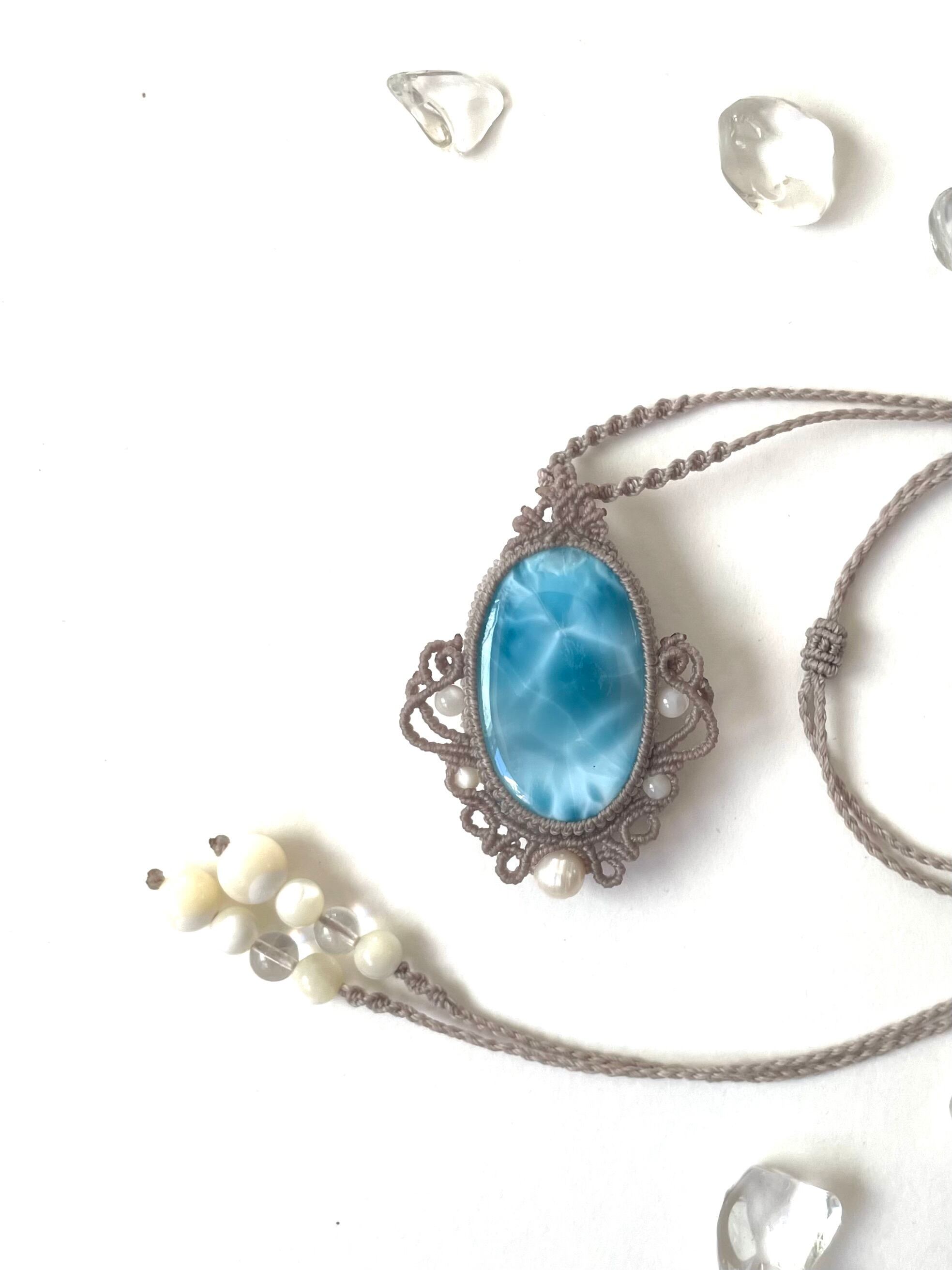 大きくて美しい!大粒ラリマーの天然石マクラメ編みネックレス♪