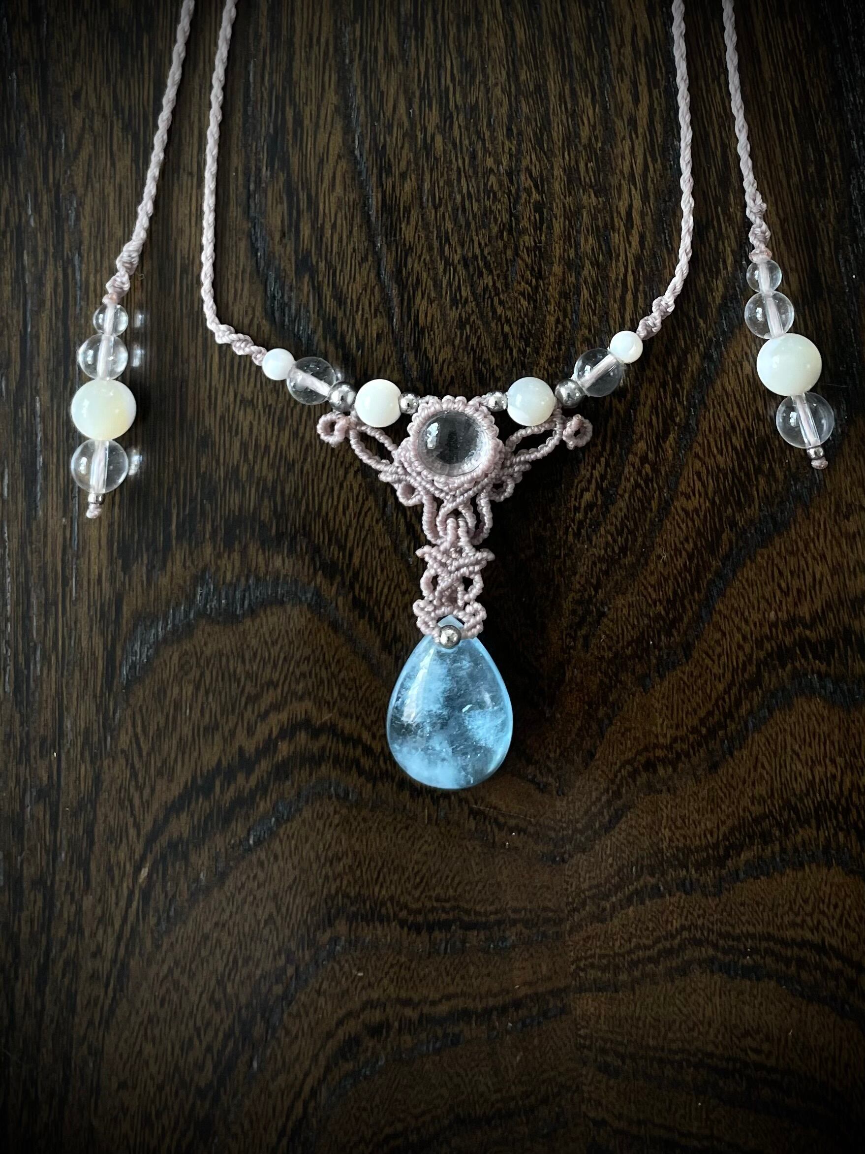 マクラメ 大人 上品 プレゼント プチギフト 天然石 マクラメネックレス マクラメペンダント マクラメアクセサリー 天然石ネックレス 天然石ペンダント 天然石アクセサリー お守りジュエリー アクアマリン
