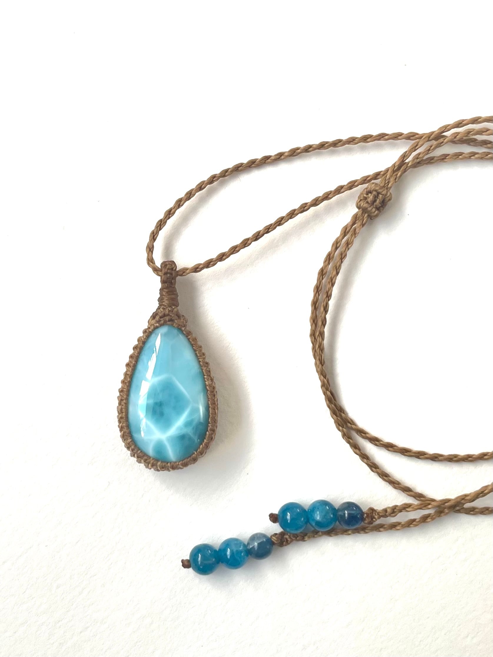 極上ラリマーのシンプル天然石マクラメ編みネックレス♪
