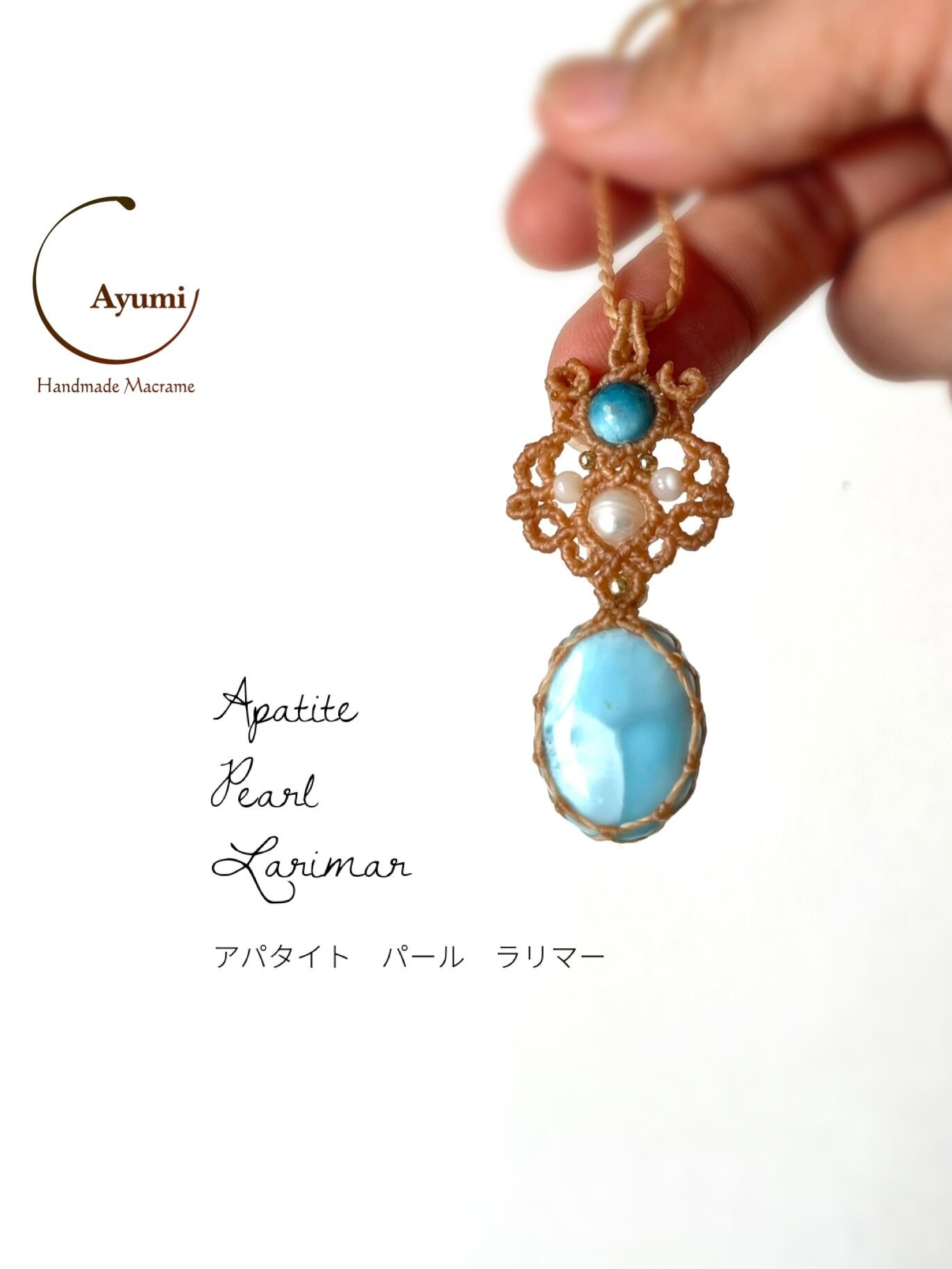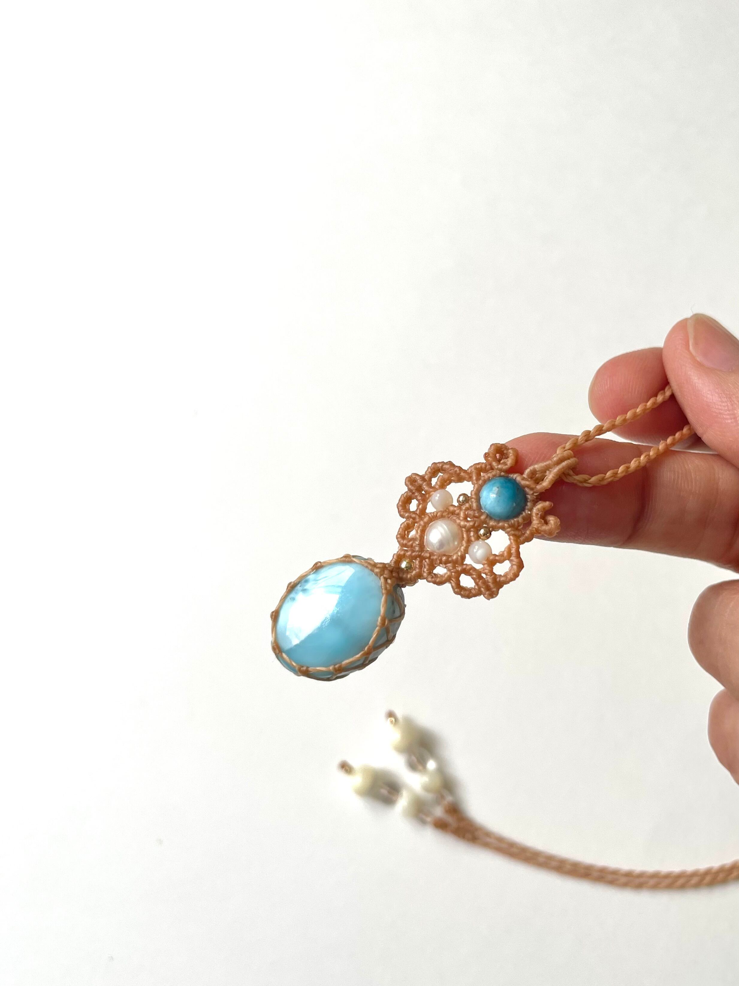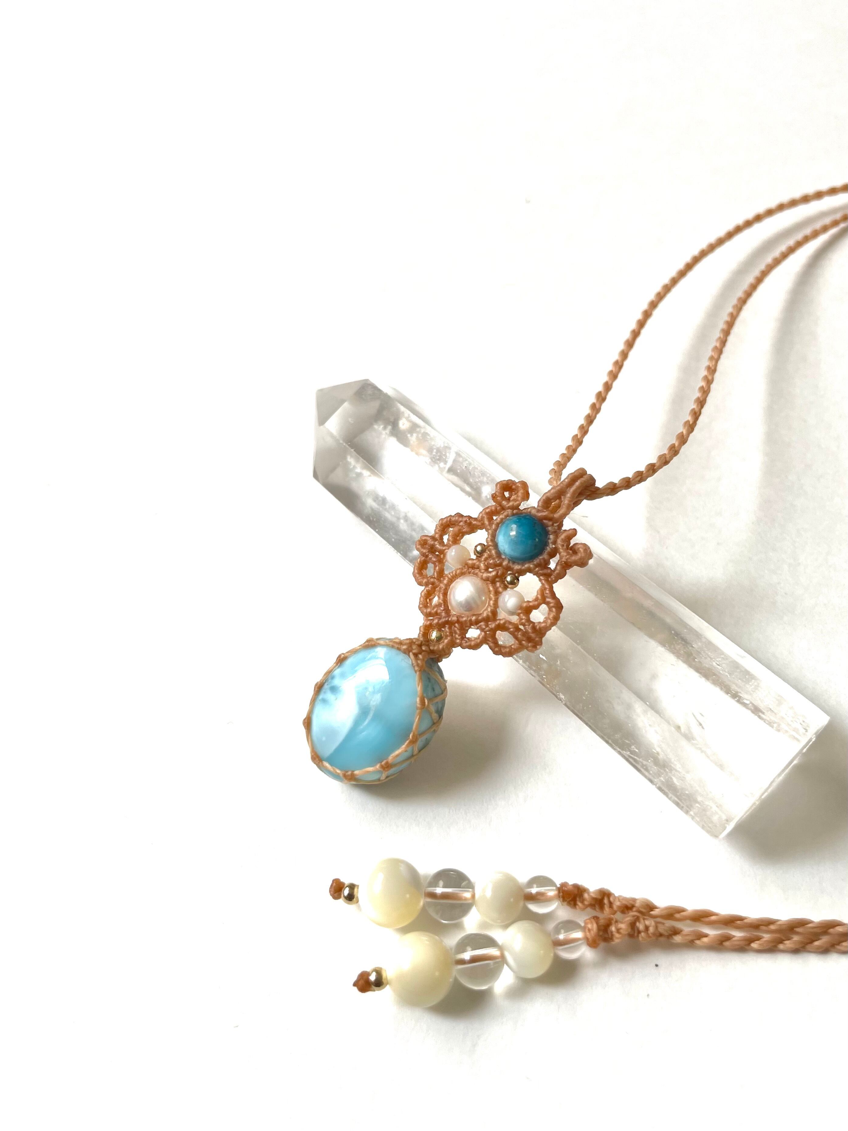 ラリマーとパールの天然石マクラメ編みネックレス♪