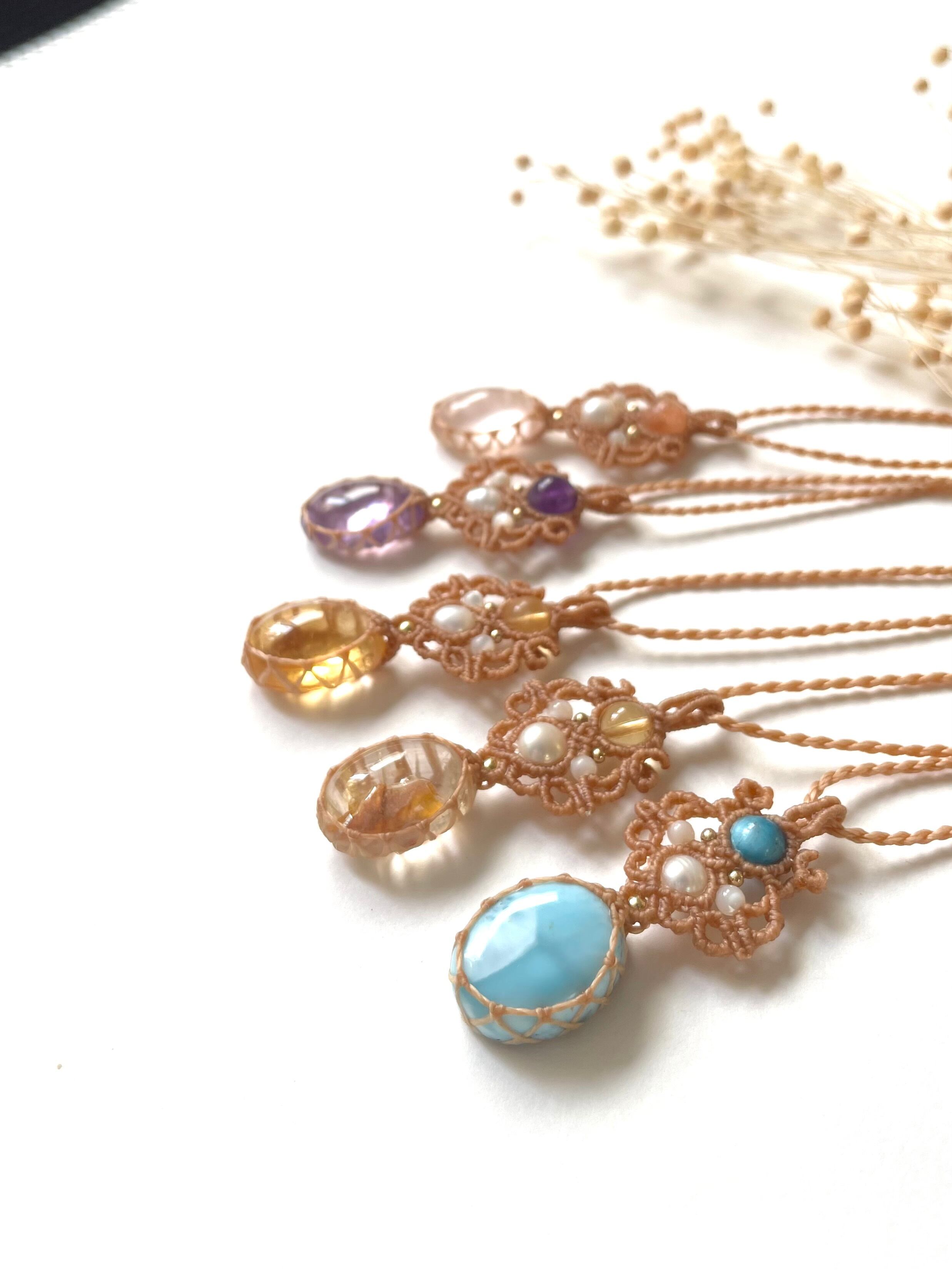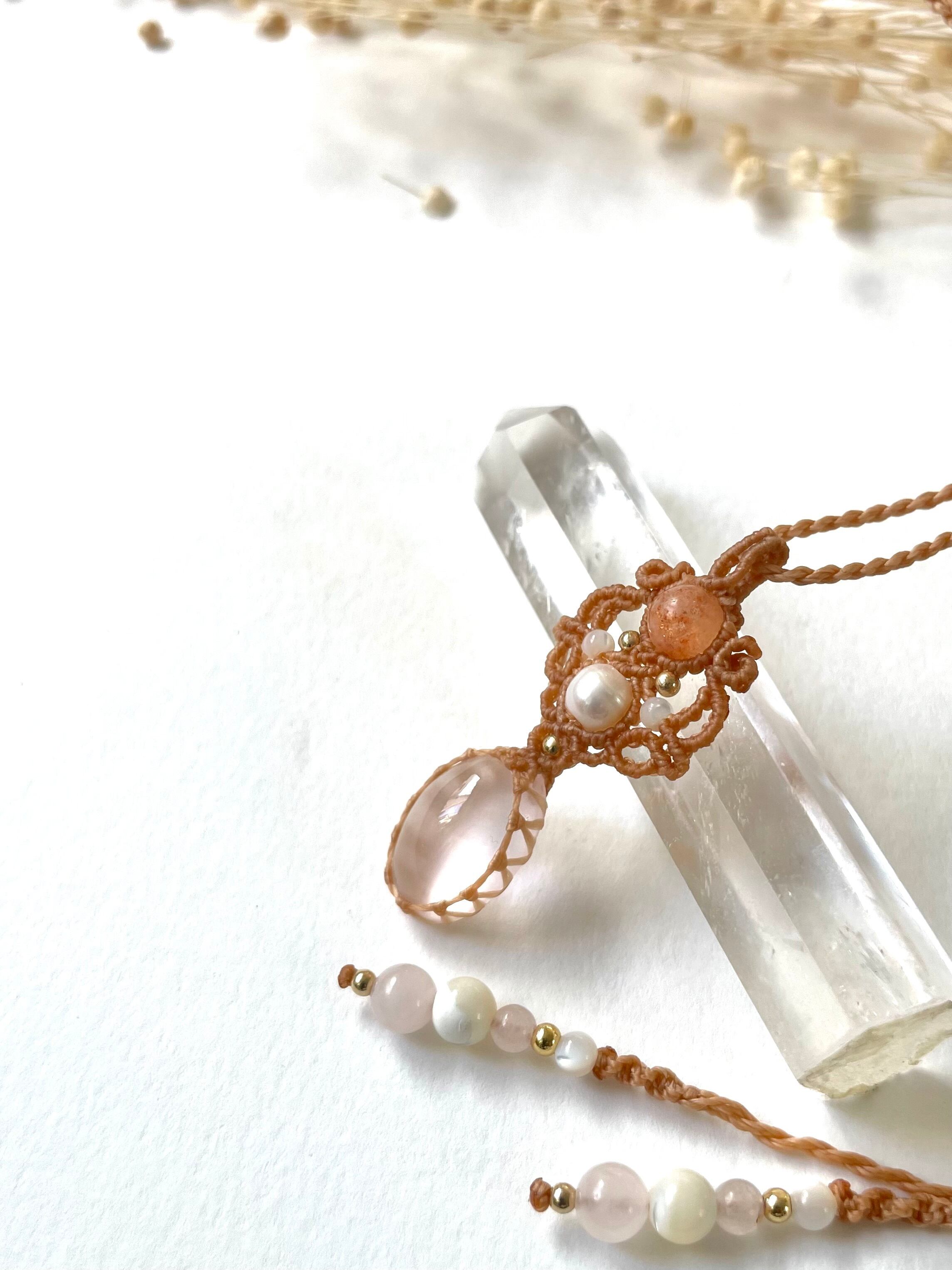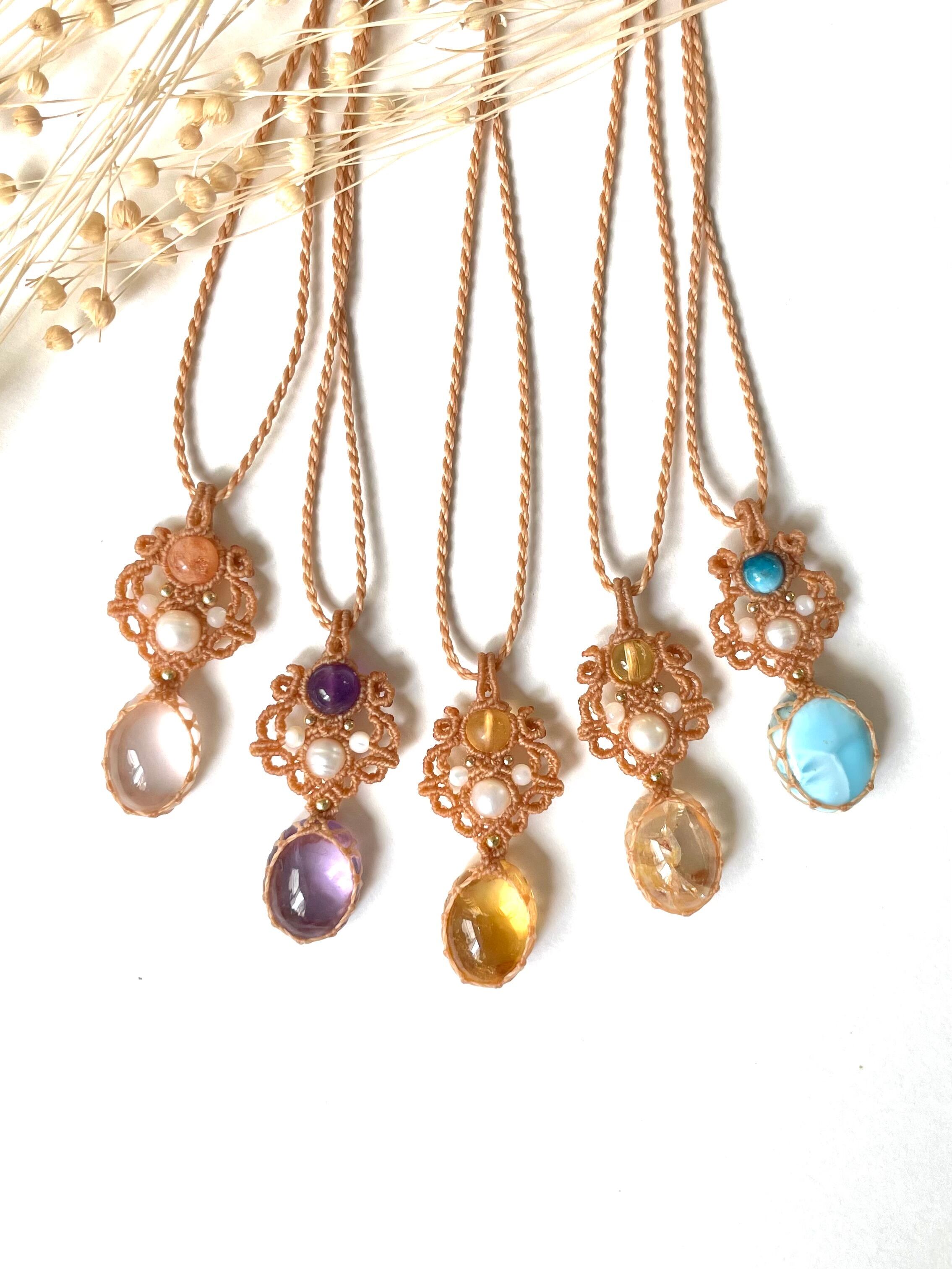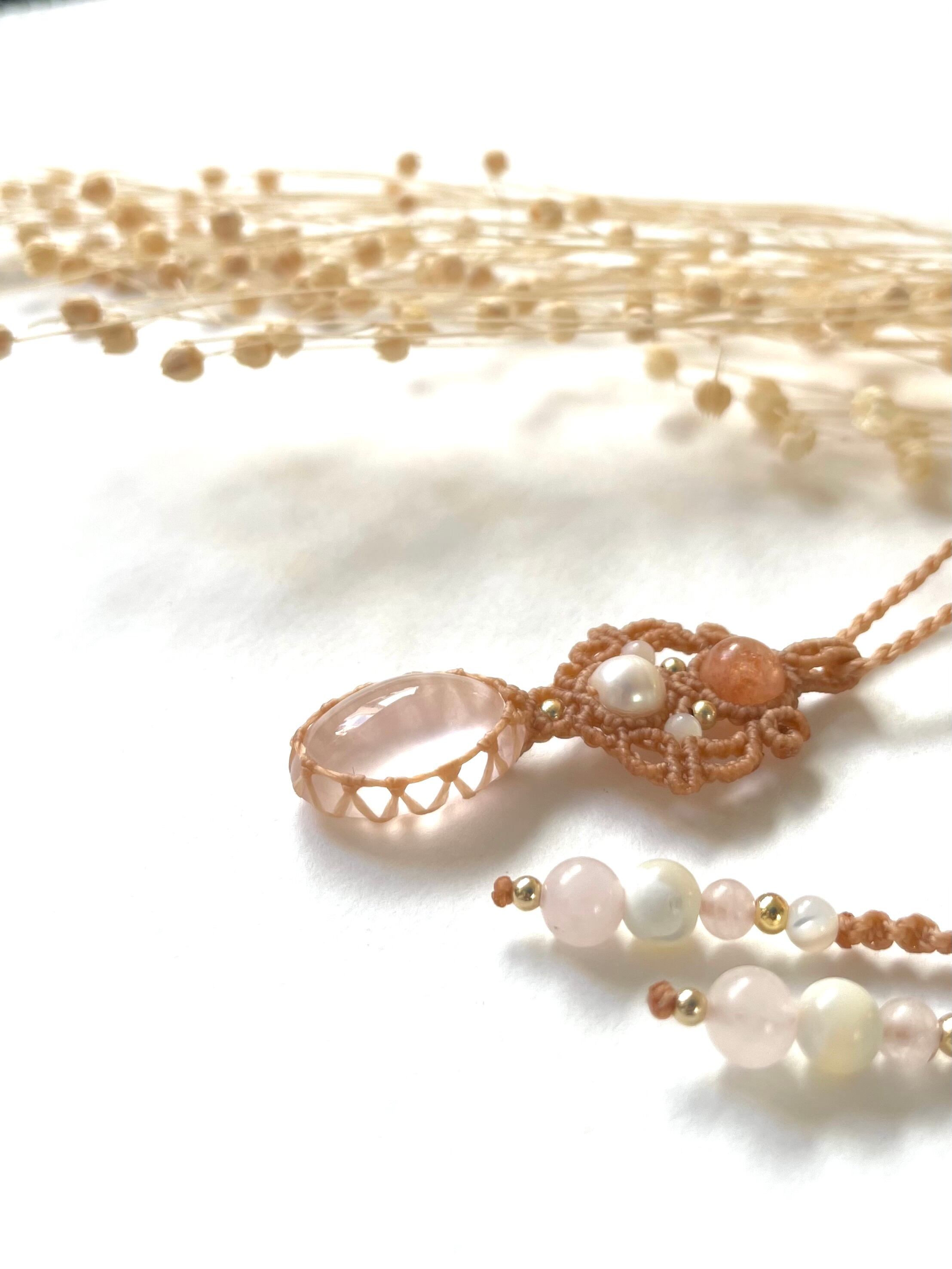 マクラメ 大人 上品 プレゼント プチギフト 天然石 マクラメネックレス マクラメペンダント マクラメアクセサリー 天然石ネックレス 天然石ペンダント 天然石アクセサリー お守りジュエリー ローズクォーツ