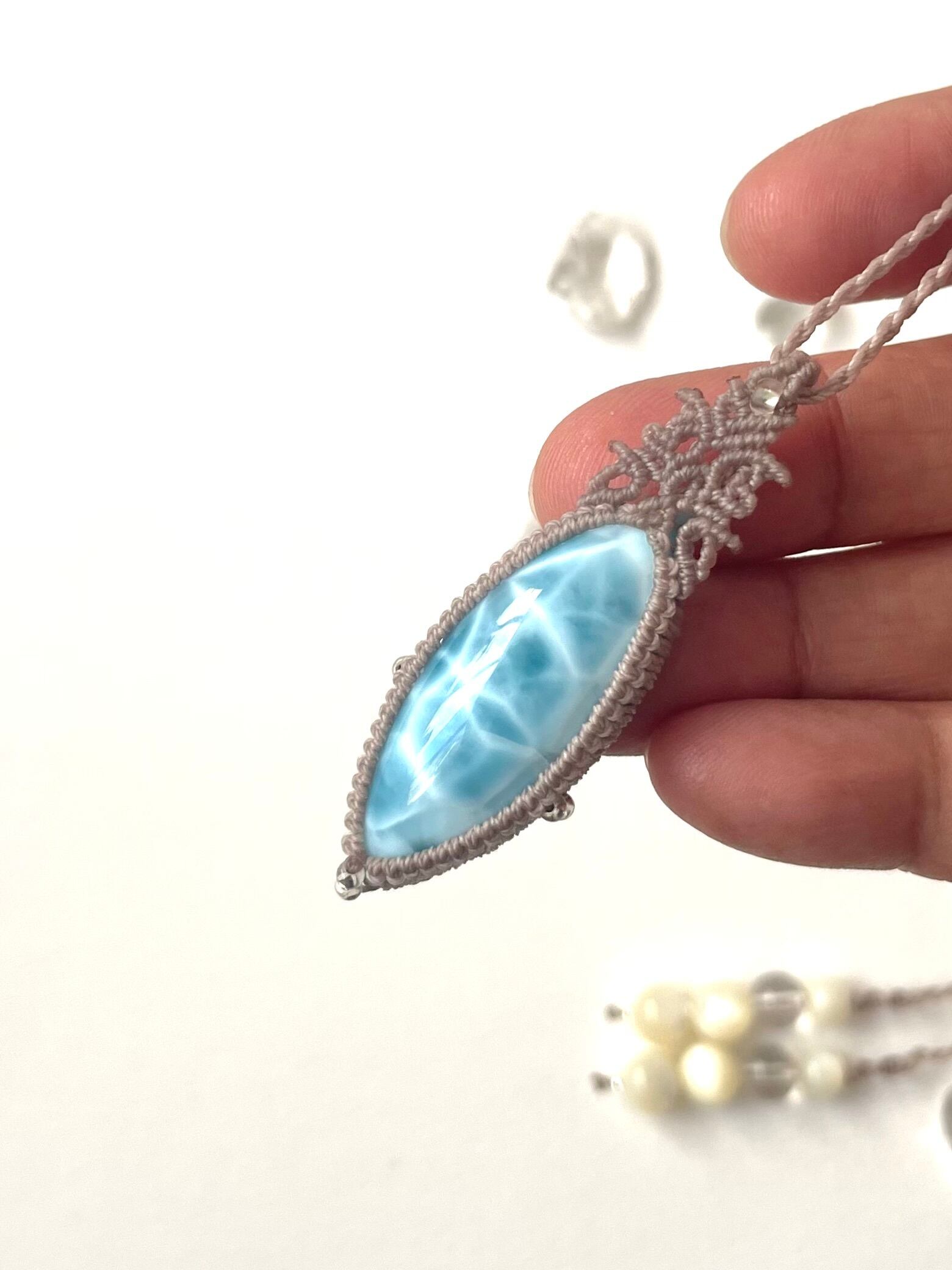 極上ラリマー天然石マクラメ編みネックレス♪