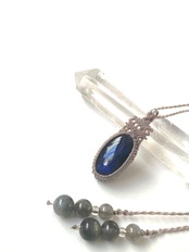 一粒ラブラドライトの天然石マクラメ編みネックレス