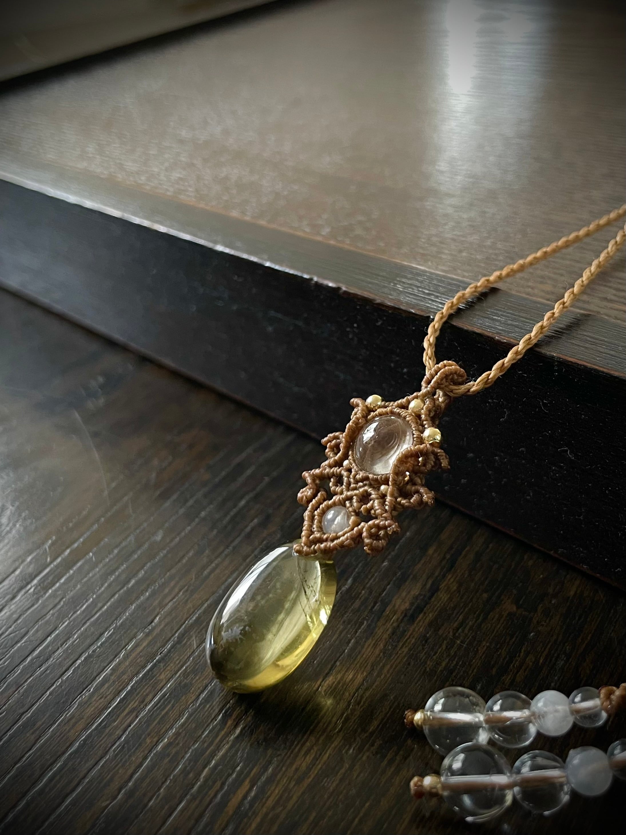 マクラメ 大人 上品 プレゼント プチギフト 天然石 マクラメネックレス マクラメペンダント マクラメアクセサリー 天然石ネックレス 天然石ペンダント 天然石アクセサリー お守り お守りジュエリー レモンクォーツ レインボームーンストーン