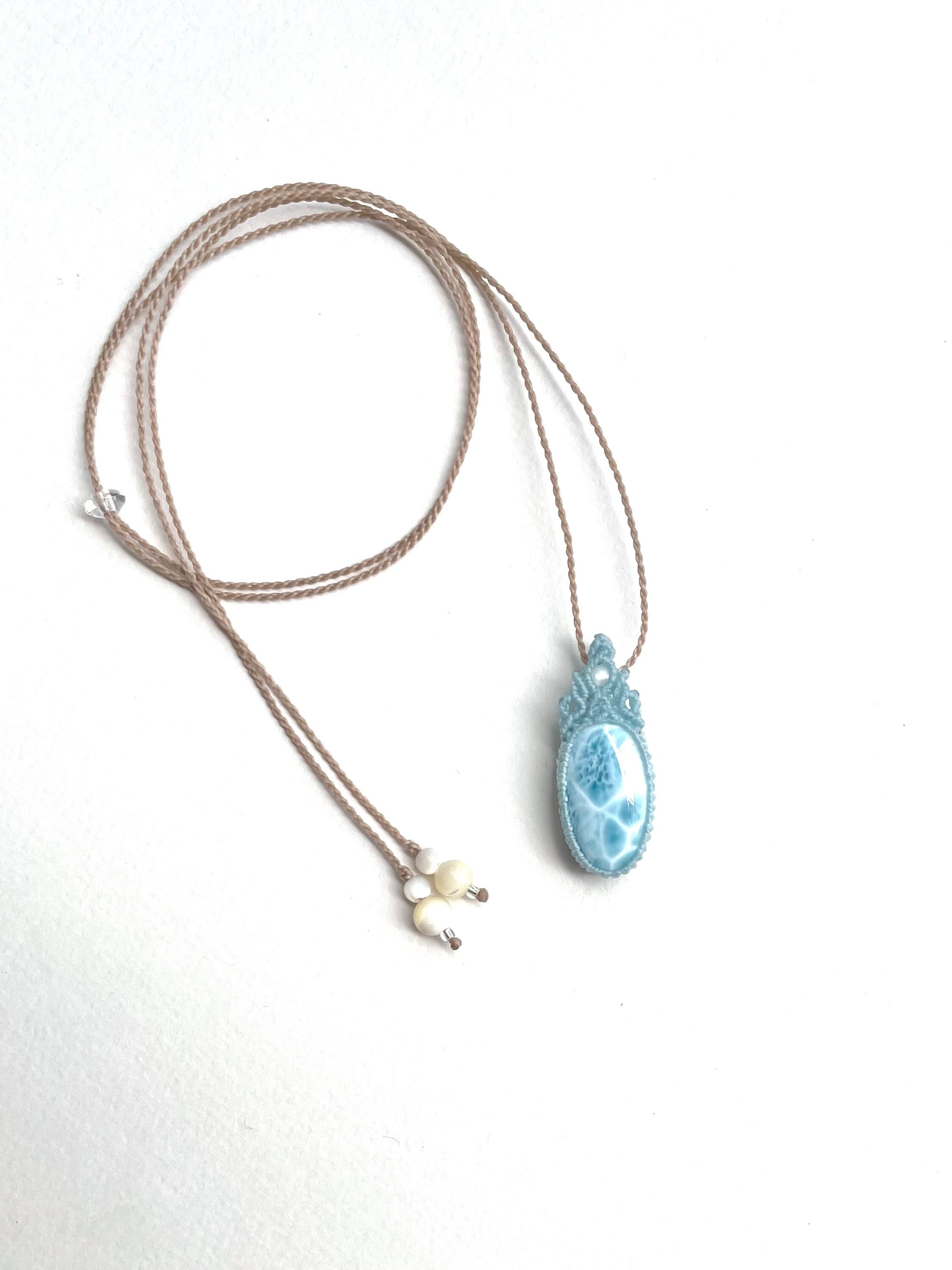 極上ラリマー天然石マクラメ編みネックレス♪
