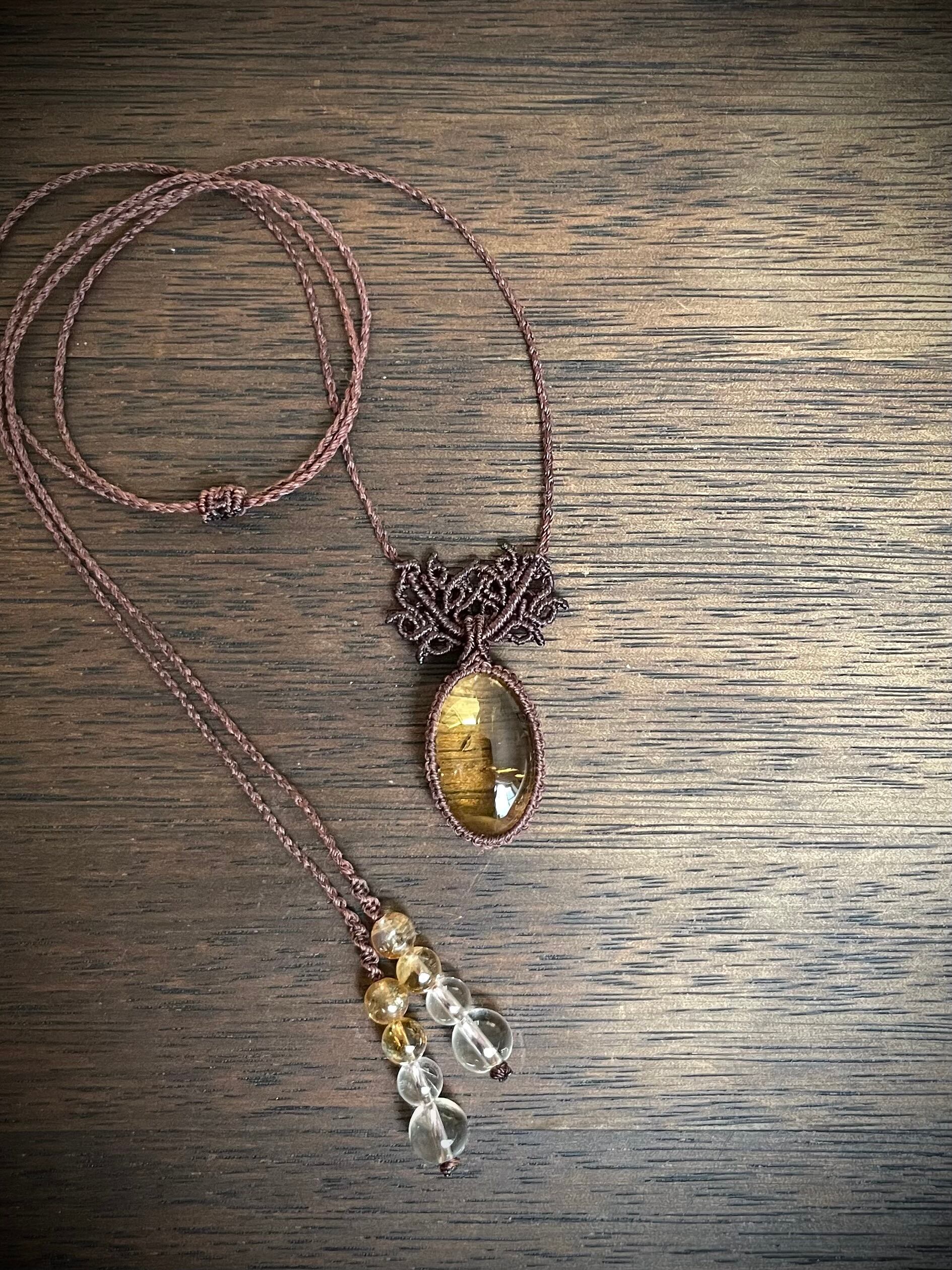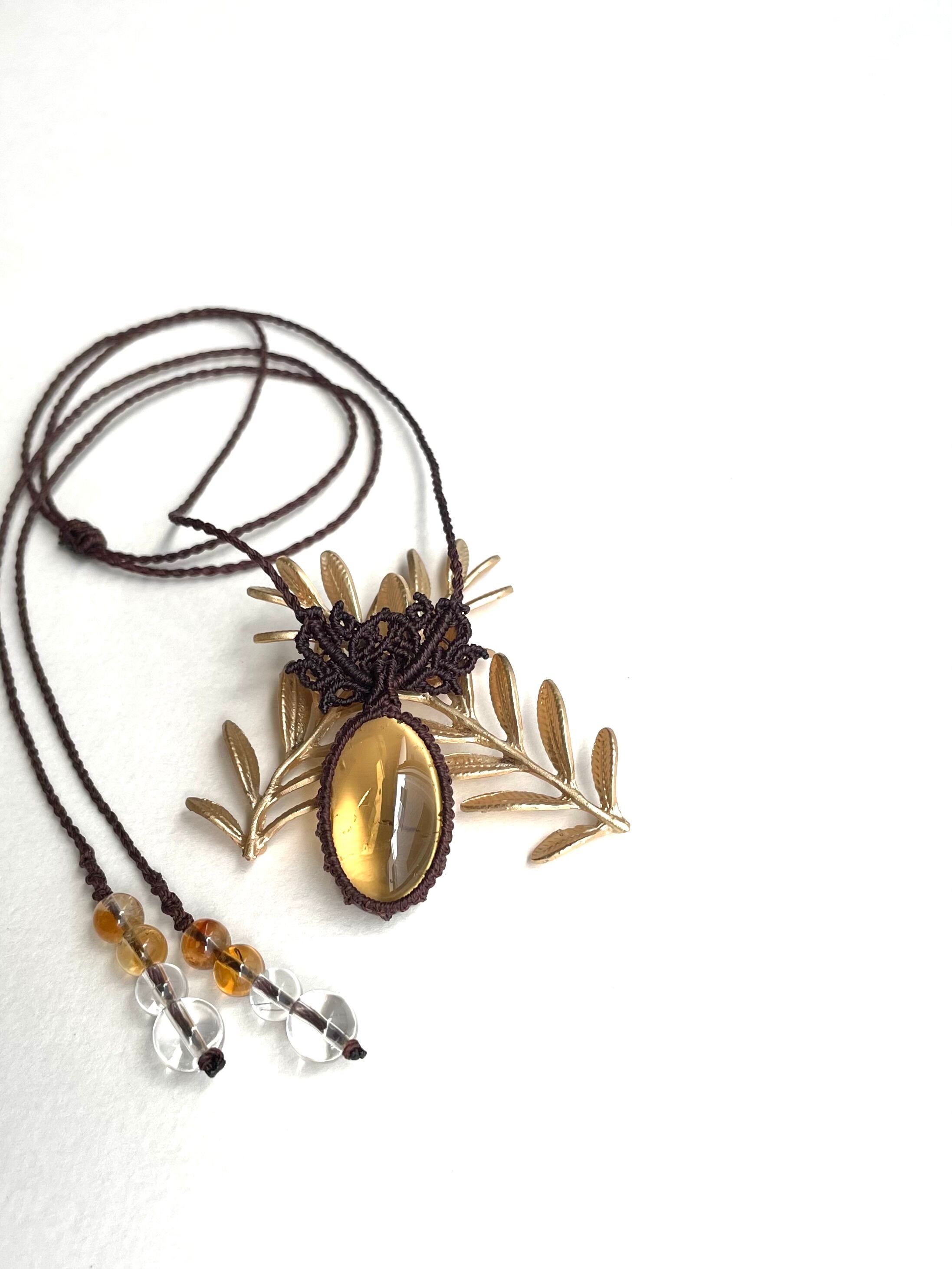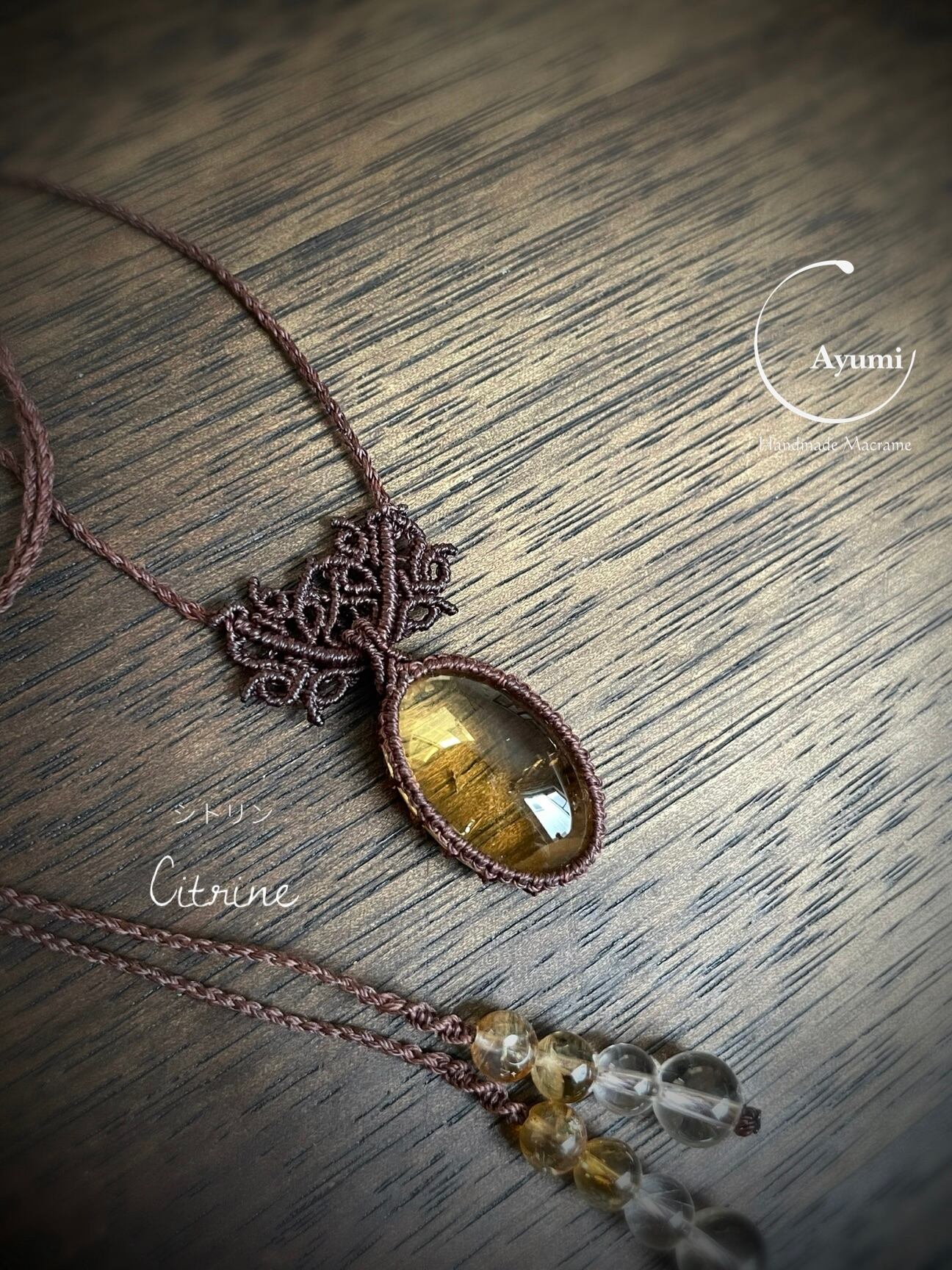 マクラメ 大人 上品 プレゼント プチギフト 天然石 マクラメネックレス マクラメペンダント マクラメアクセサリー 天然石ネックレス 天然石ペンダント 天然石アクセサリー お守りジュエリー シトリン