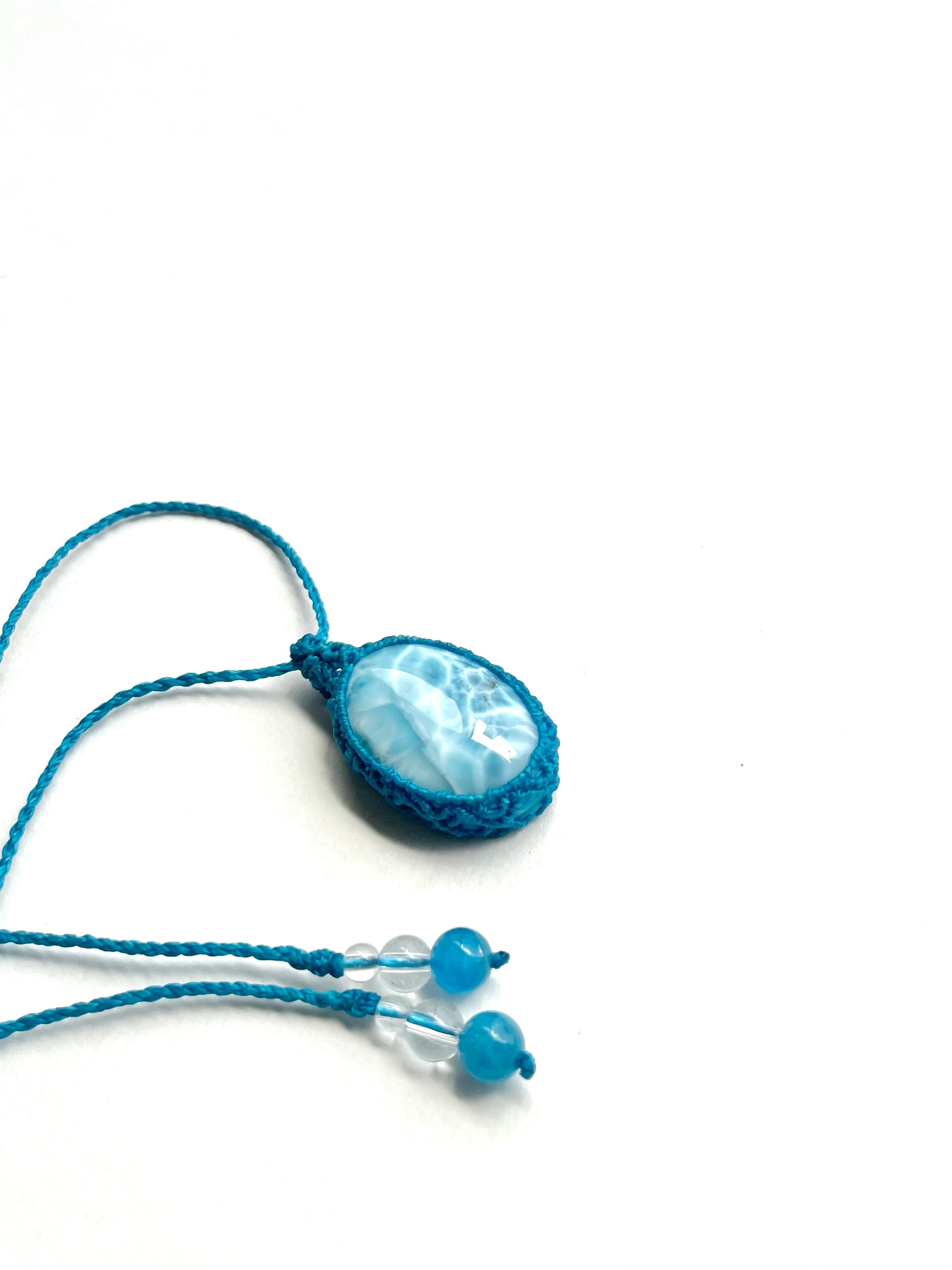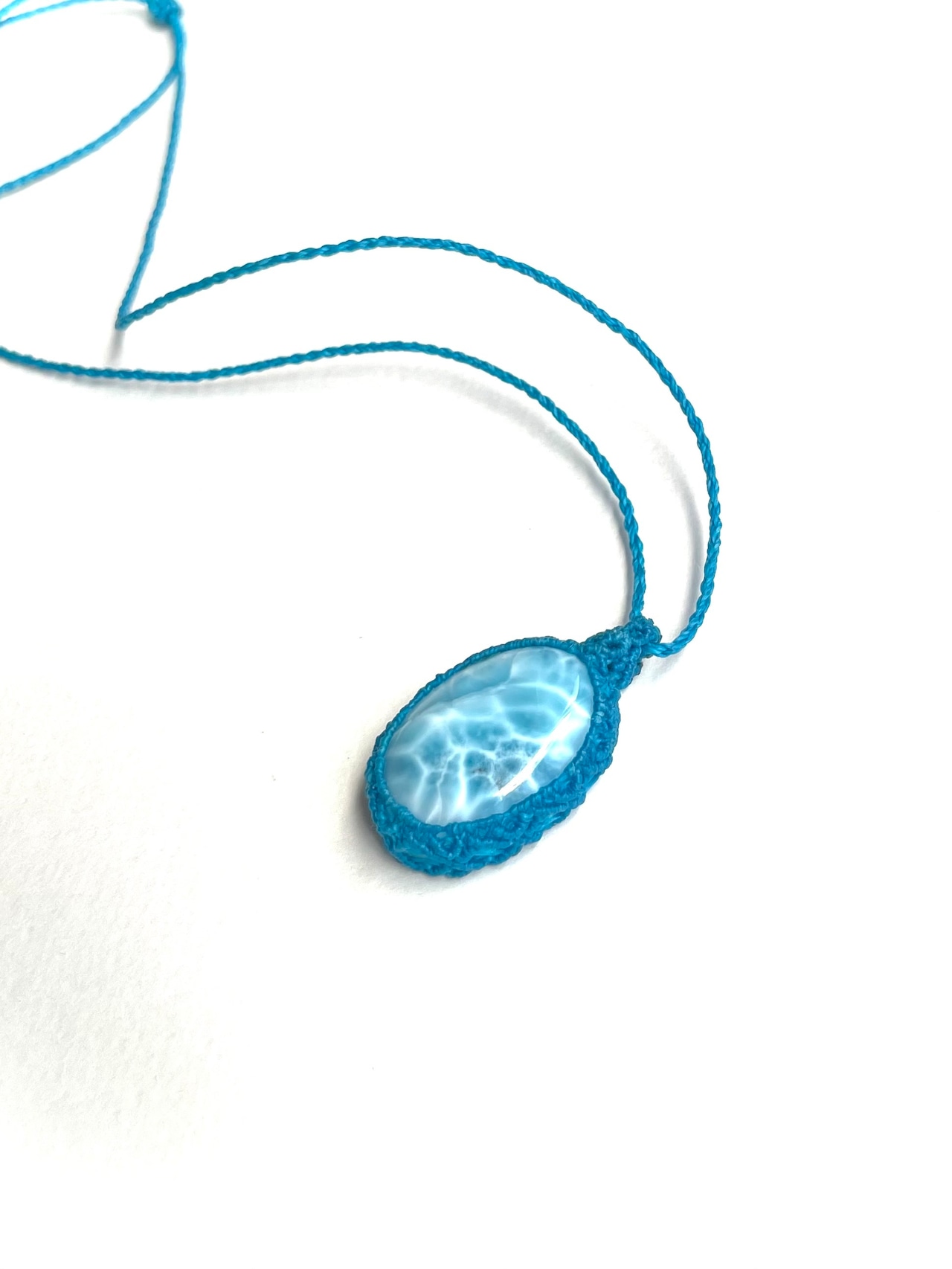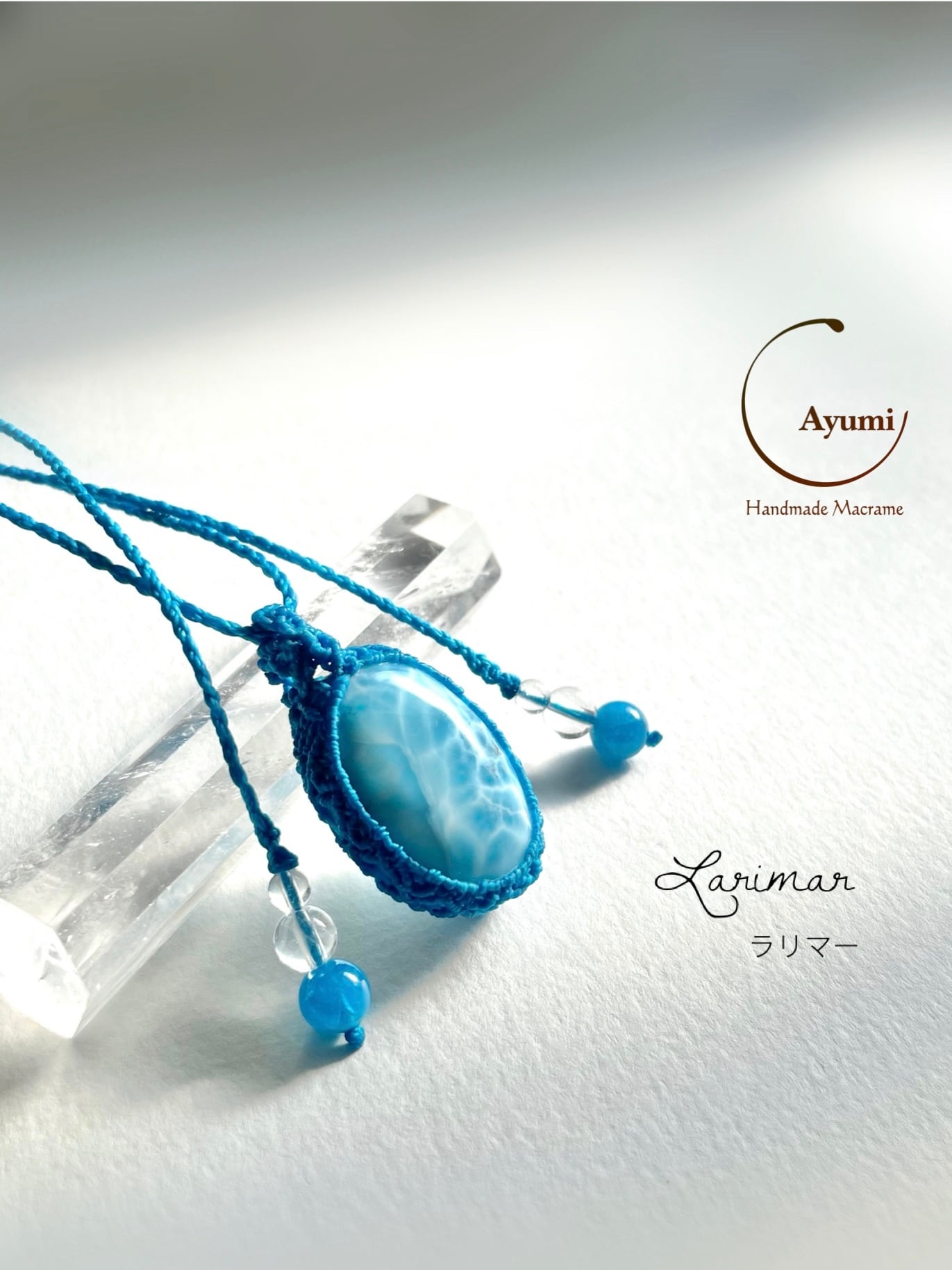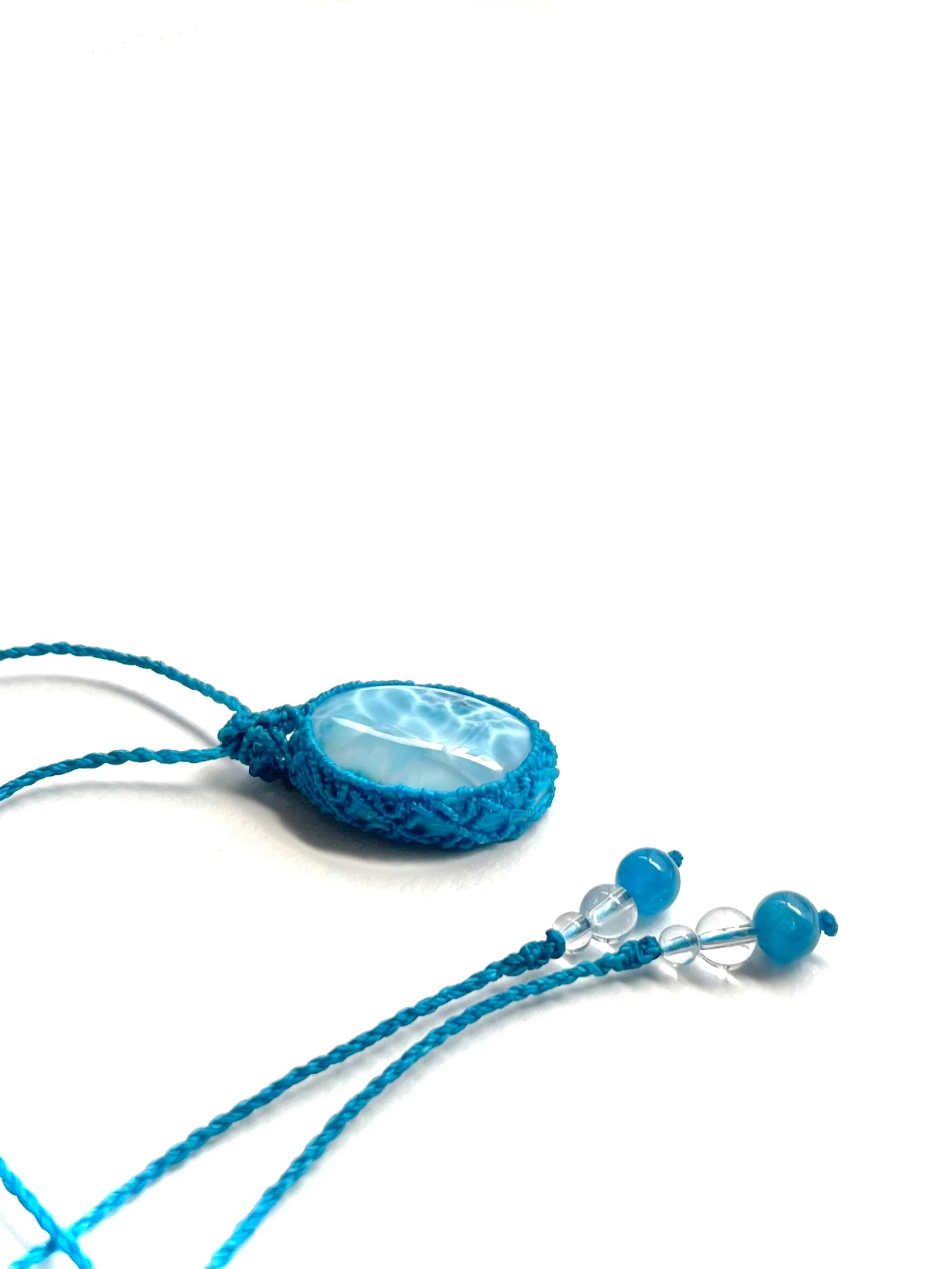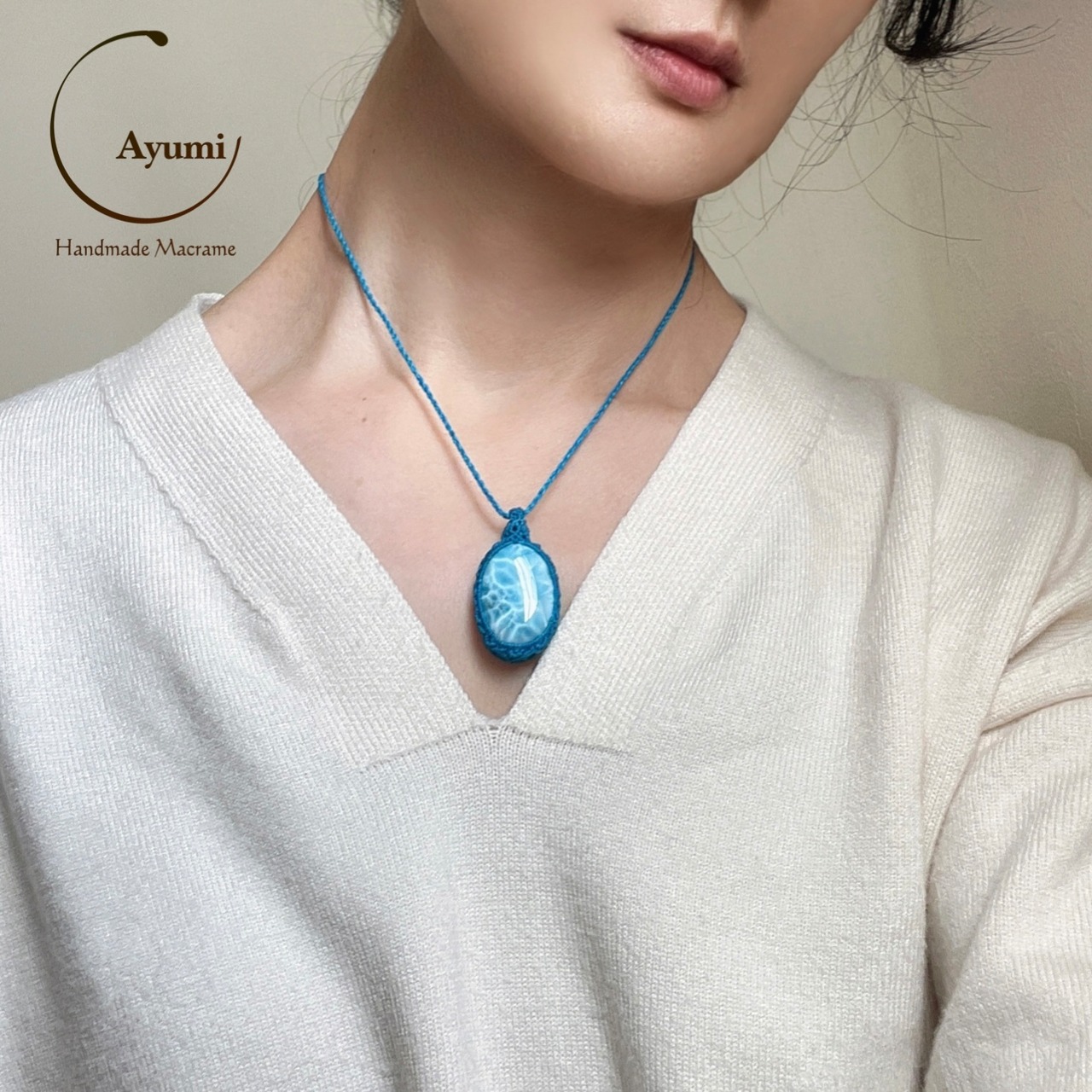 極上ブルー!大粒ラリマーの飾り包み天然石マクラメ編みネックレス♪
