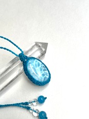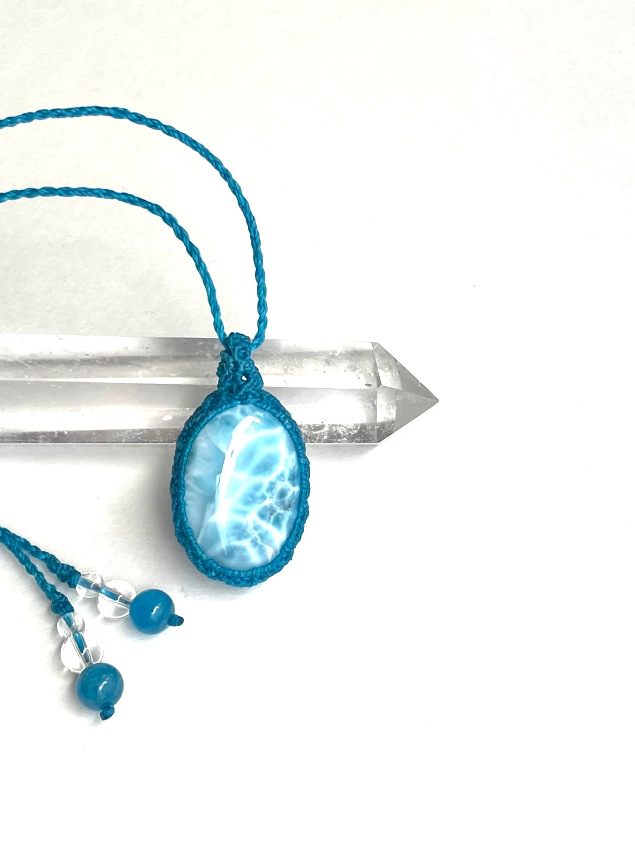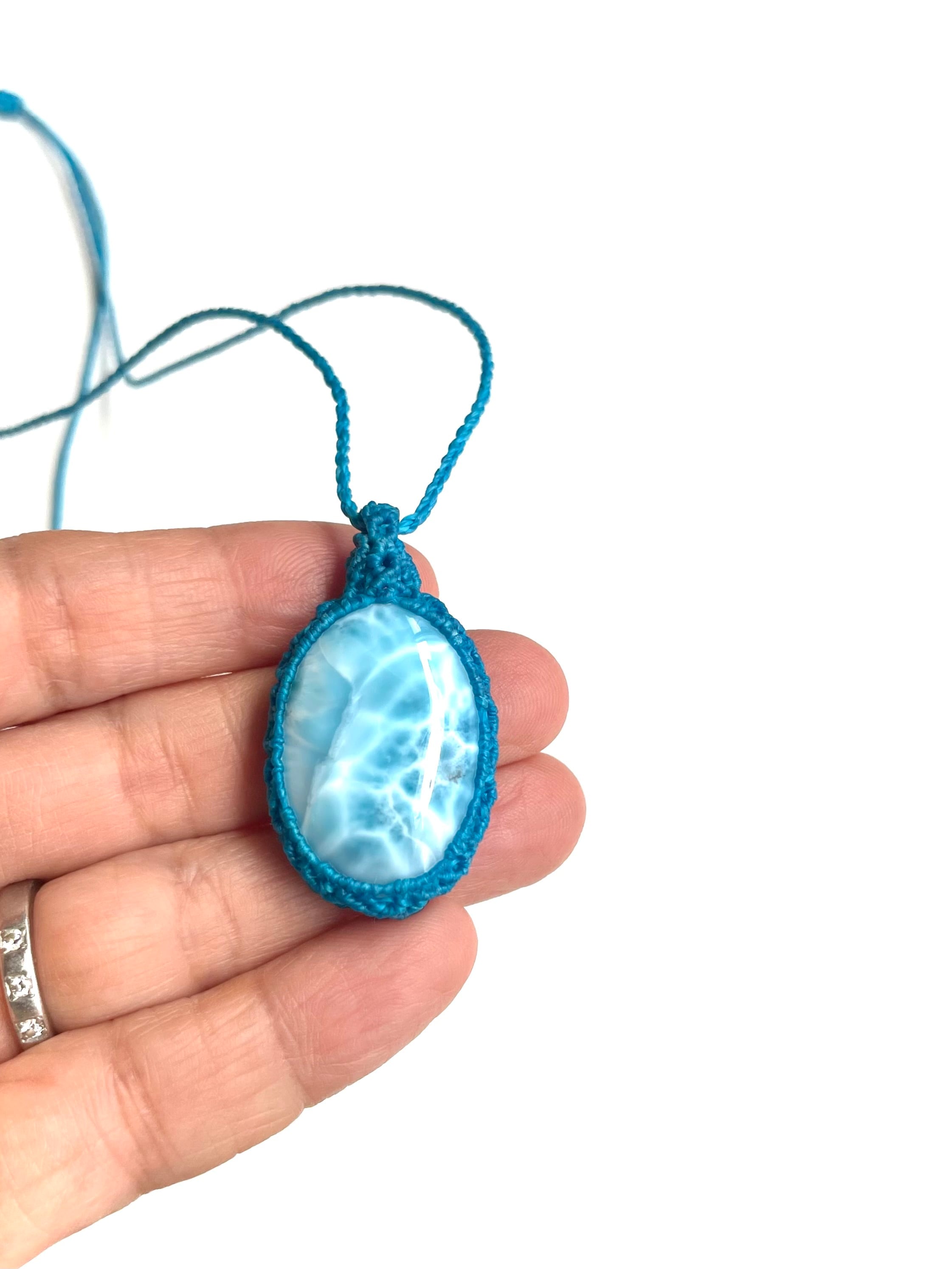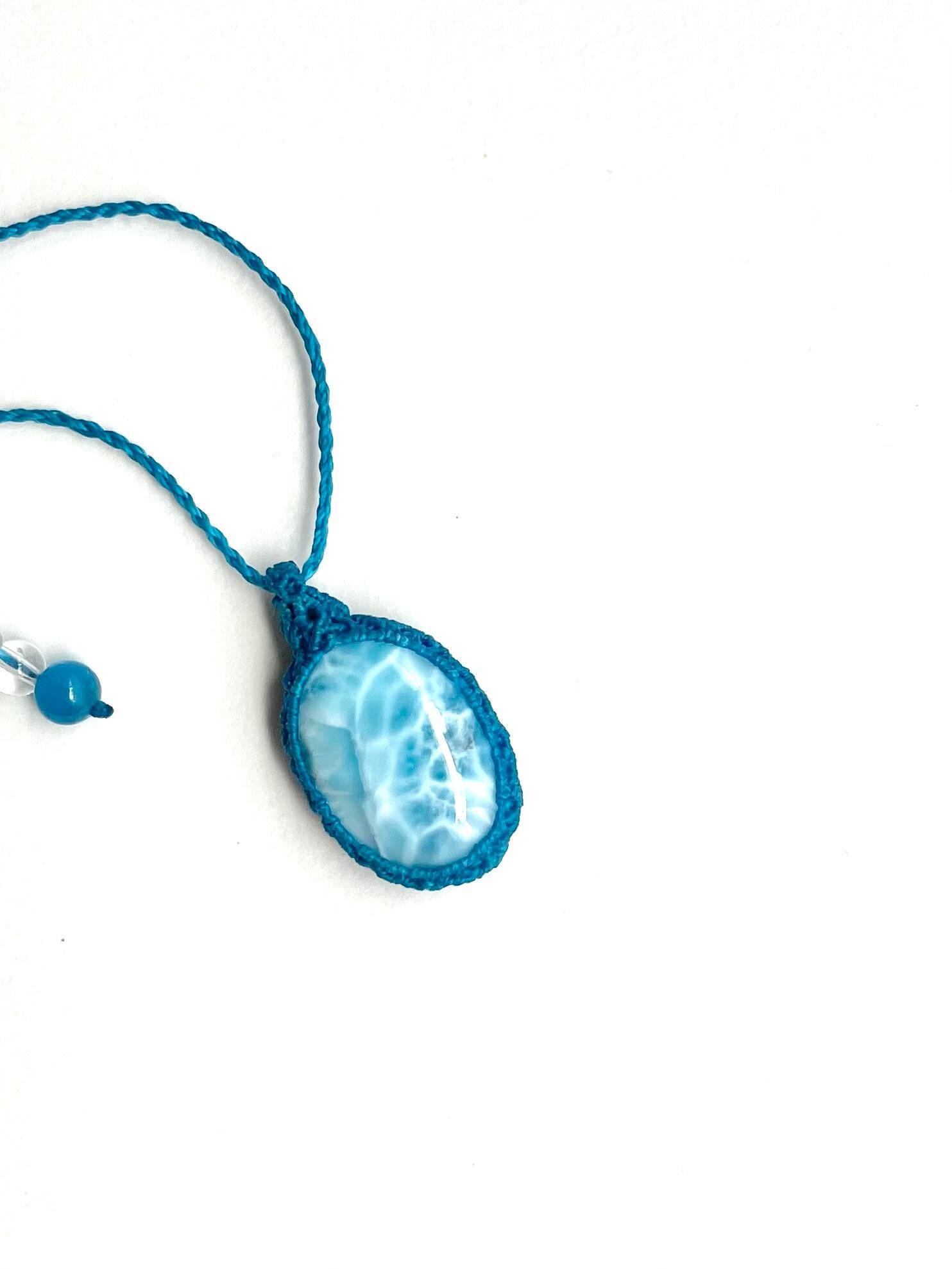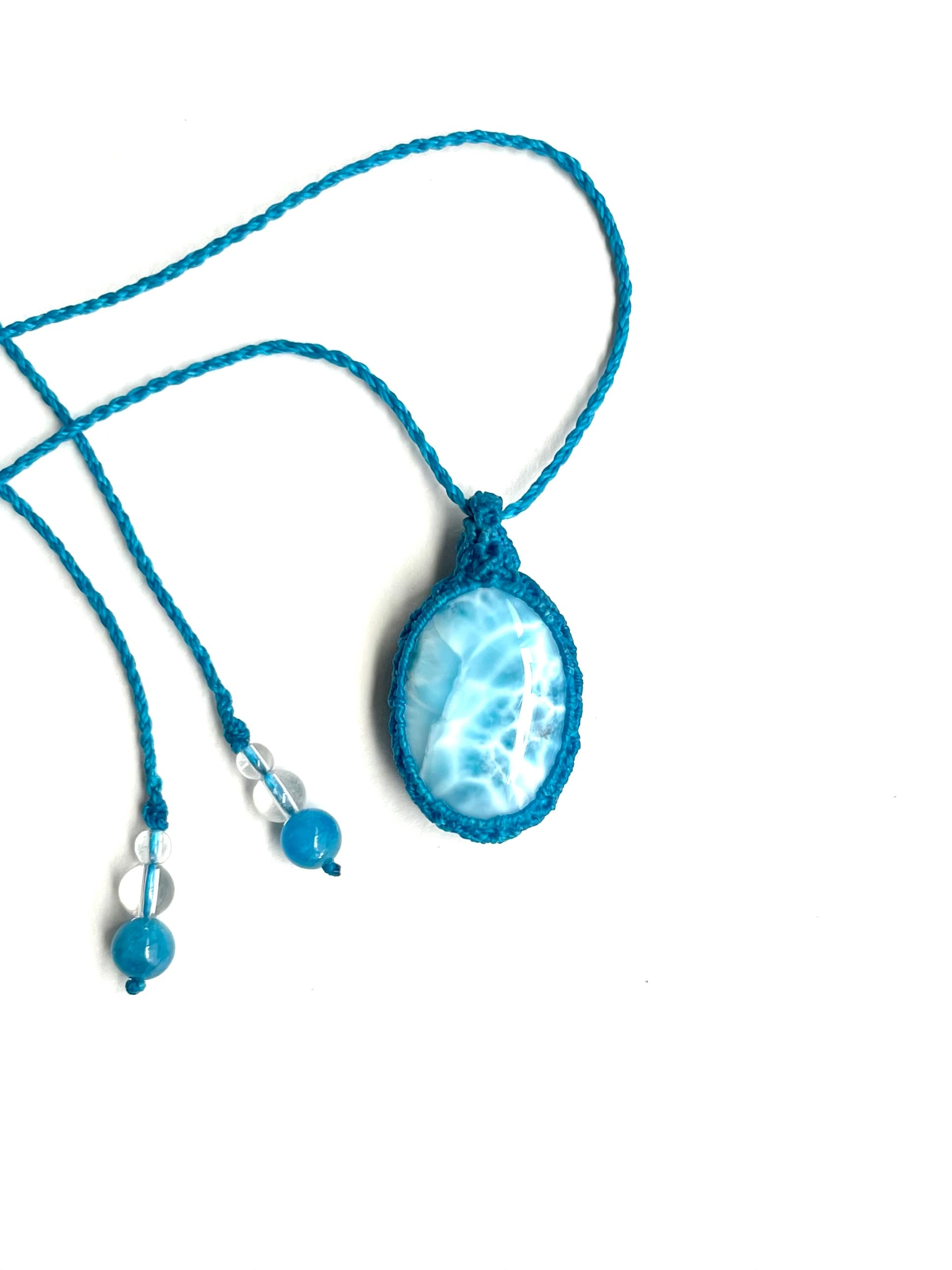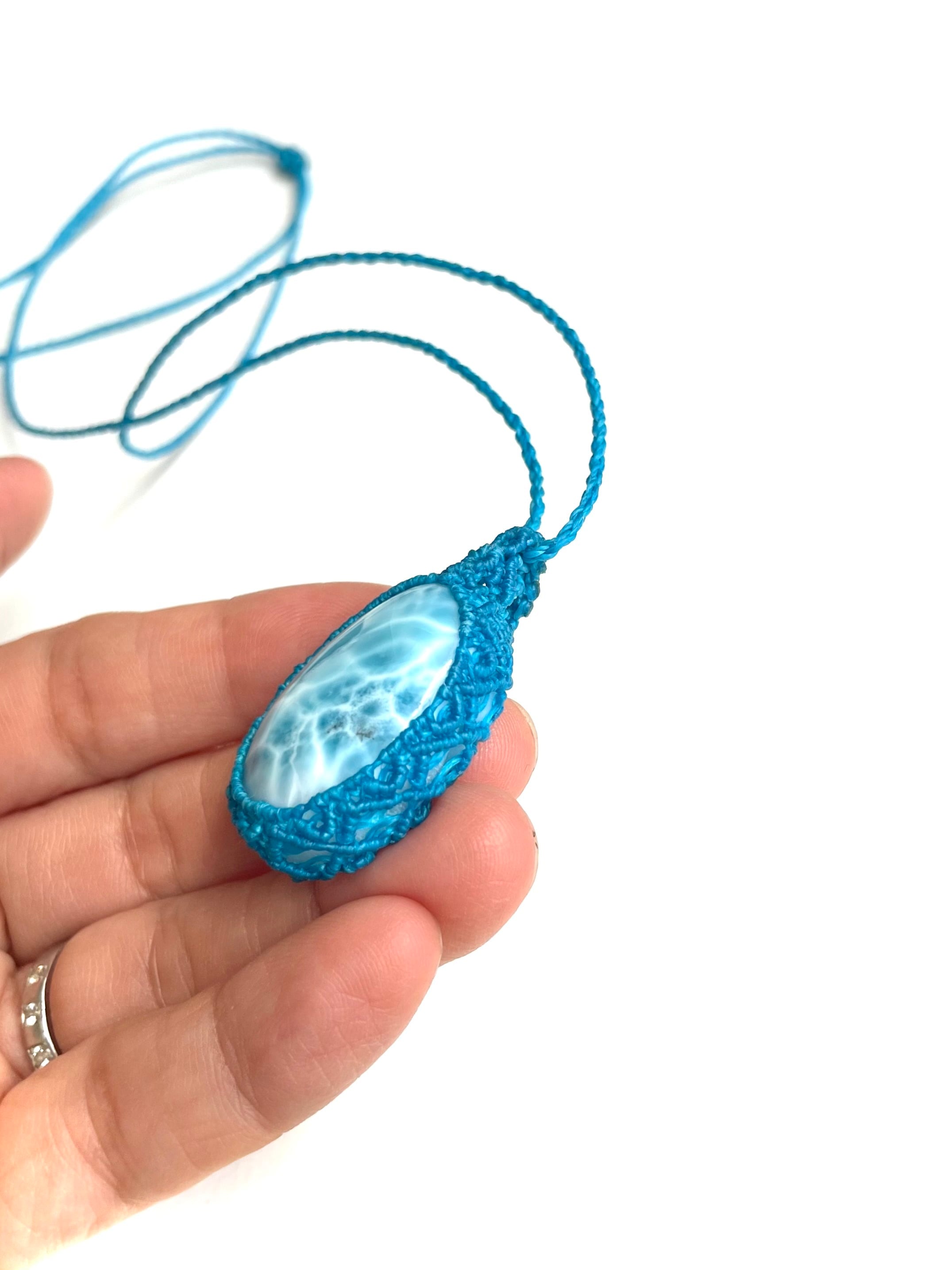 極上ブルー!大粒ラリマーの飾り包み天然石マクラメ編みネックレス♪