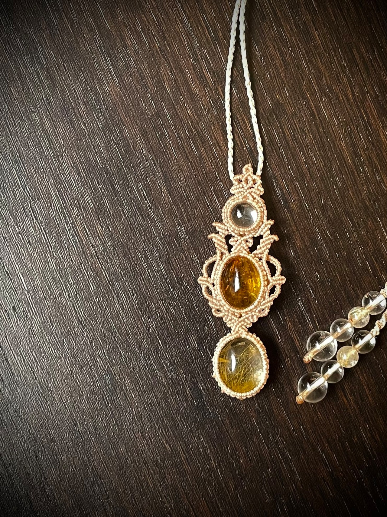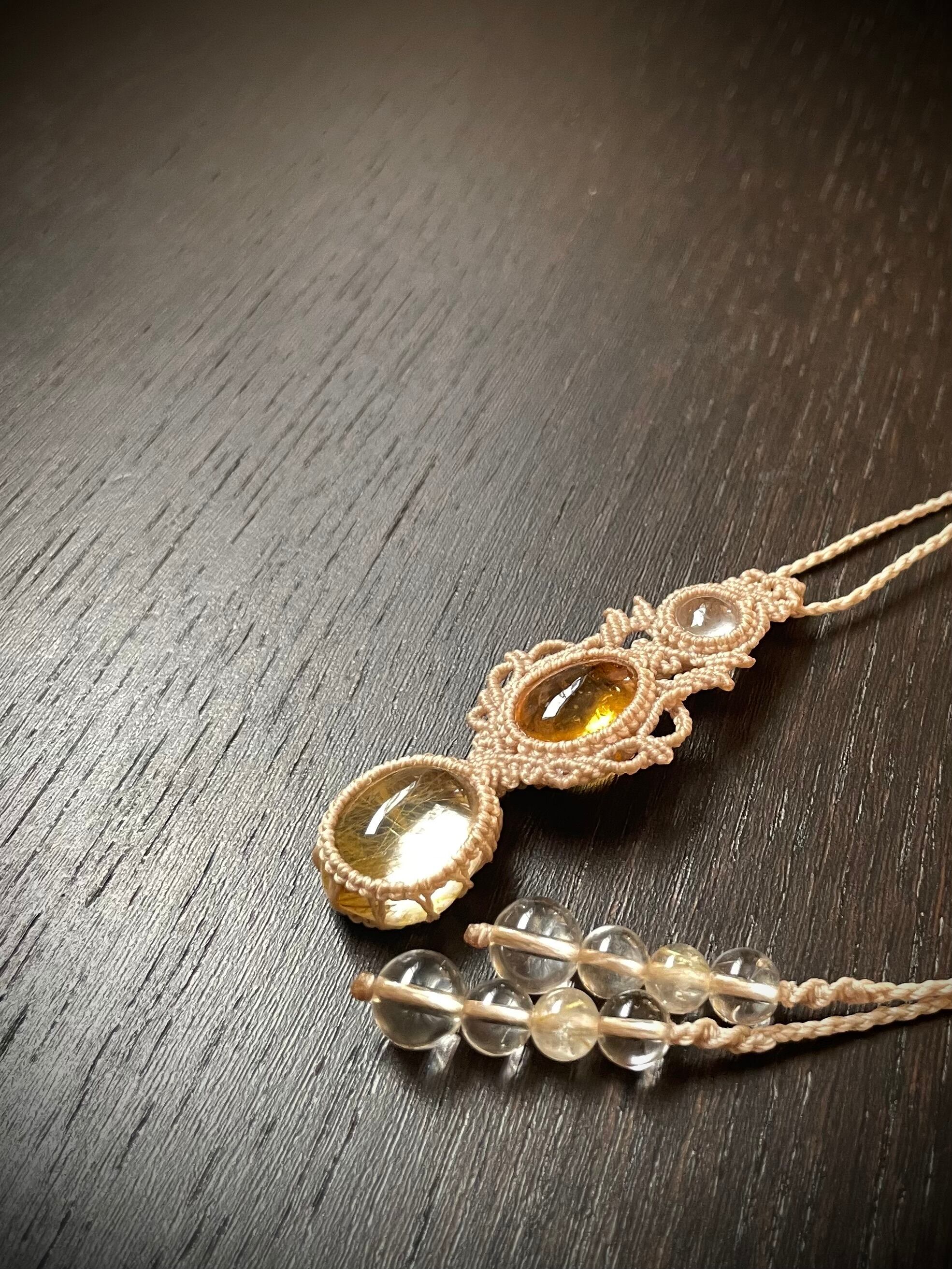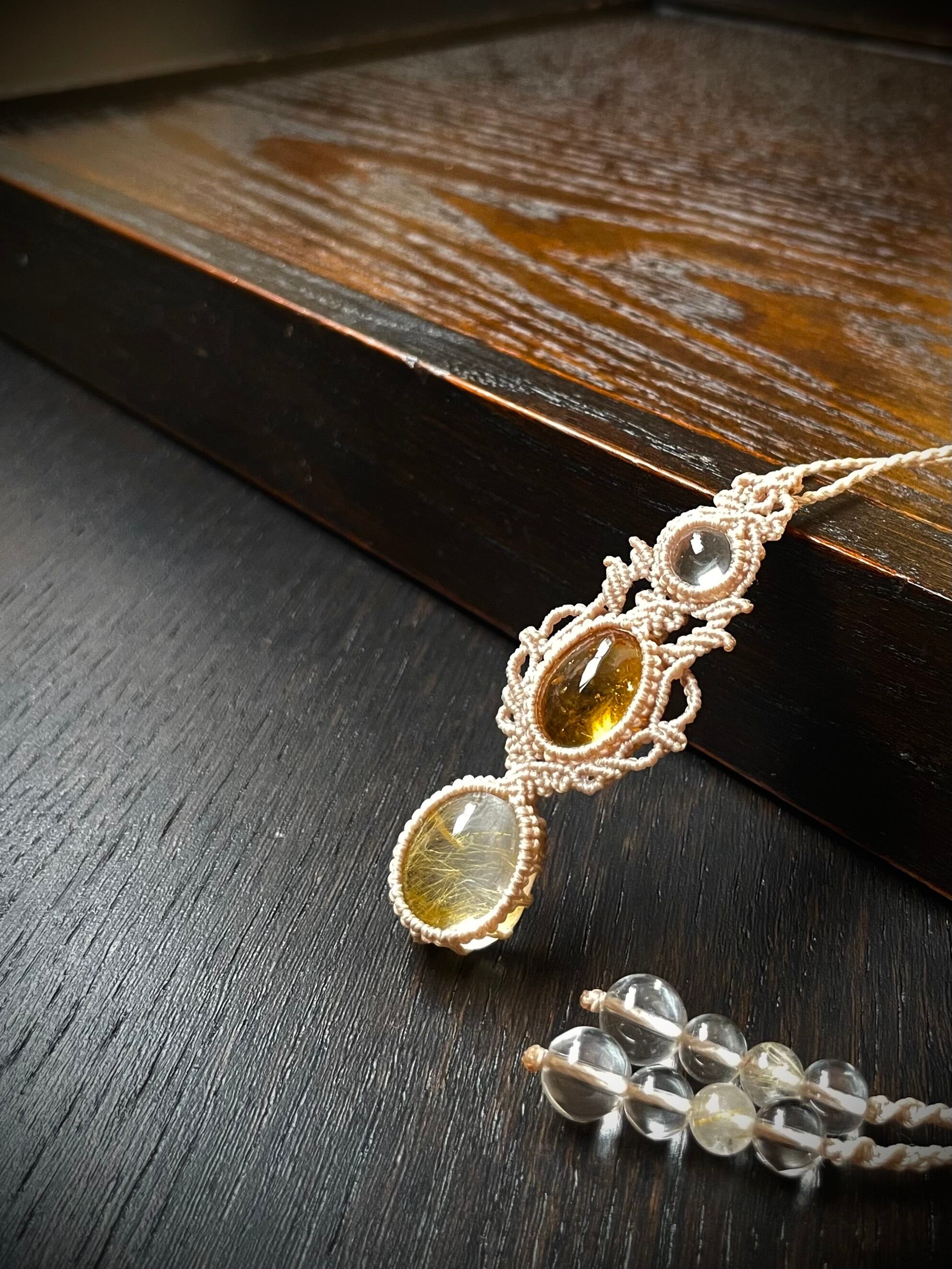 ルチルクォーツとシトリンの仲良し♪天然石マクラメ編みネックレス♪♪