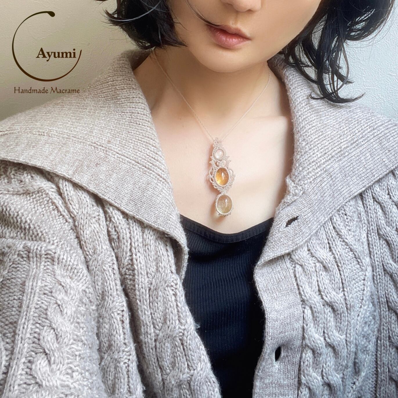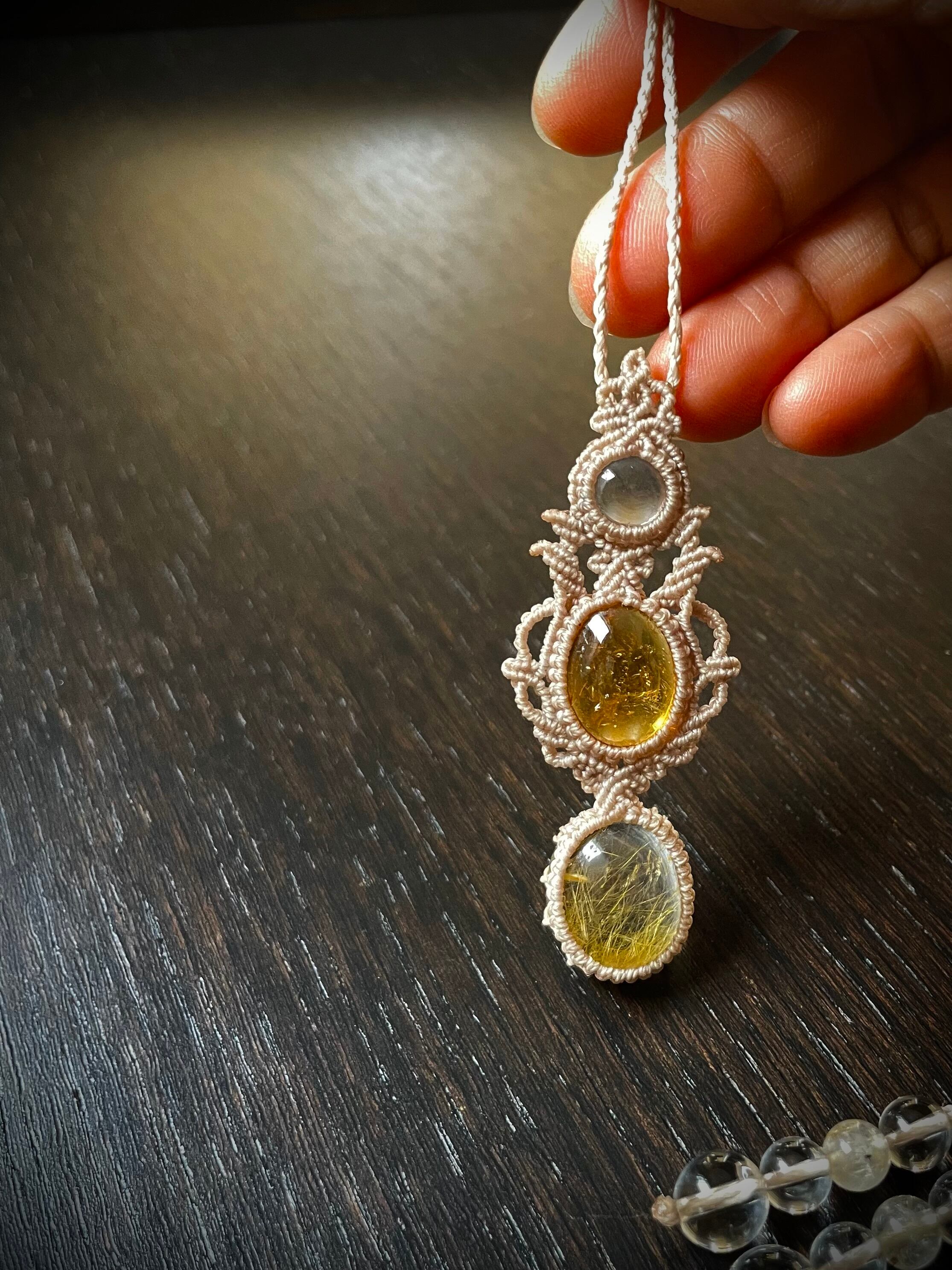 マクラメ 大人 上品 プレゼント プチギフト 天然石 マクラメネックレス マクラメペンダント マクラメアクセサリー 天然石ネックレス 天然石ペンダント 天然石アクセサリー お守りジュエリー シトリン ルチルクォーツ