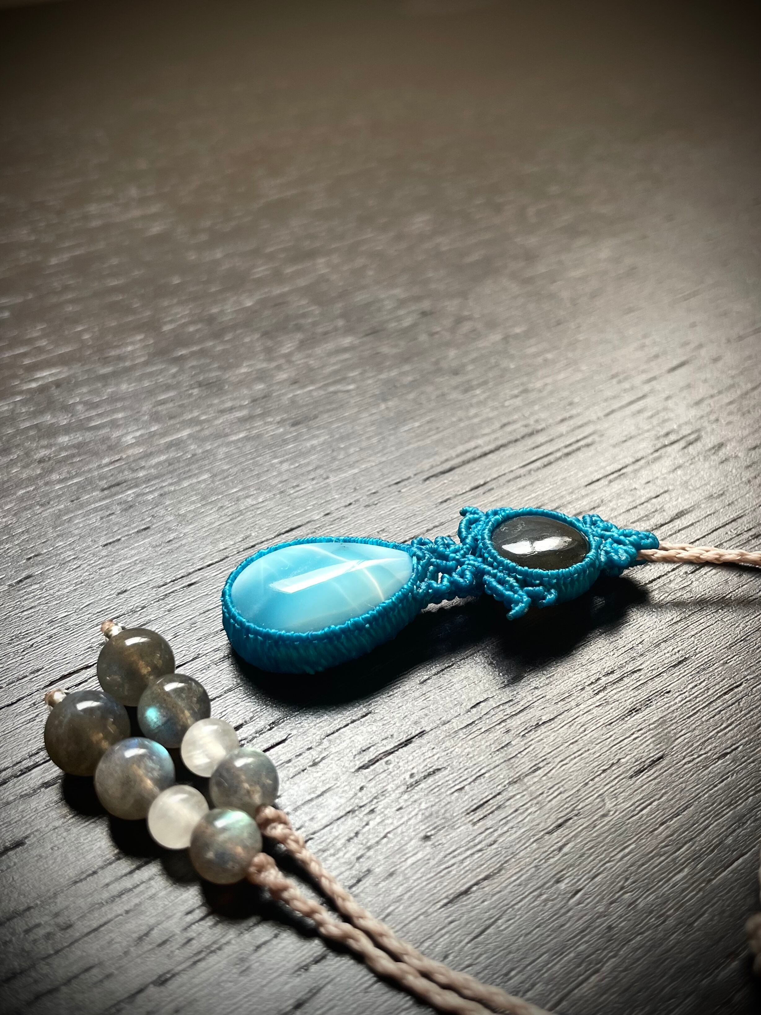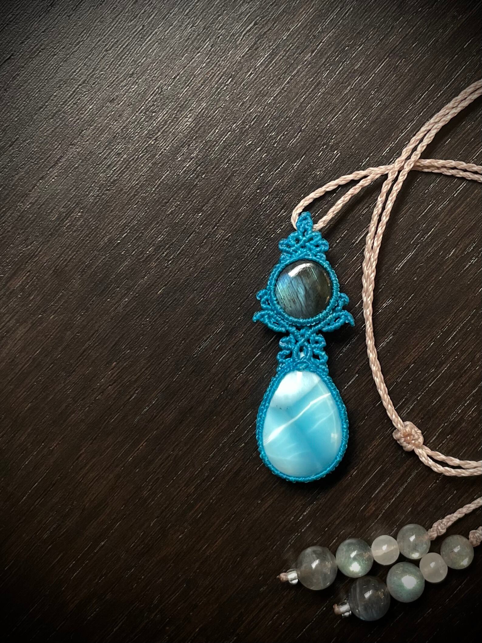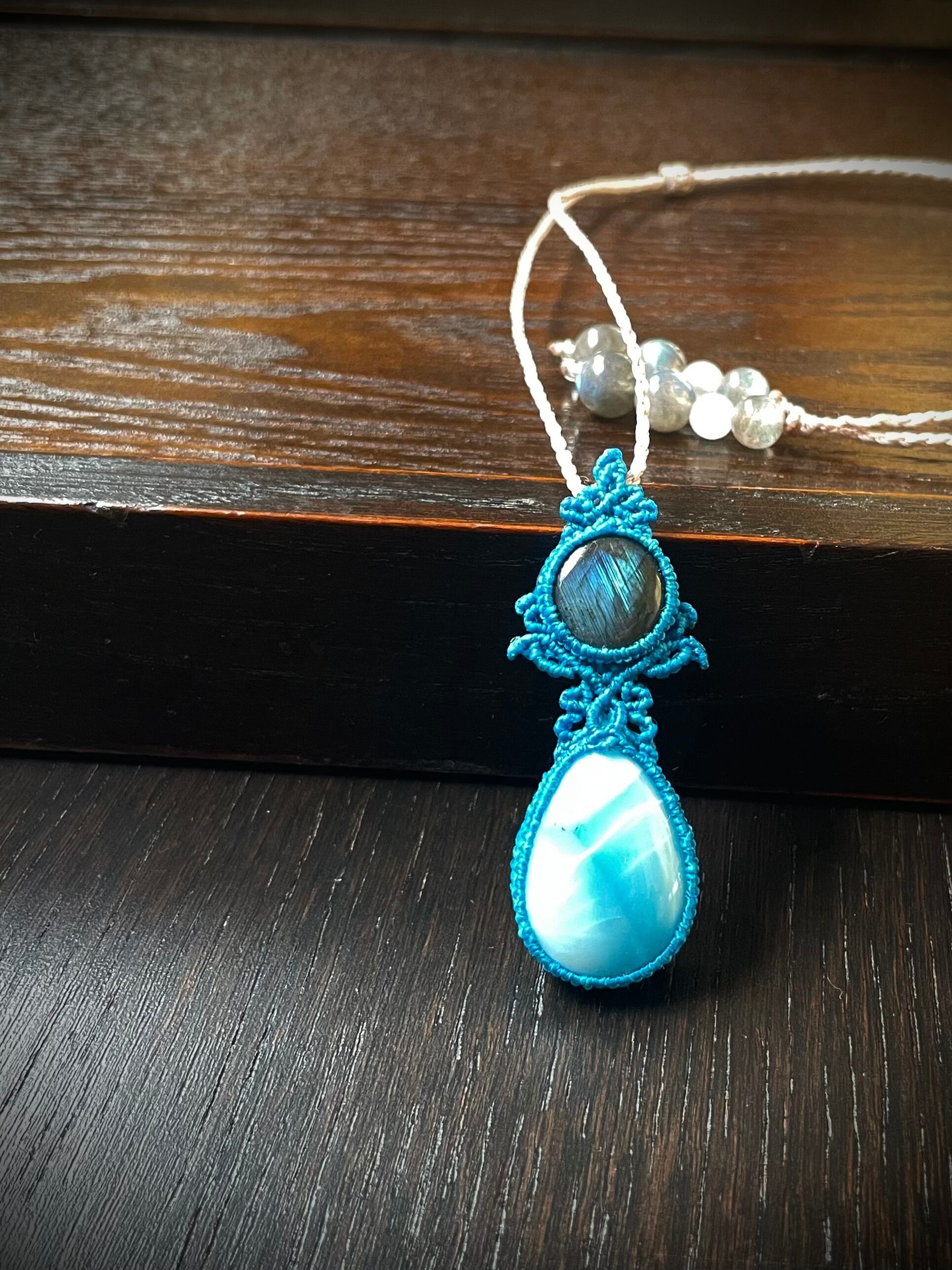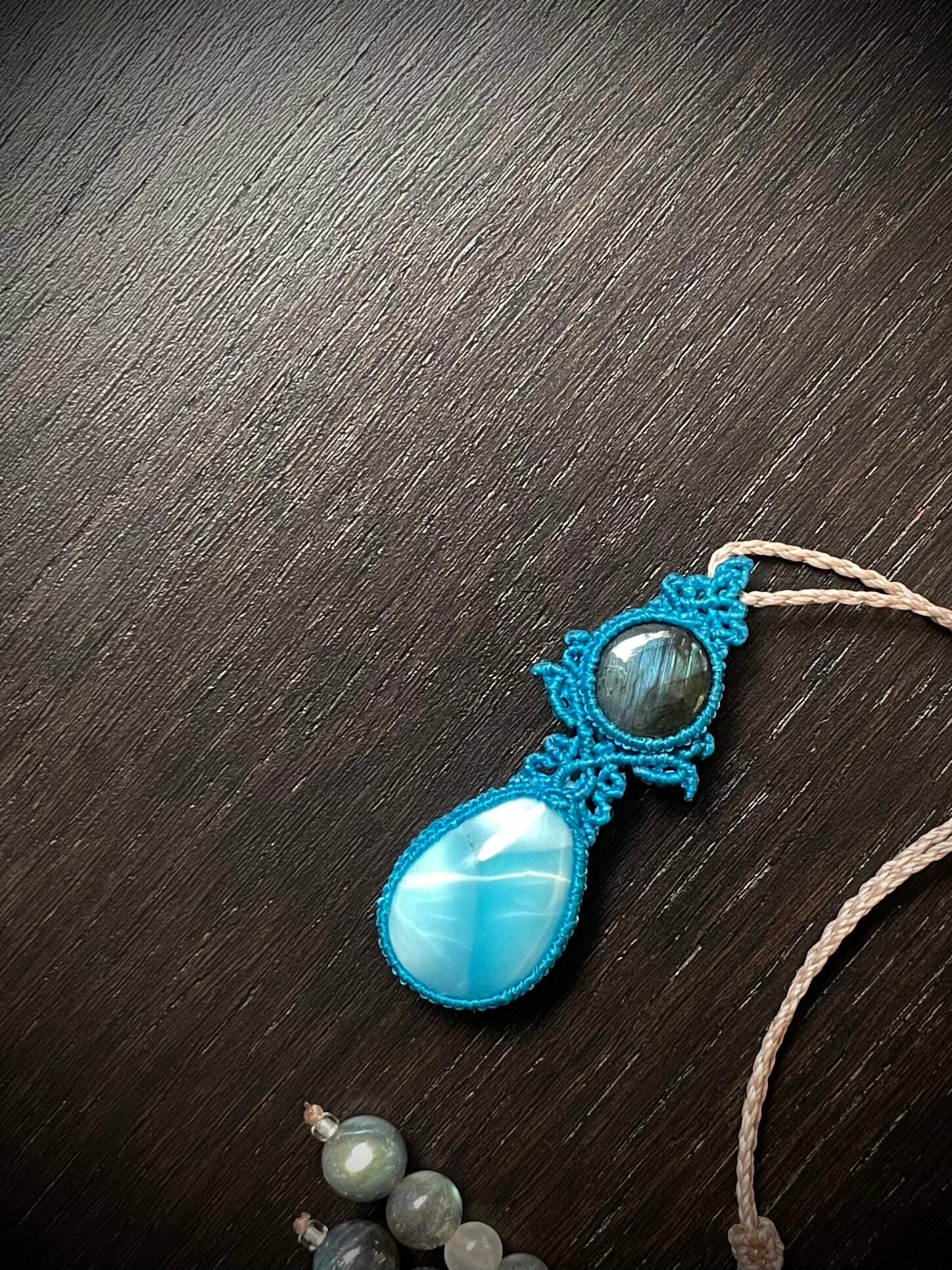 ラブラドライトとラリマーの天然石マクラメ編みネックレス♪