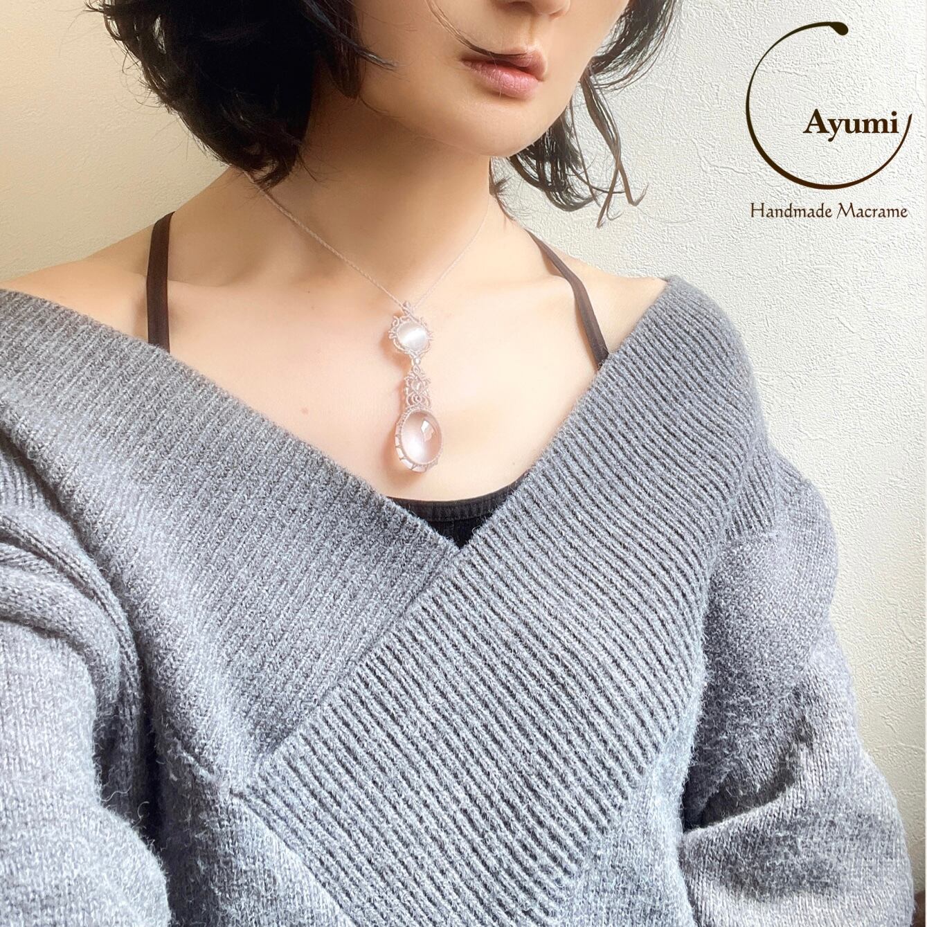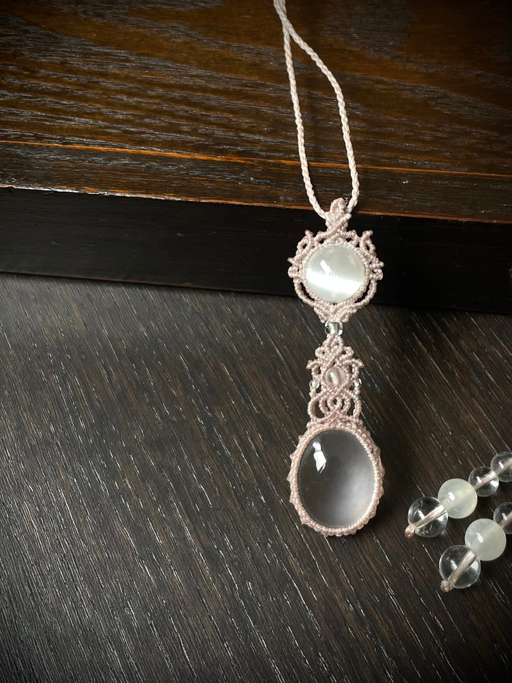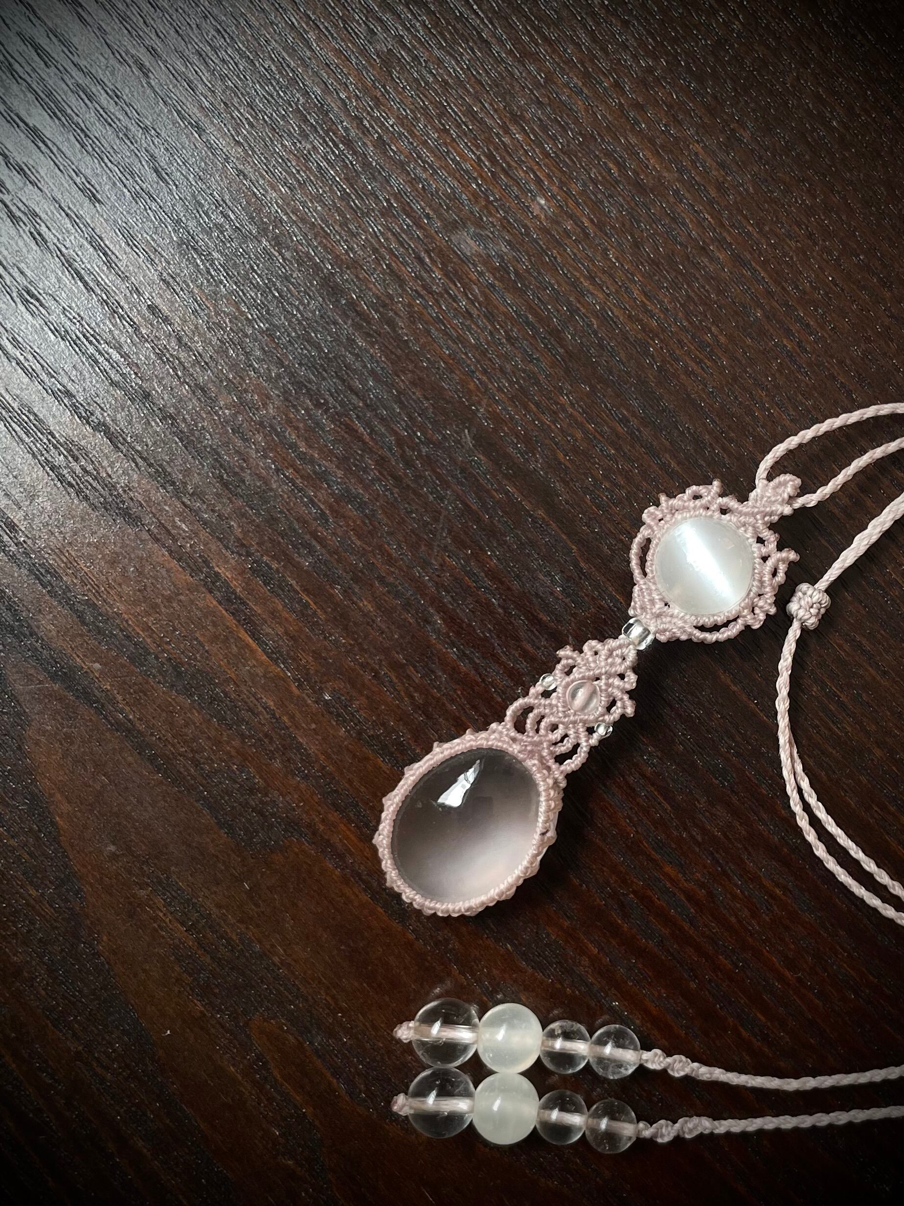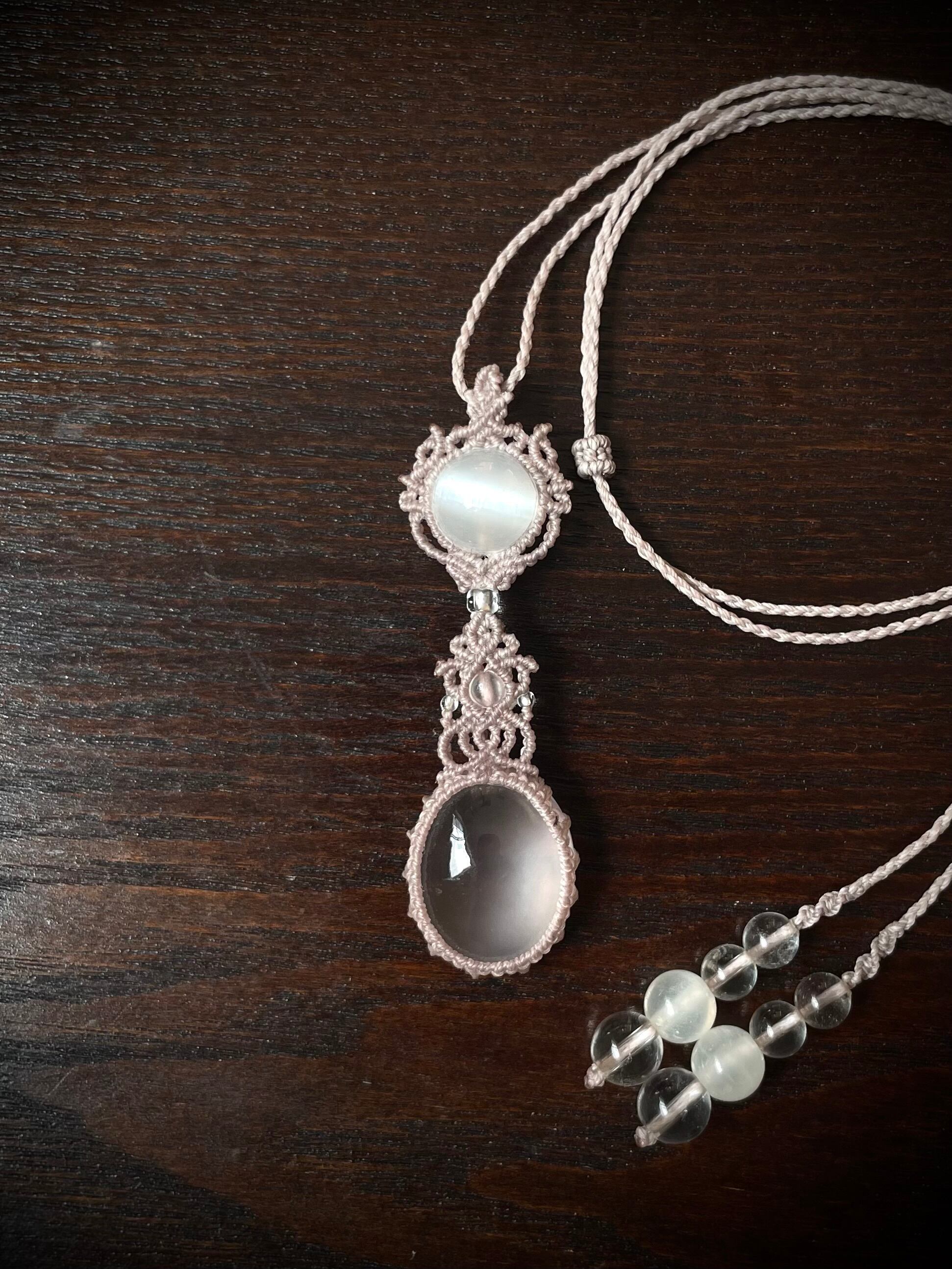 マクラメ 大人 上品 プレゼント プチギフト 天然石 マクラメネックレス マクラメペンダント マクラメアクセサリー 天然石ネックレス 天然石ペンダント 天然石アクセサリー お守り お守りジュエリー ローズクォーツ セレナイト
