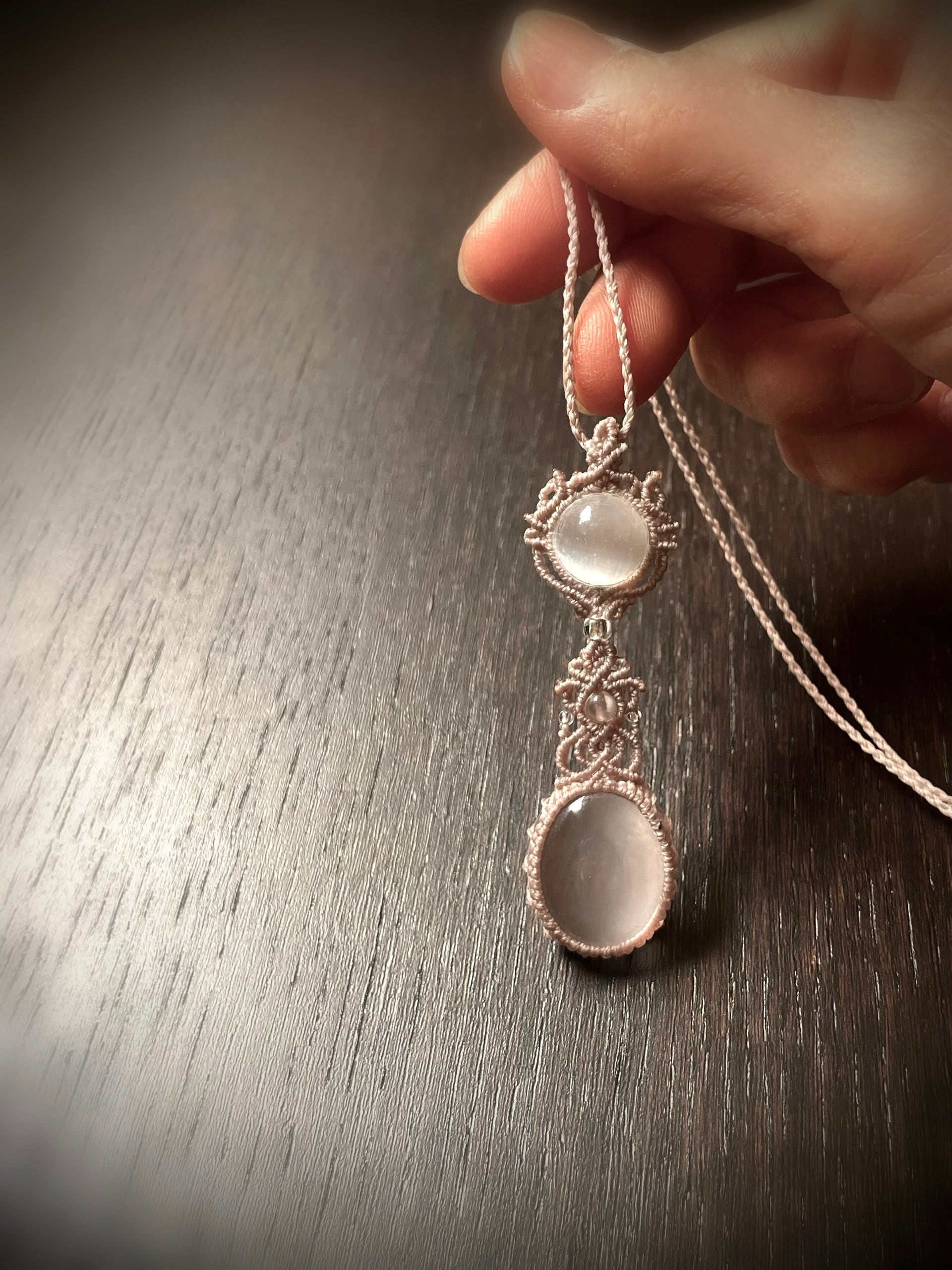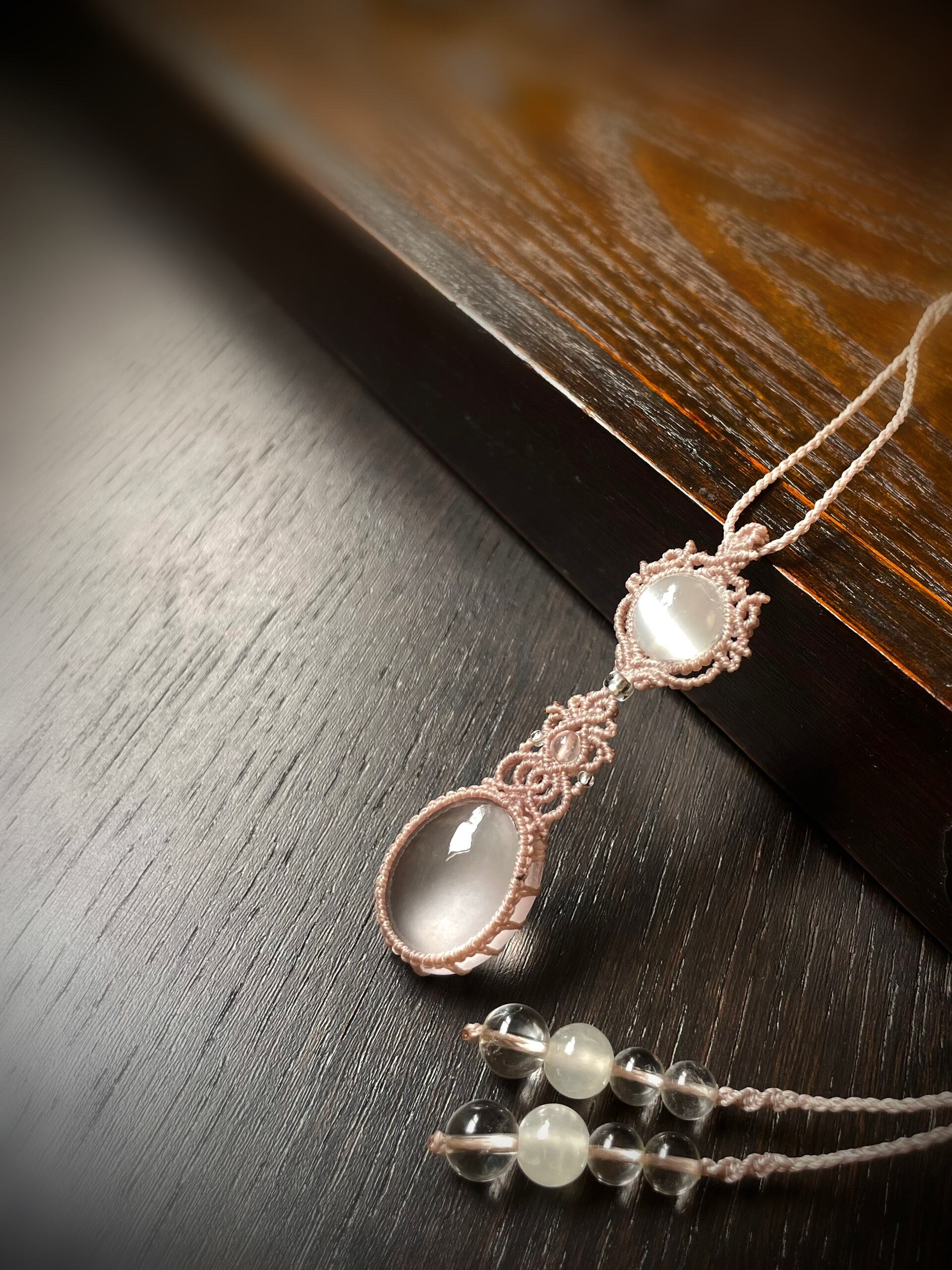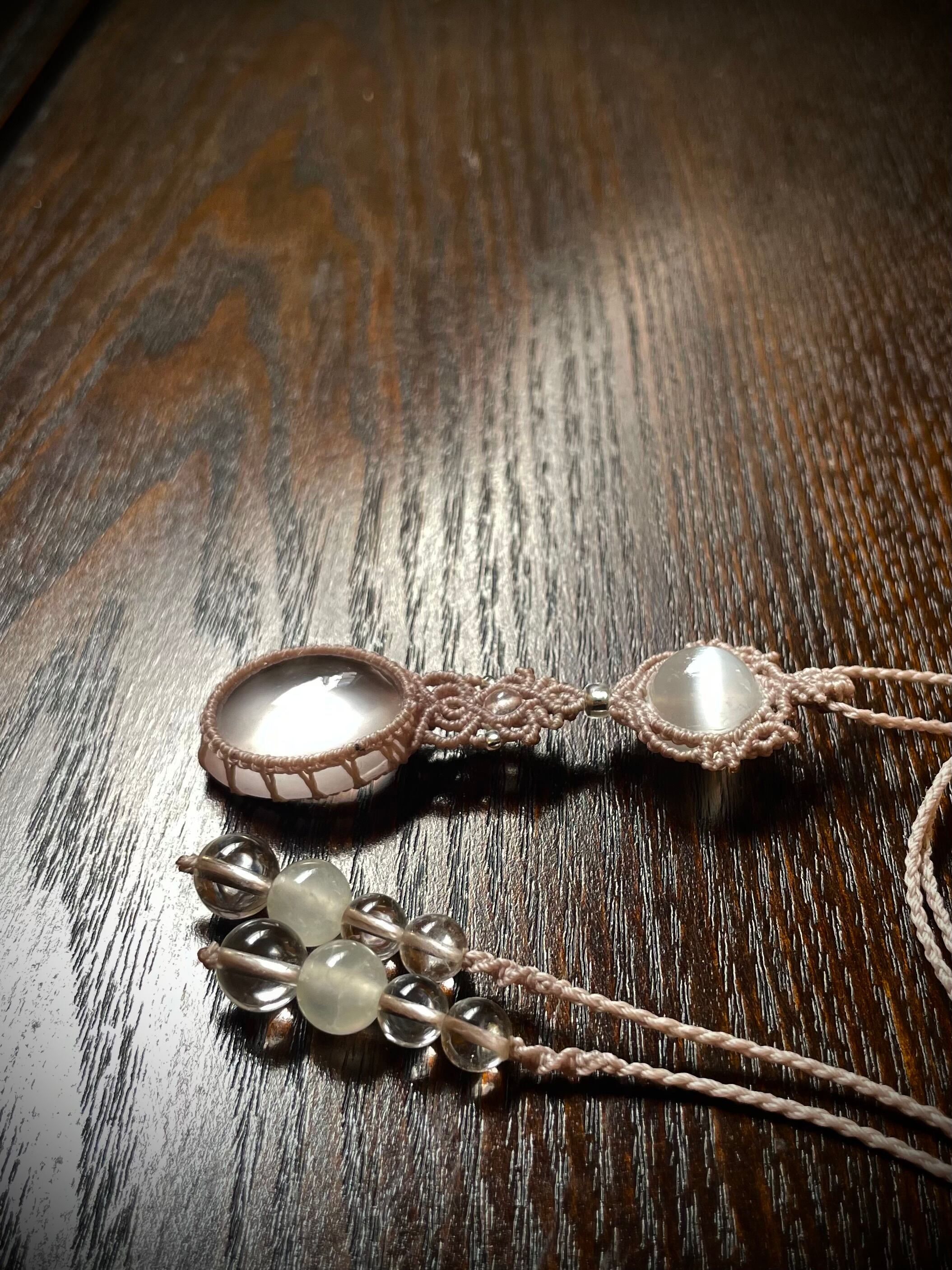 ローズクォーツラブラドライトの天然石マクラメ編みネックレス♪