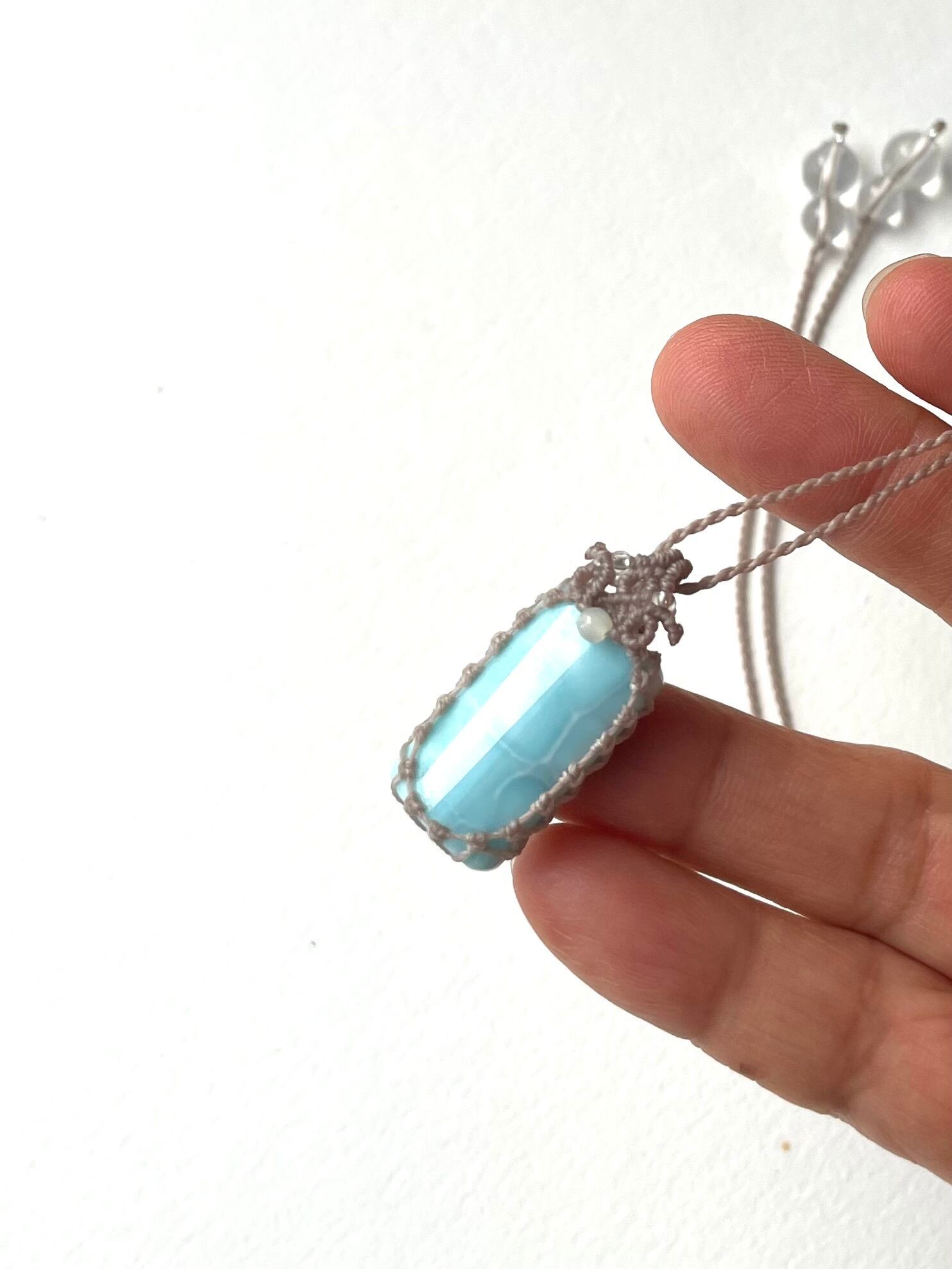 マクラメ 大人 上品 プレゼント 天然石 マクラメネックレス マクラメペンダント マクラメアクセサリー 天然石ネックレス 天然石ペンダント 天然石アクセサリー ラリマー お守り お守りジュエリー
