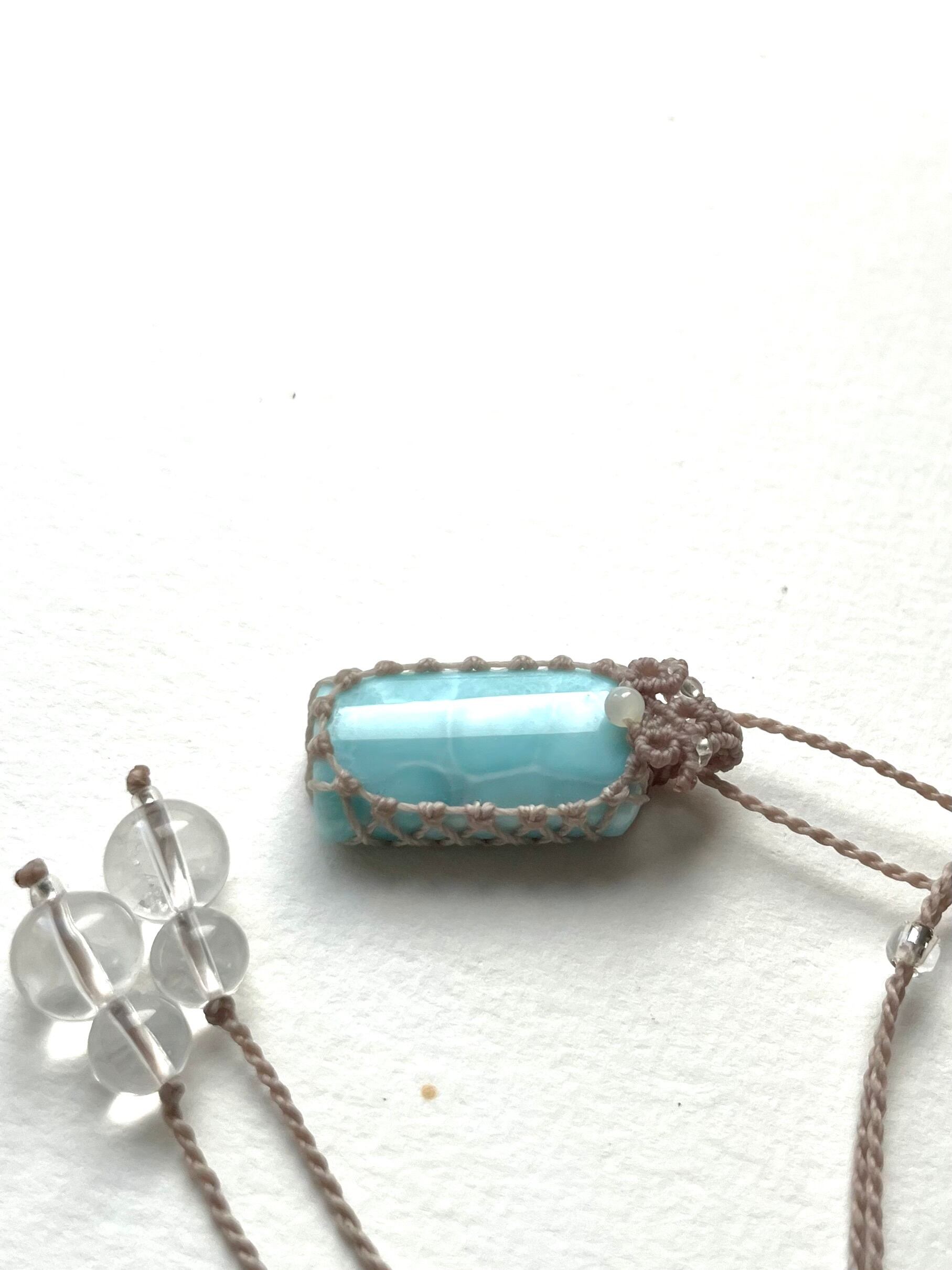 スクエアラリマーの天然石マクラメ編みネックレス♪