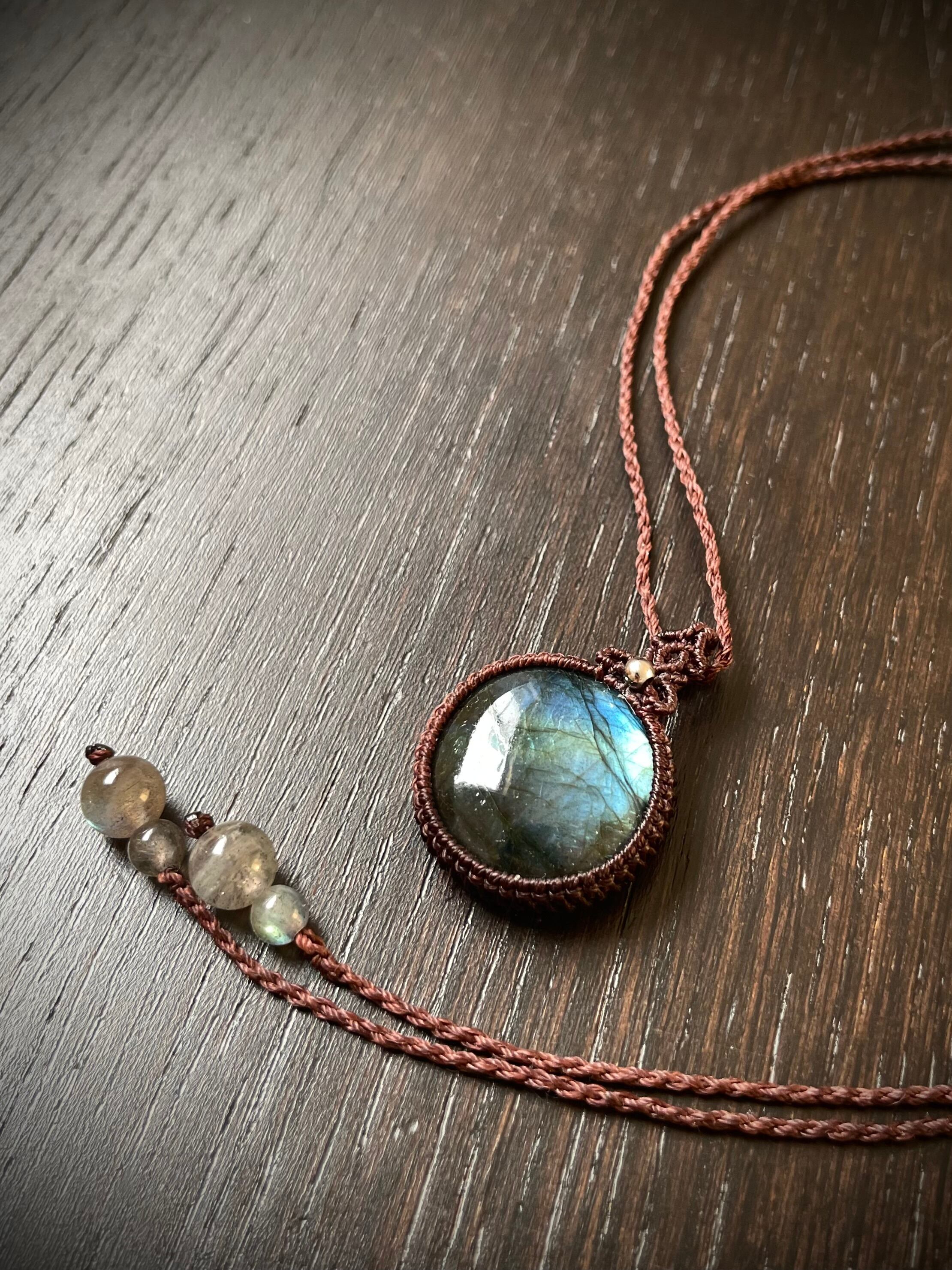 マクラメ 大人 上品 プレゼント プチギフト 天然石 マクラメネックレス マクラメペンダント マクラメアクセサリー 天然石ネックレス 天然石ペンダント 天然石アクセサリー お守りジュエリー ラブラドライト