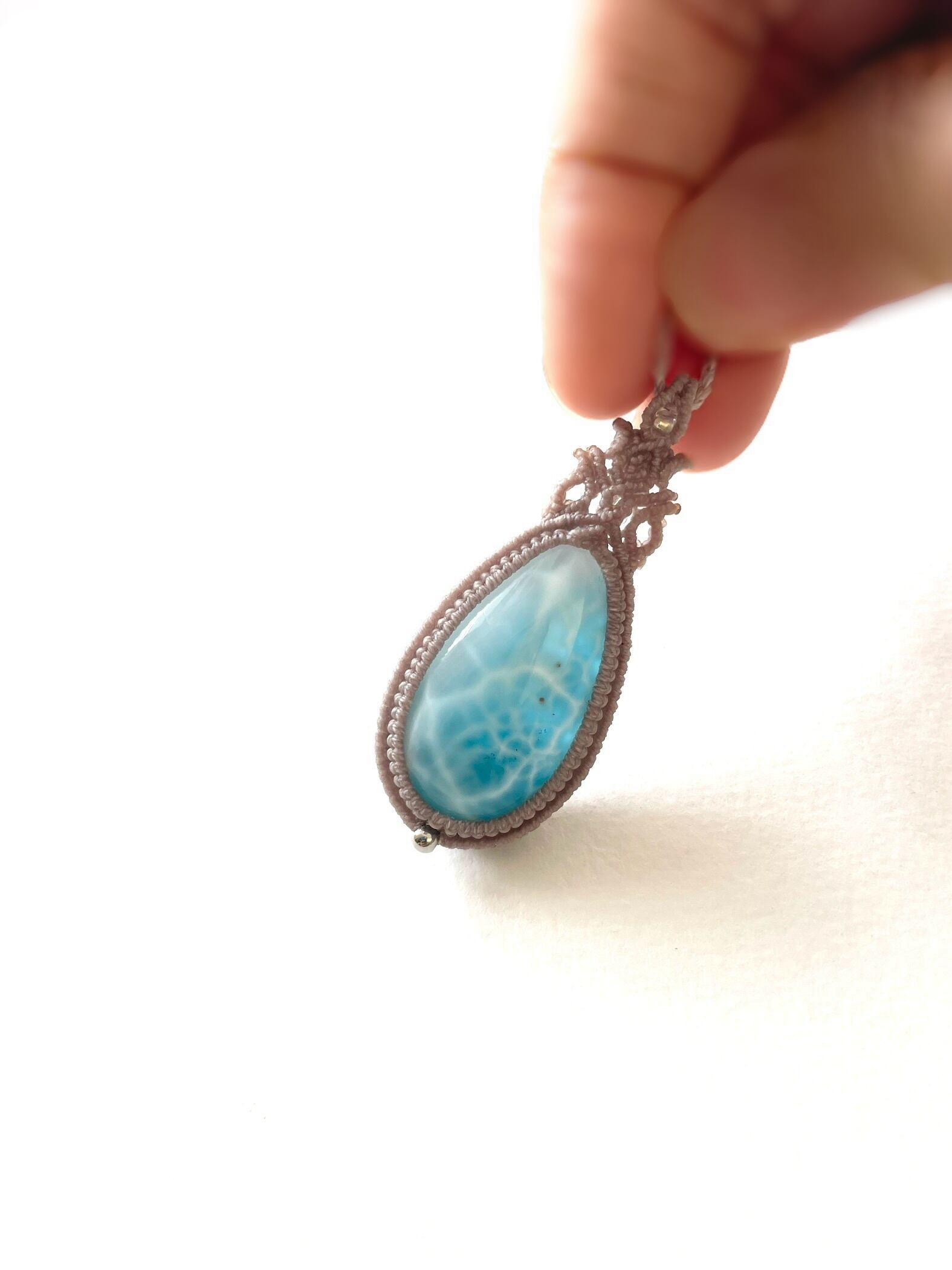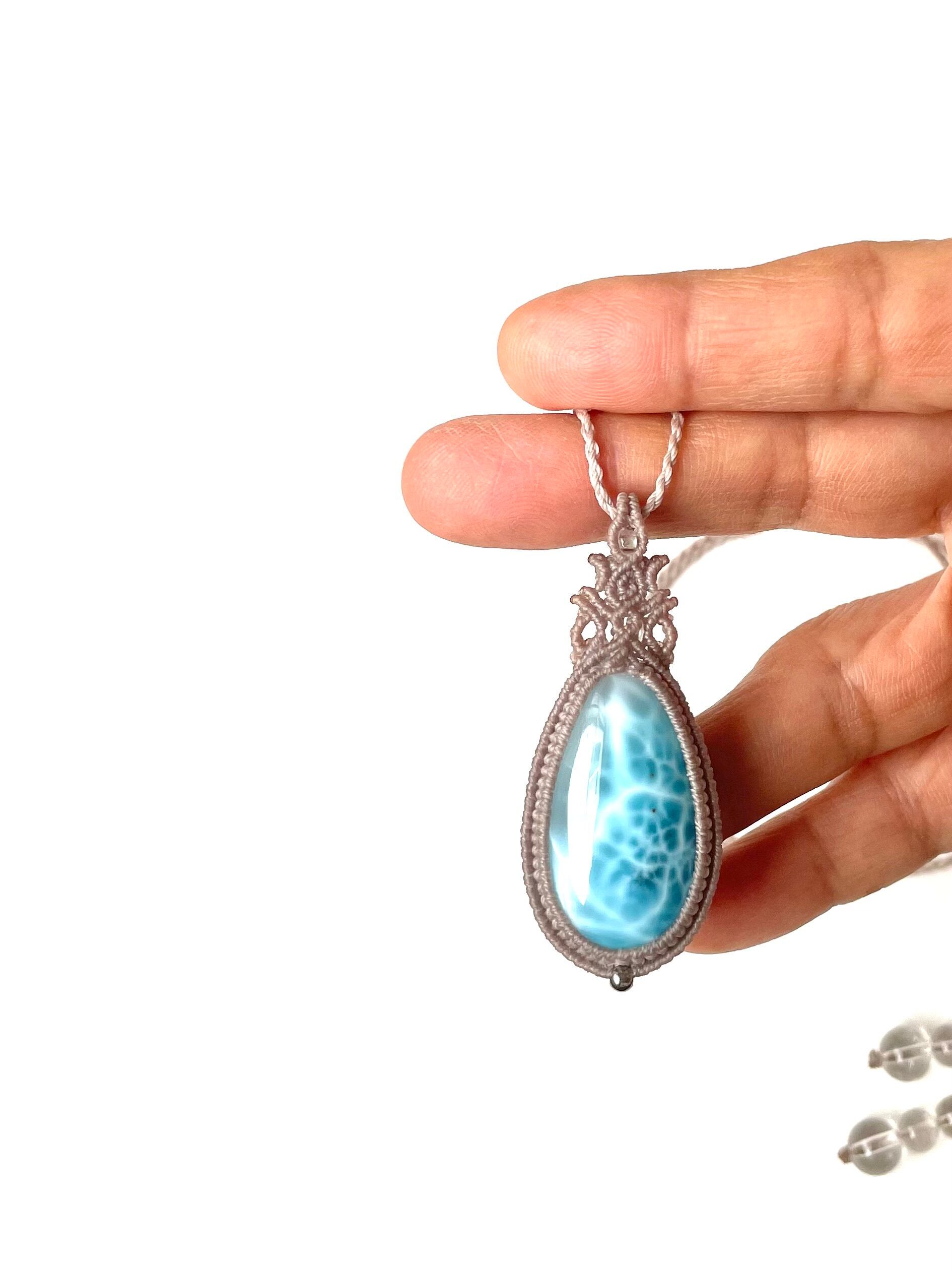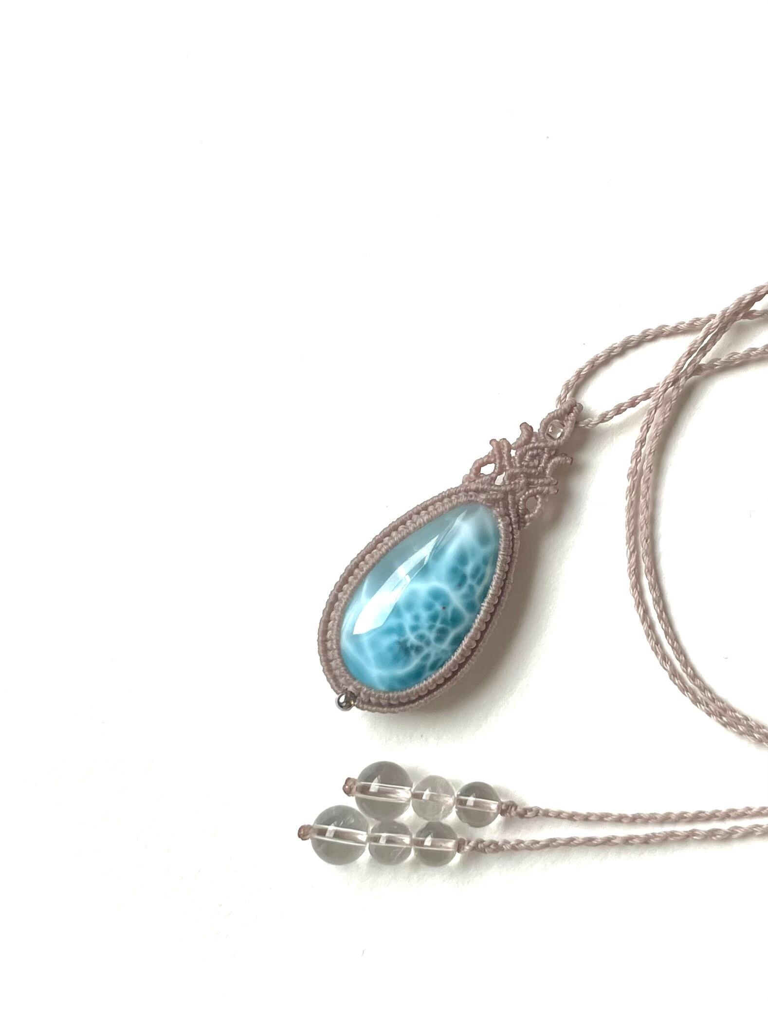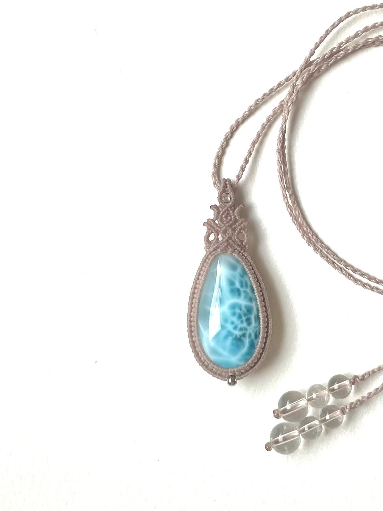 美麗ラリマー♪の天然石マクラメ編みネックレス♪