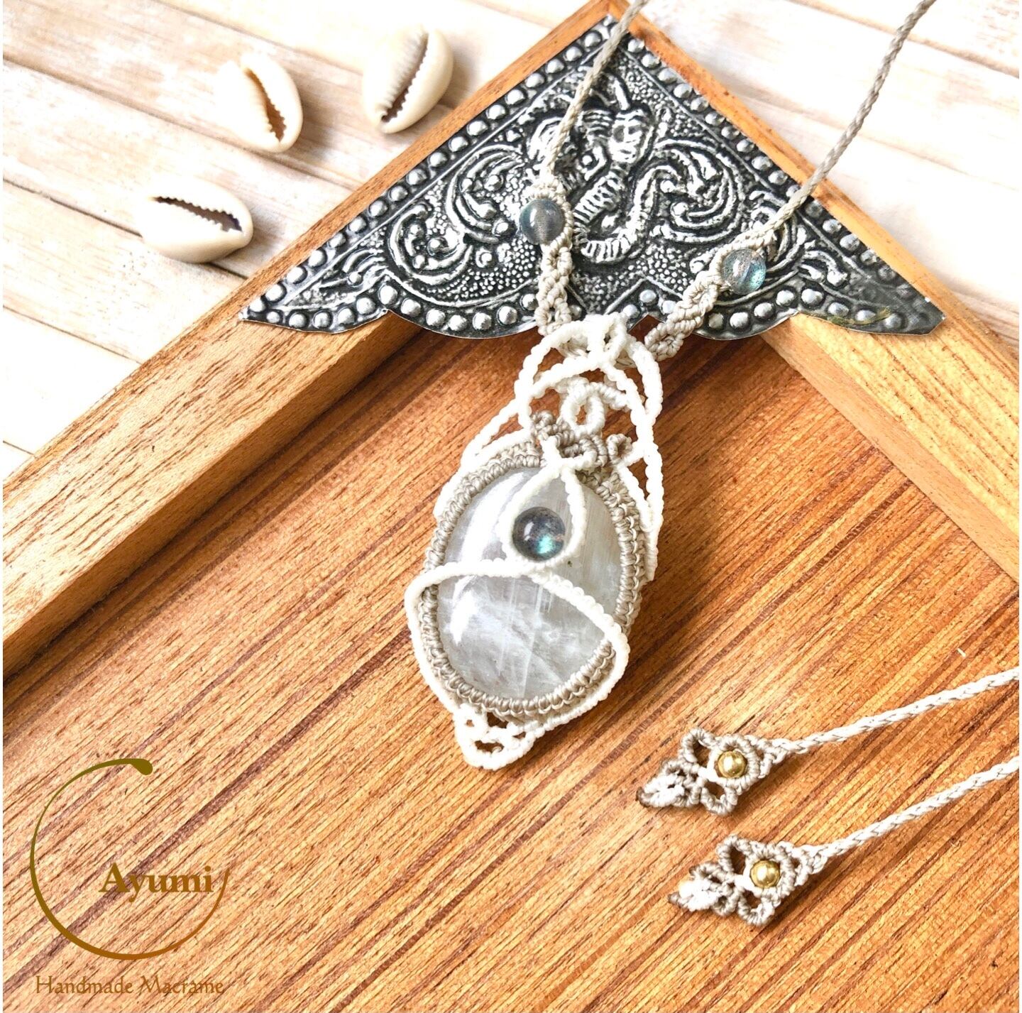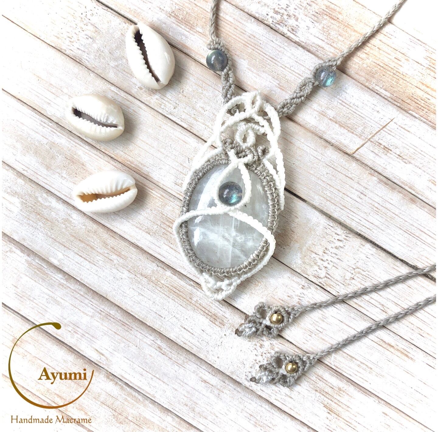 レインボームーンストーン ラブラドライト マクラメネックレス Rainbow Moonstone & Labradorite Necklace