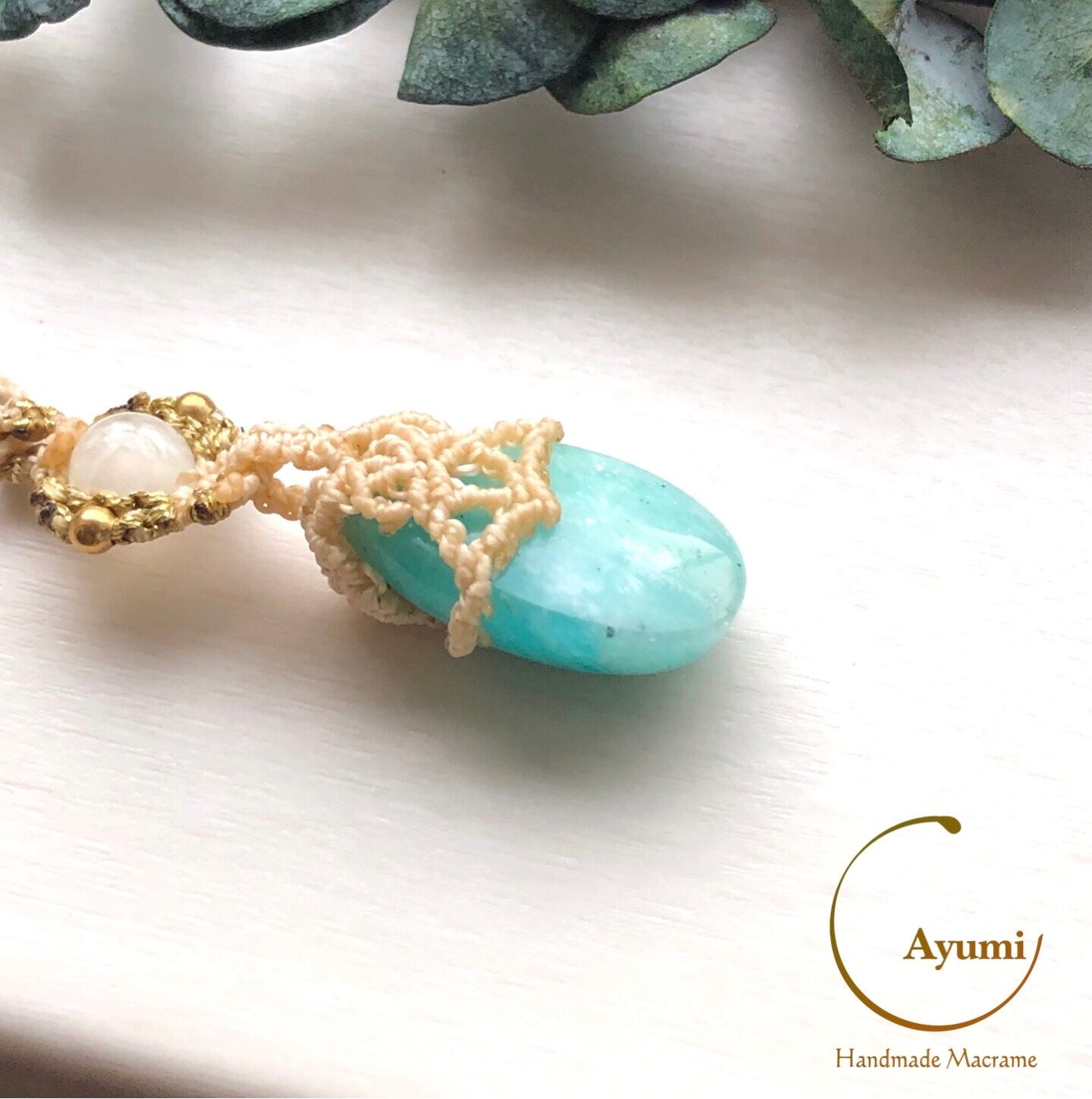 希望の石・アマゾナイトを使った、ゆらゆら揺れるネックレスが出来ました♪