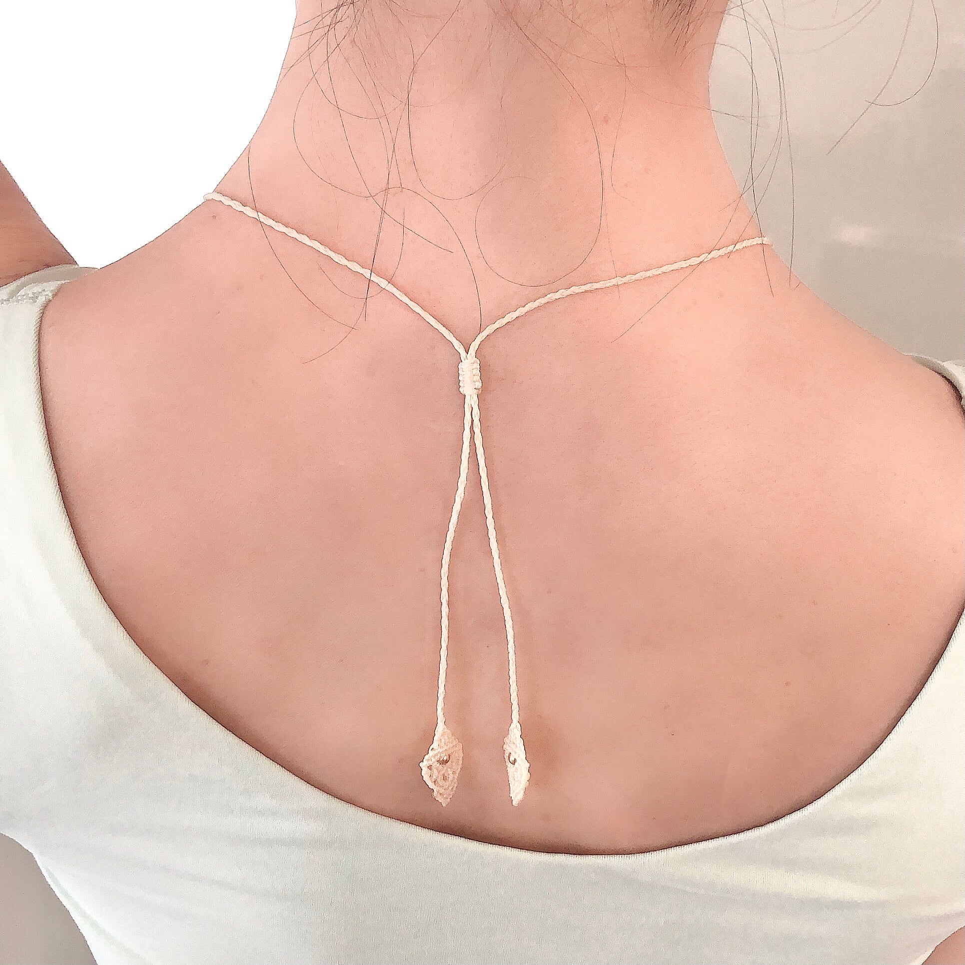 This necklace is hand knotted in macrame techniques, also known as micro macrame with great quality polyester waxed cord from Brazil.