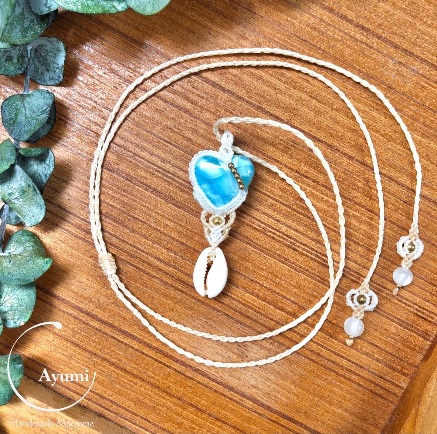ラリマー シェル マクラメネックレス Larimar & Curly Shell Necklace