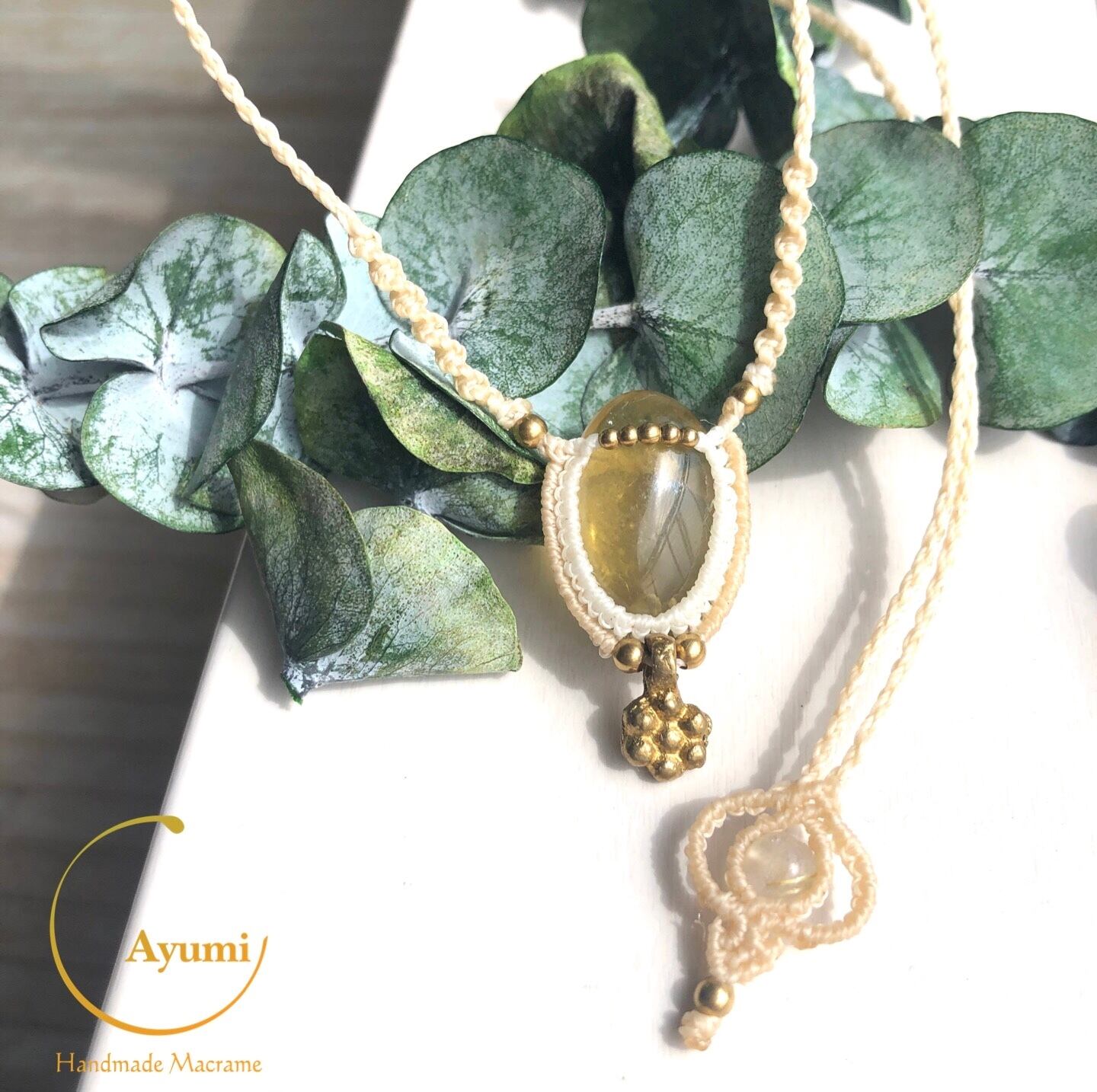 レモンクォーツ ブラスチャーム マクラメネックレスLemon Quartz & Brass Charm Necklace