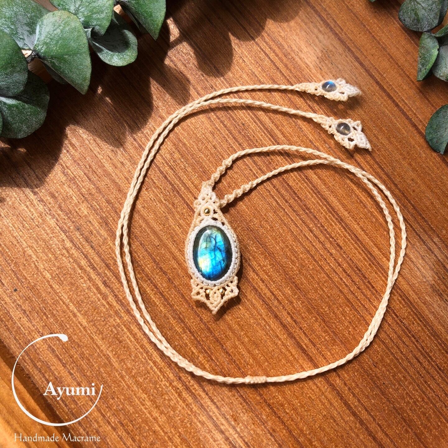 Ayumi Handmade Macrameのロングセラーデザイン!シラーの美しいラブラドライトのネックレスです♪