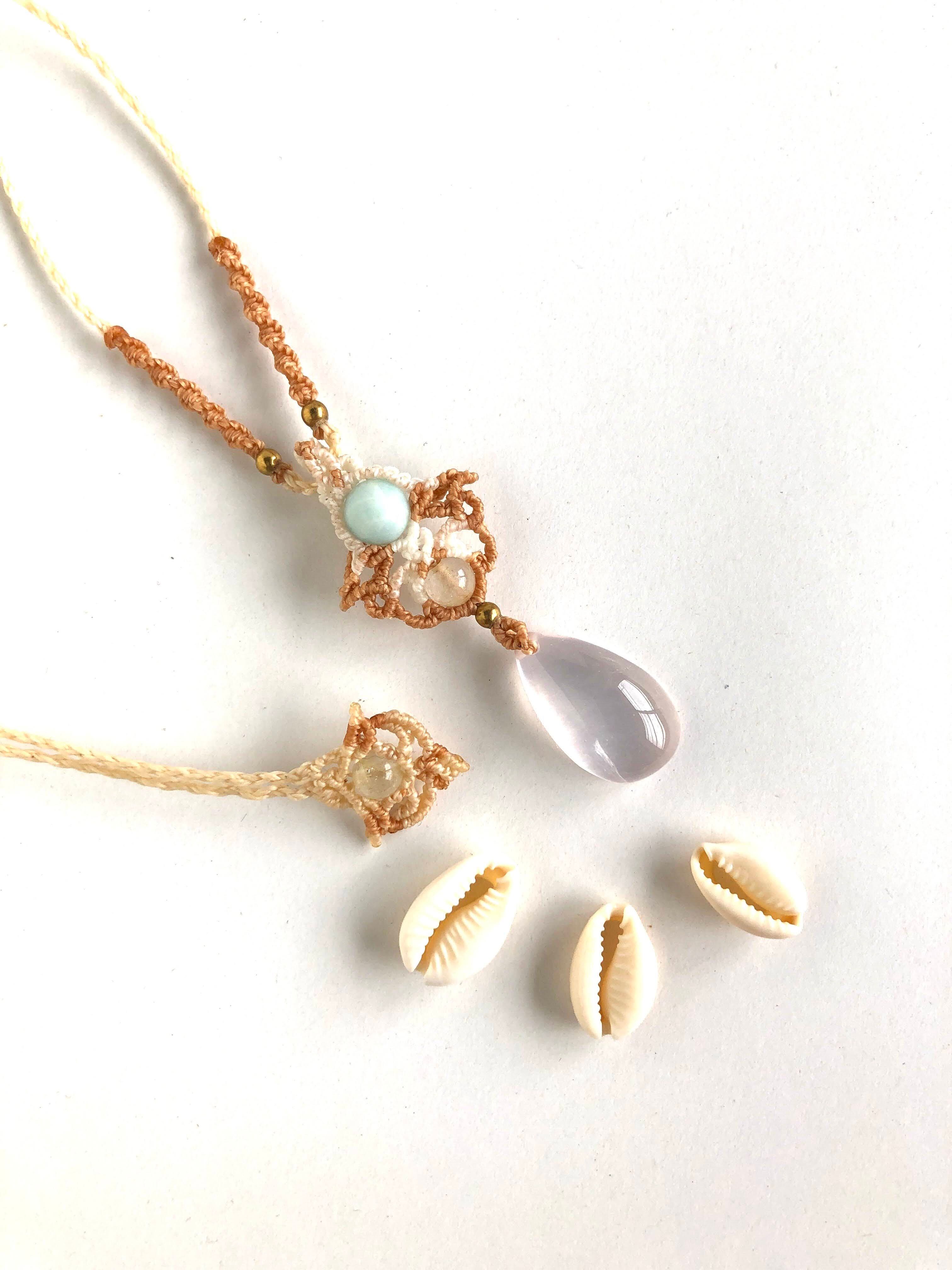 スターローズクォーツ アマゾナイト マクラメネックレス Starrosequartz Amazonite Necklace