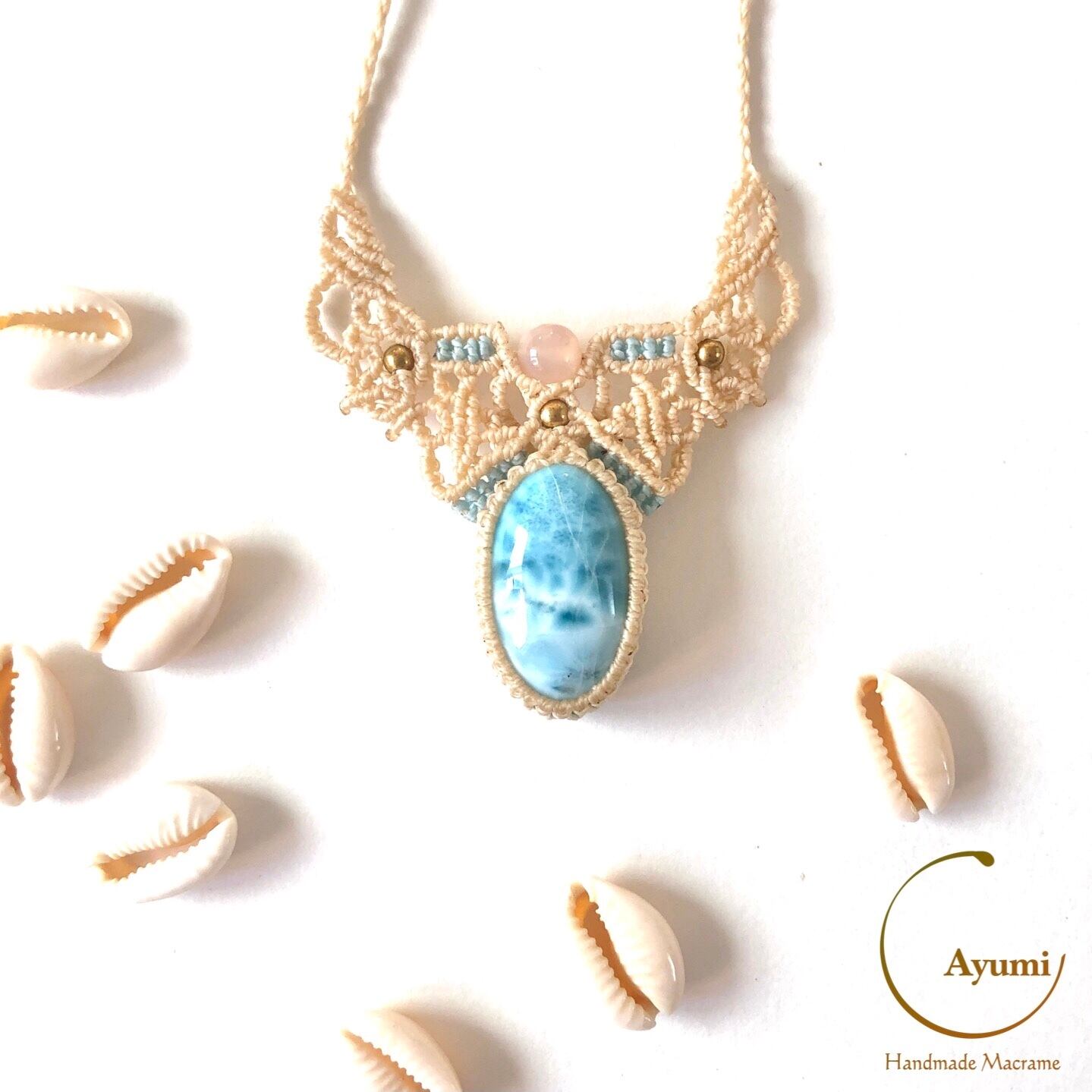 ラリマー 桜アゲート マクラメ ネックレス Larimar Necklace