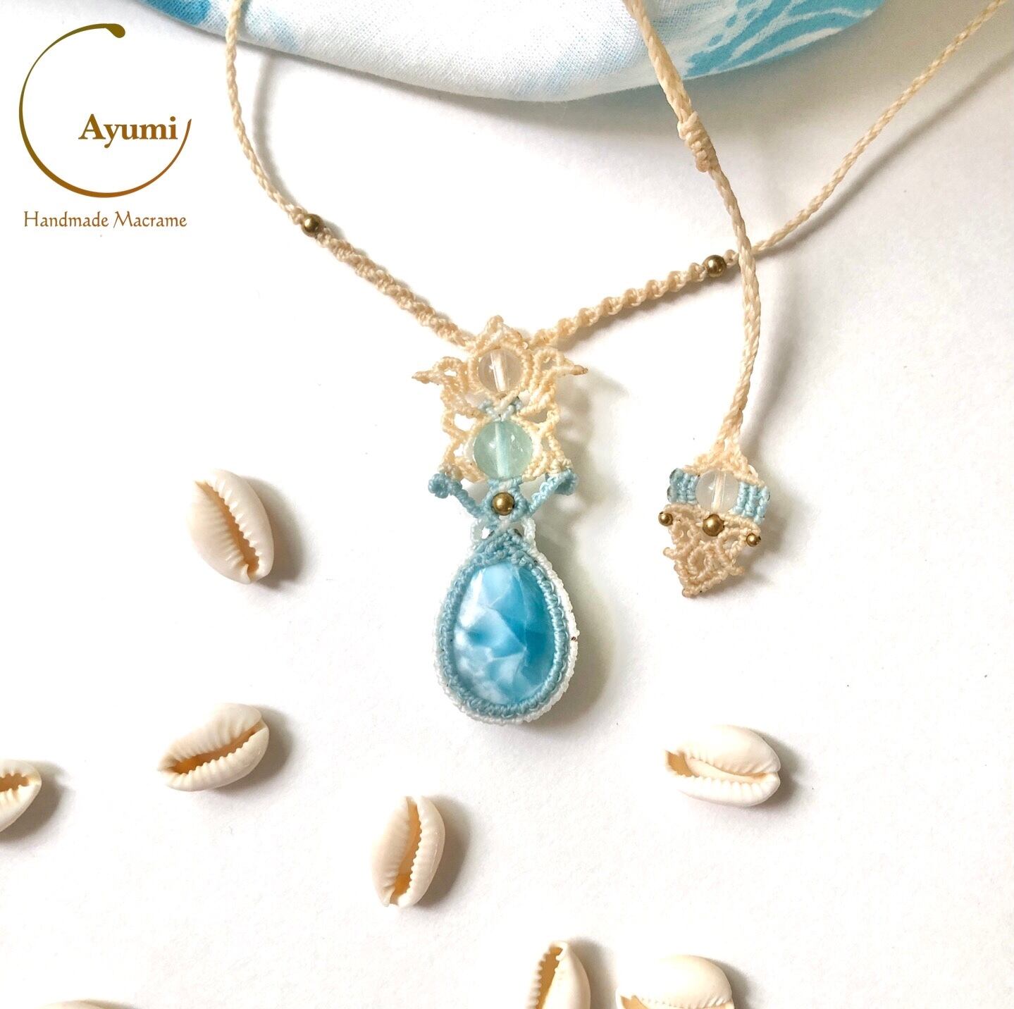 ラリマー フローライト クリアクォーツ マクラメ ネックレス Larimar Necklace