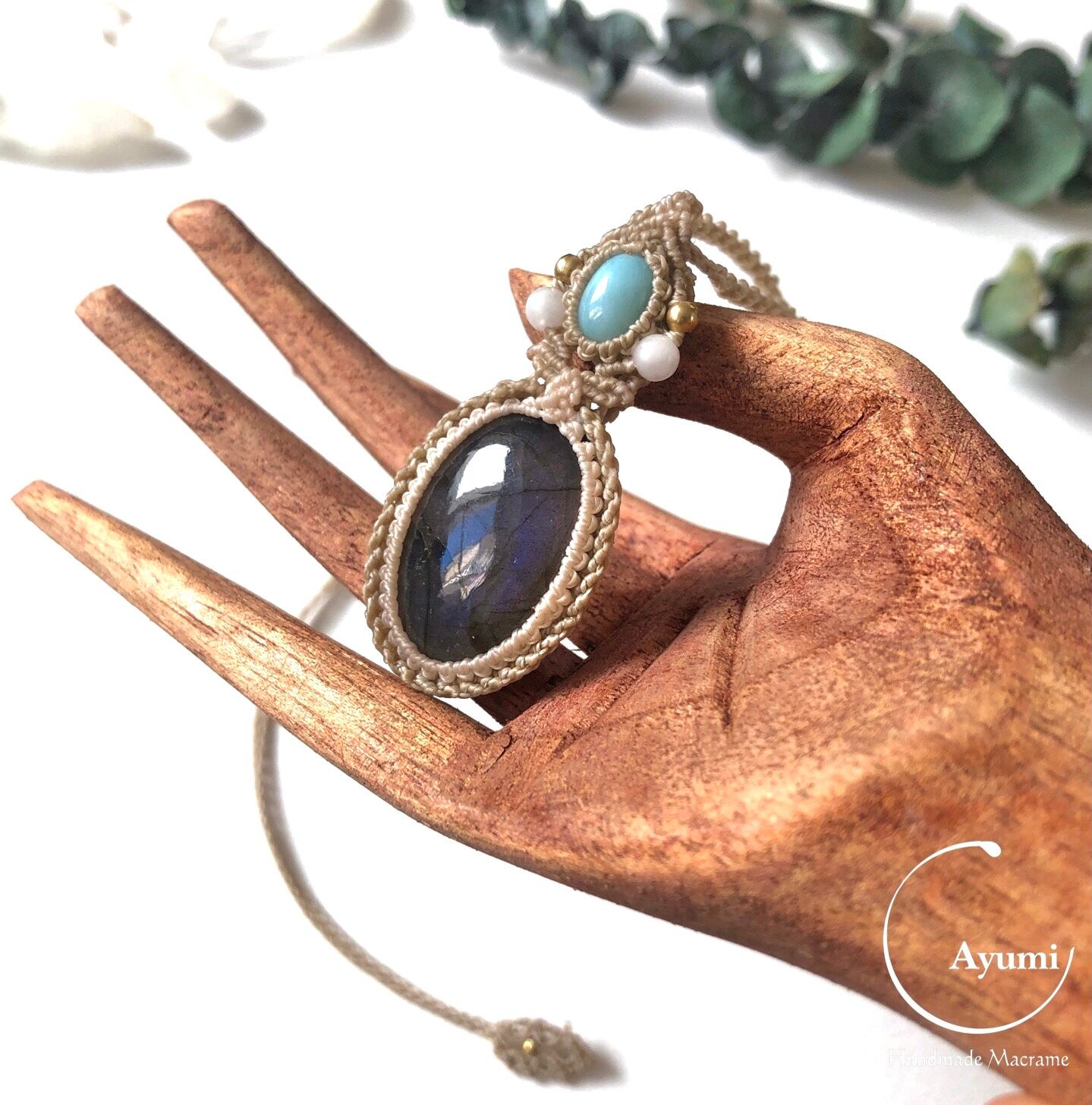 マクラメネックレス ラブラドライト ラリマー Labradorite Necklace