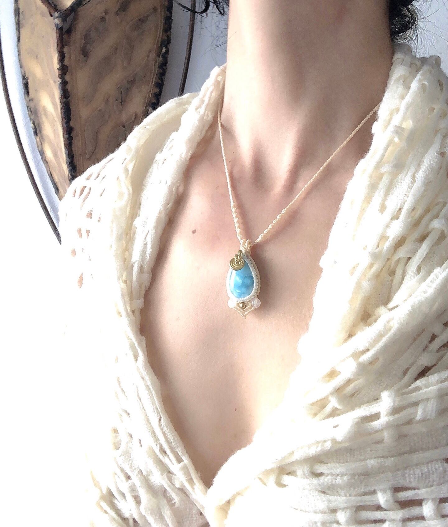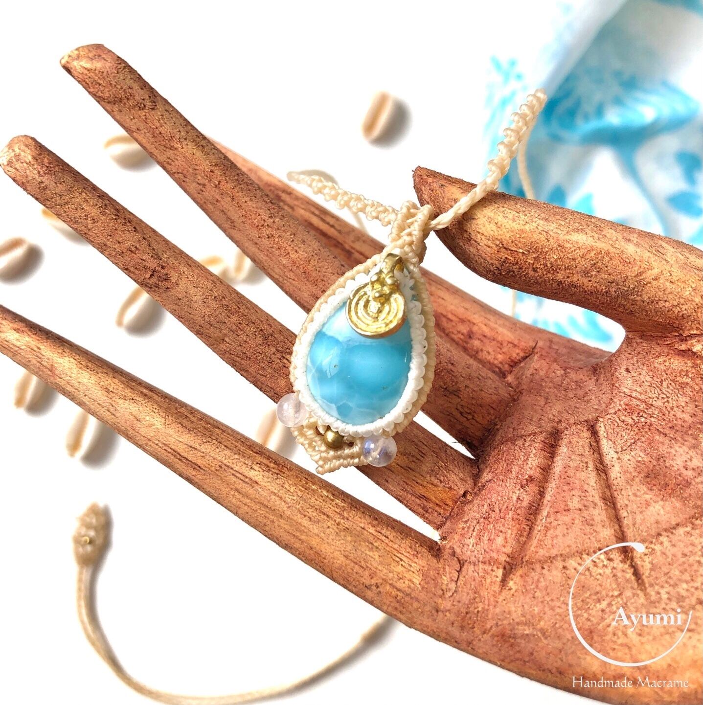 ラリマー レインボームーンストーン マクラメ ネックレス Larimar Necklace