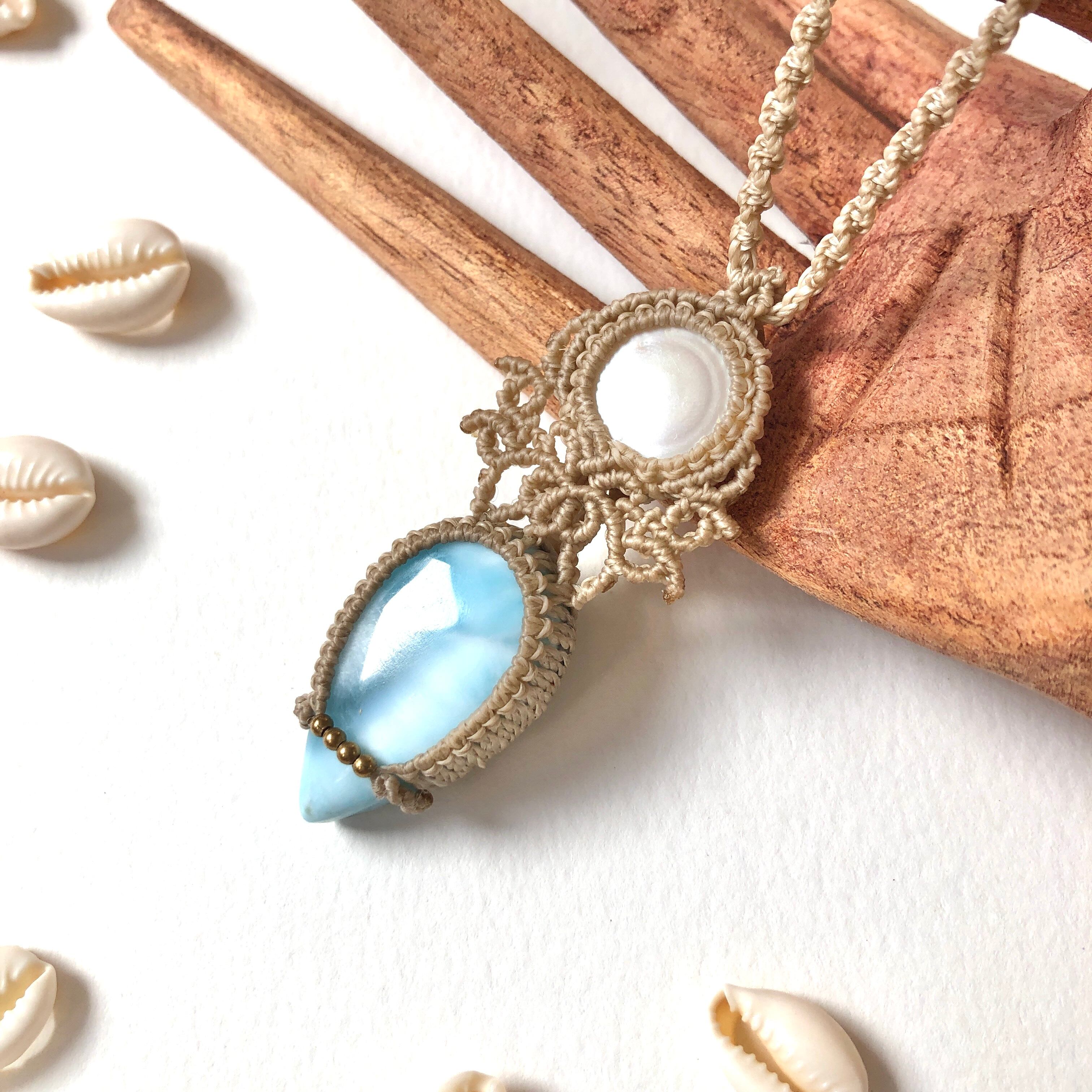 マクラメ 大人 上品 プレゼント ギフト 天然石 パワーストーン マクラメネックレス マクラメペンダント ラリマー