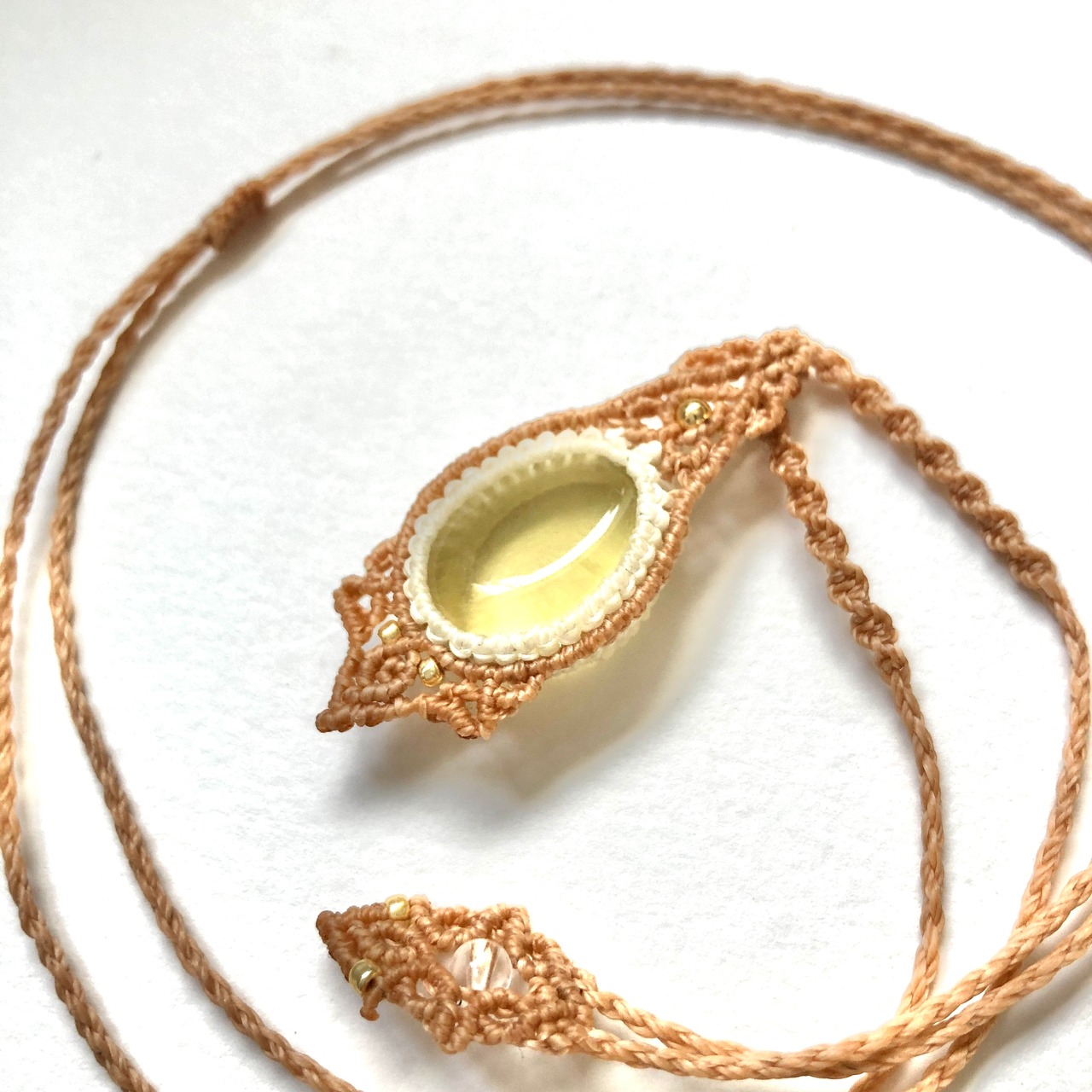 one*光のドロップ♪レモンクォーツの天然石マクラメネックレス Lemon Quartz Necklace