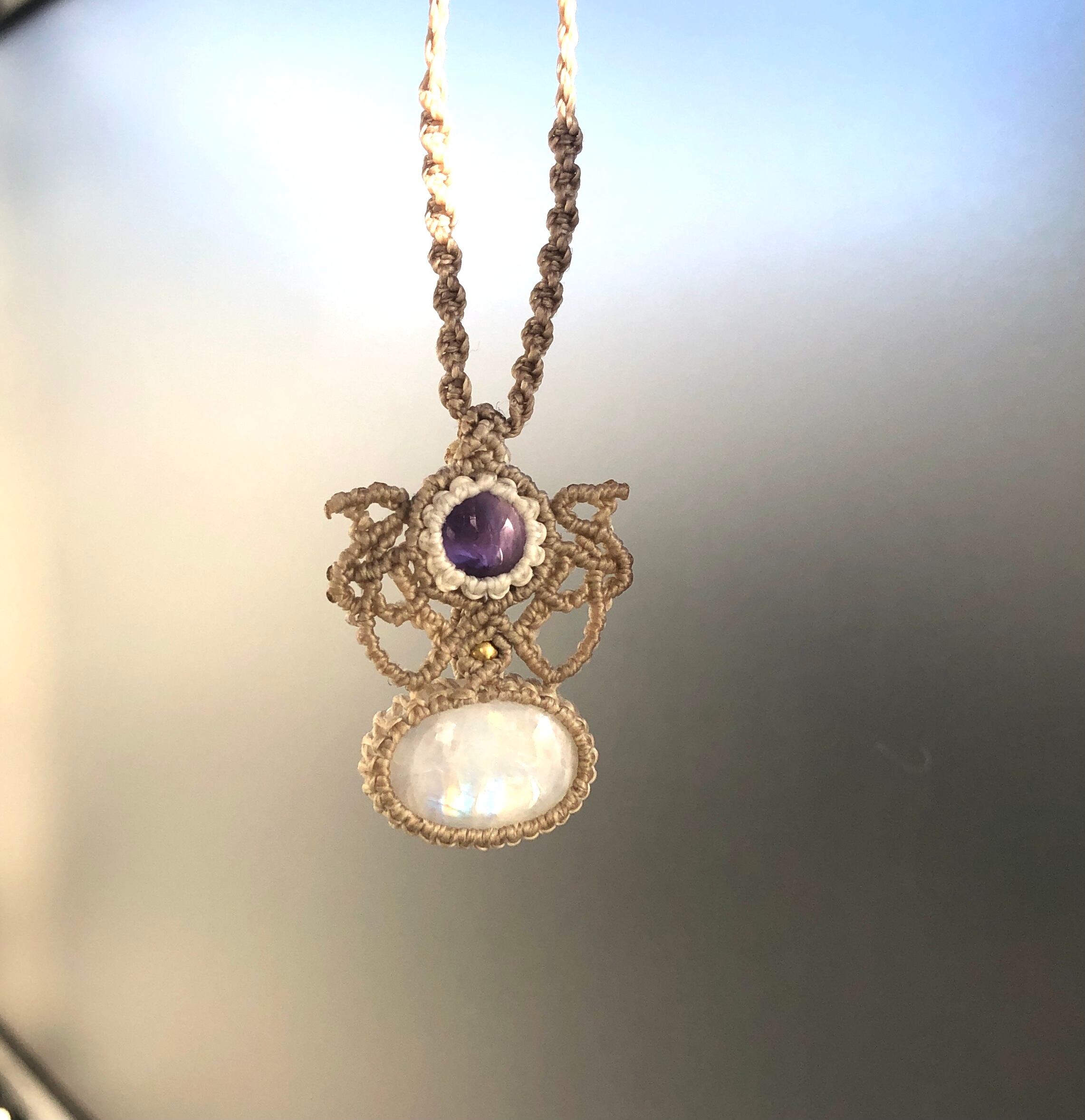 hyoi*真実のジュエリー・アメジスト【2月誕生石】とレインボームーンストーンの天然石マクラメネックレス♪ Rainbow moonstone Necklace