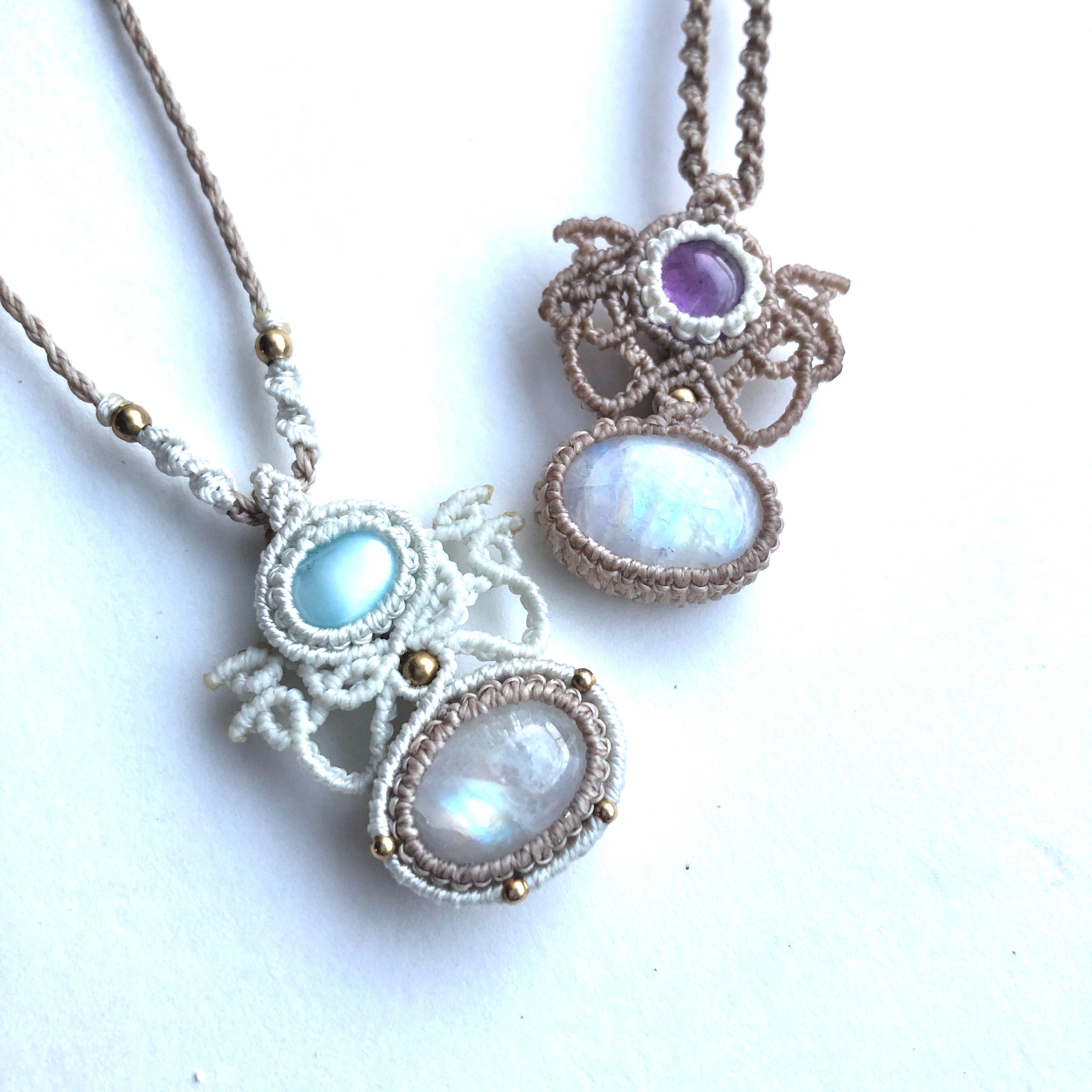 マクラメ 大人 上品 プレゼント プチギフト 天然石 マクラメネックレス マクラメペンダント マクラメアクセサリー 天然石ネックレス 天然石ペンダント 天然石アクセサリー クリスマス お守り お守りジュエリー アメジスト レインボームーンストーン 誕生日
