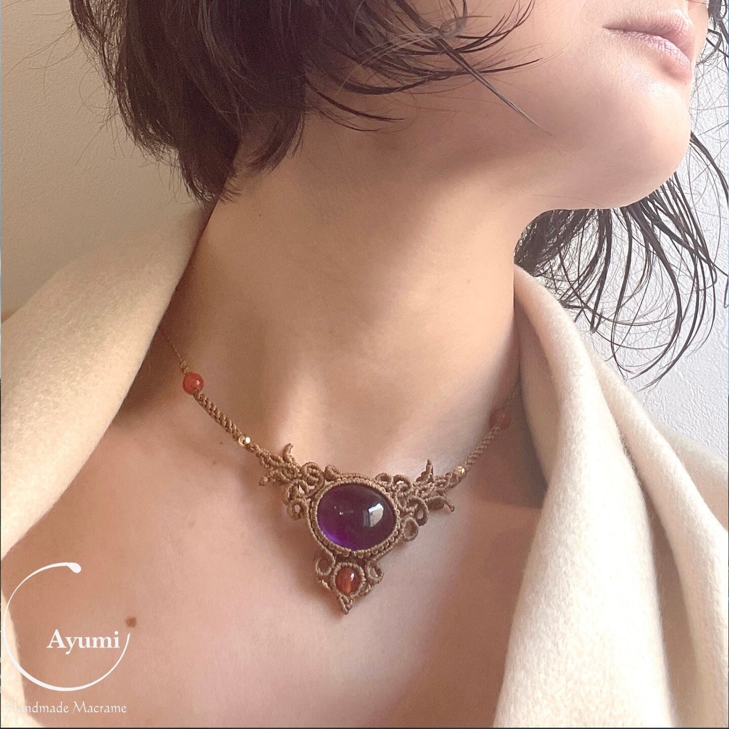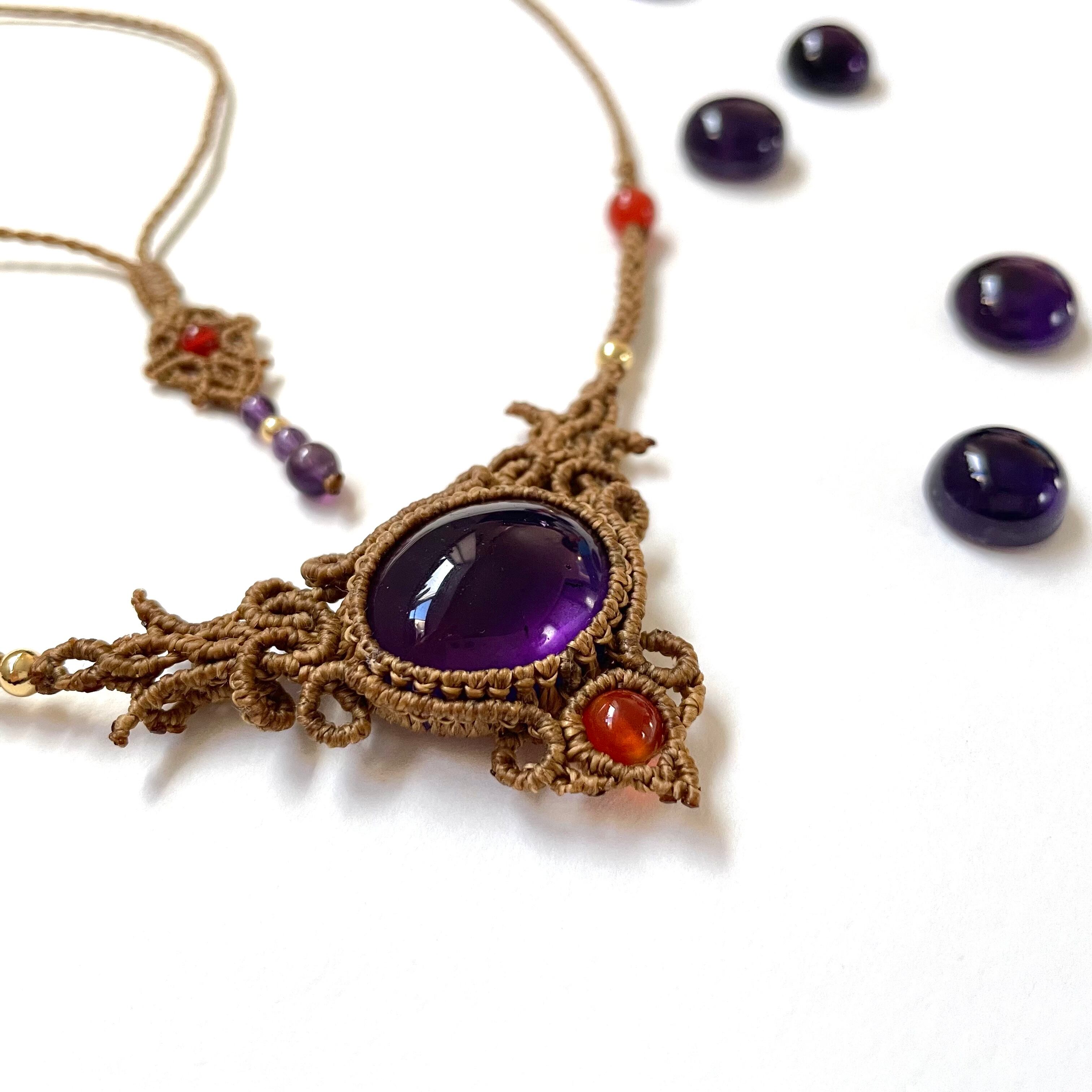 マクラメ 大人 上品 プレゼント 天然石 マクラメネックレス マクラメペンダント マクラメアクセサリー 天然石ネックレス 天然石ペンダント 天然石アクセサリー アメジスト アゲート お守り お守りジュエリー