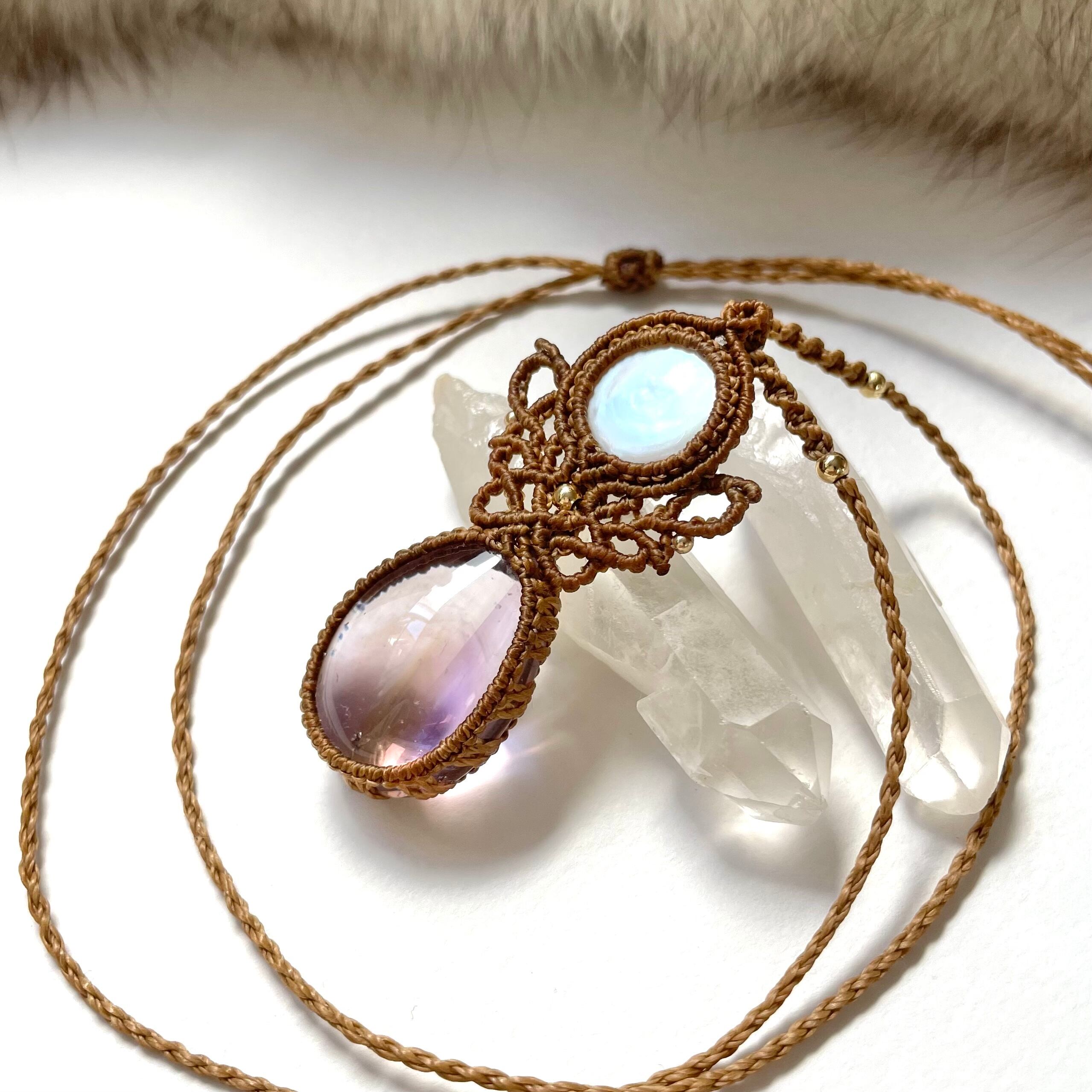 マクラメ 大人 上品 プレゼント プチギフト 天然石 マクラメネックレス マクラメペンダント マクラメアクセサリー 天然石ネックレス 天然石ペンダント 天然石アクセサリー クリスマス パール アメトリン お守り お守りジュエリー