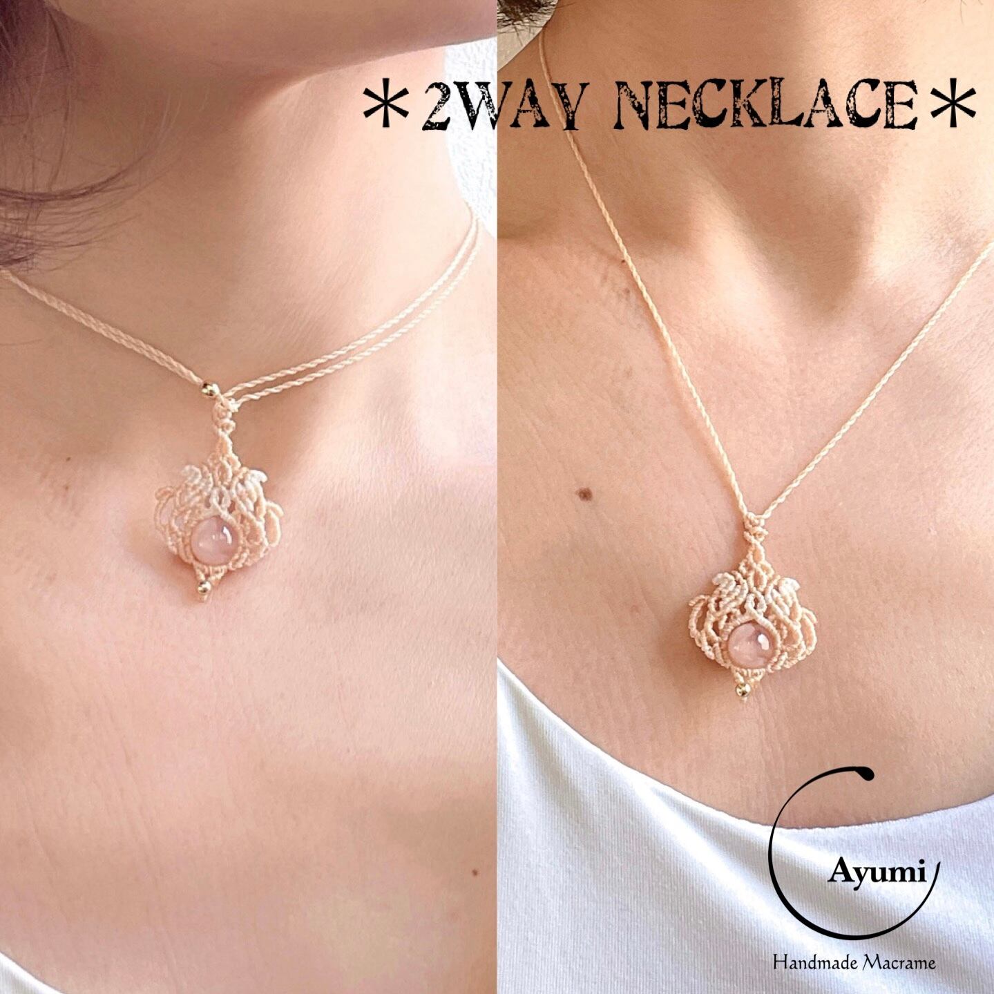 桜アゲート2wayマクラメネックレス・天然石アクセサリー♪ Sakura Agate Necklace