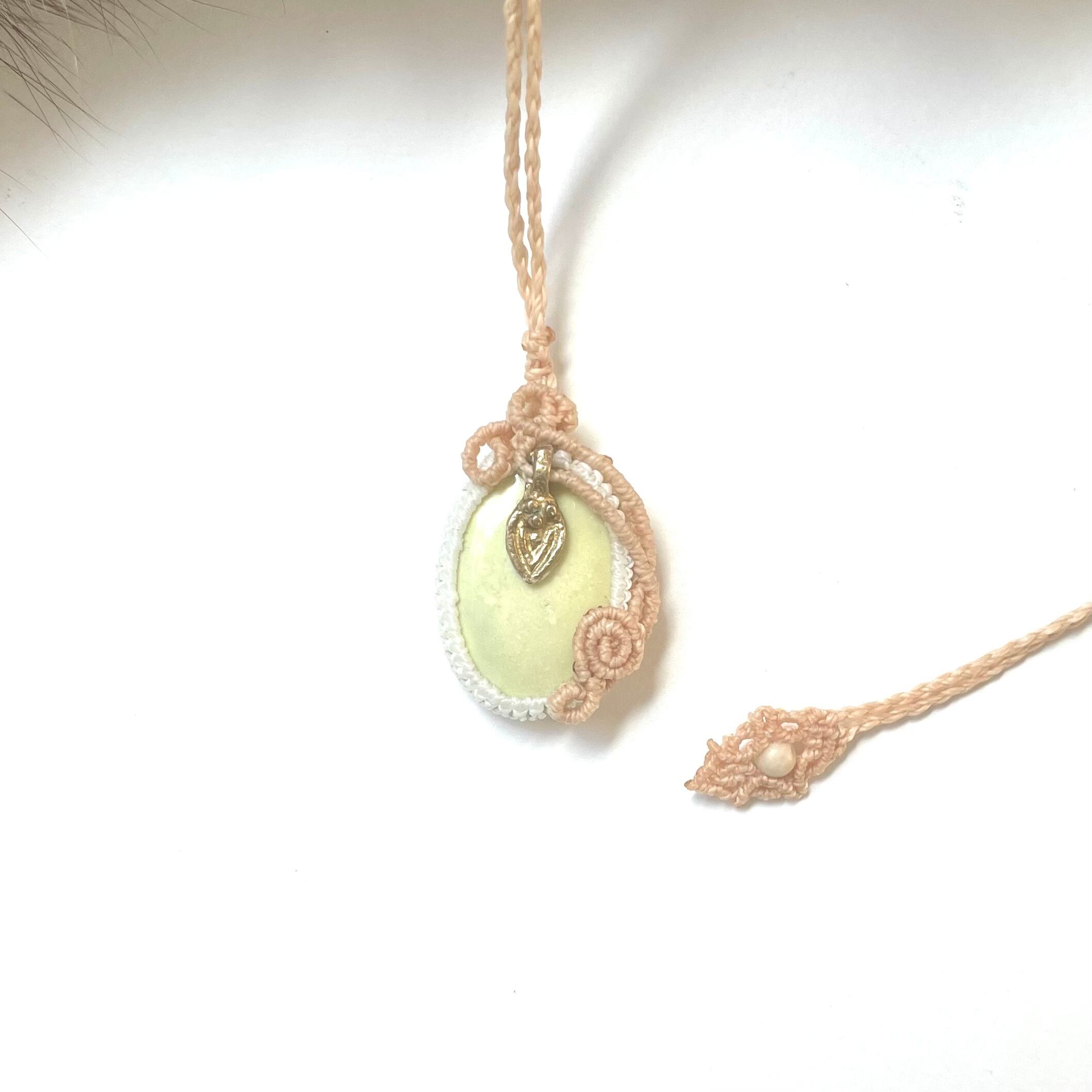 つるつる春色♪ハウライトの天然石アクセサリー・マクラメネックレス Howlite Necklace