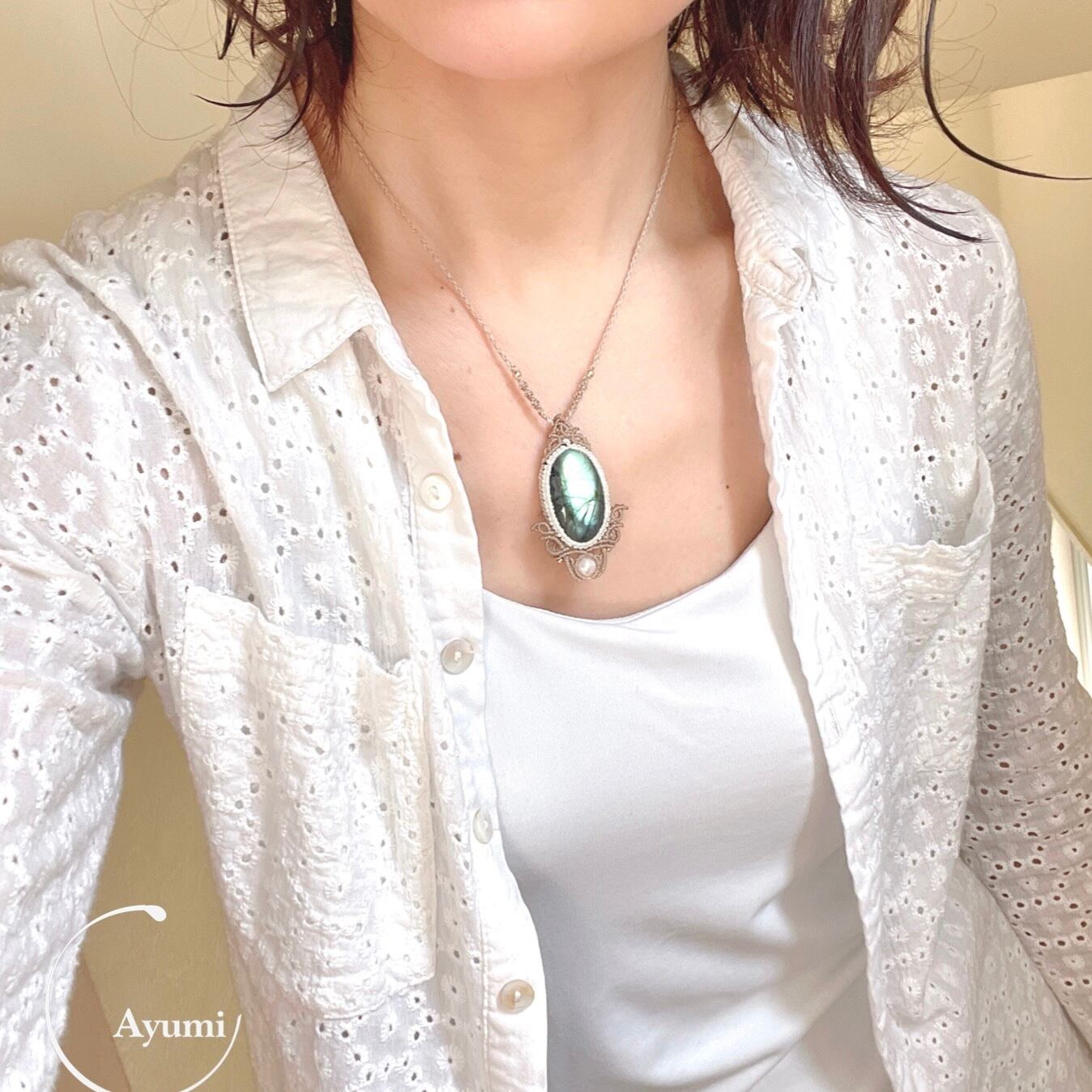 誰よりもあなたの側に♪神秘のお守り*大粒ラブラドライト天然石アクセサリー・マクラメネックレス Labradorite Necklace