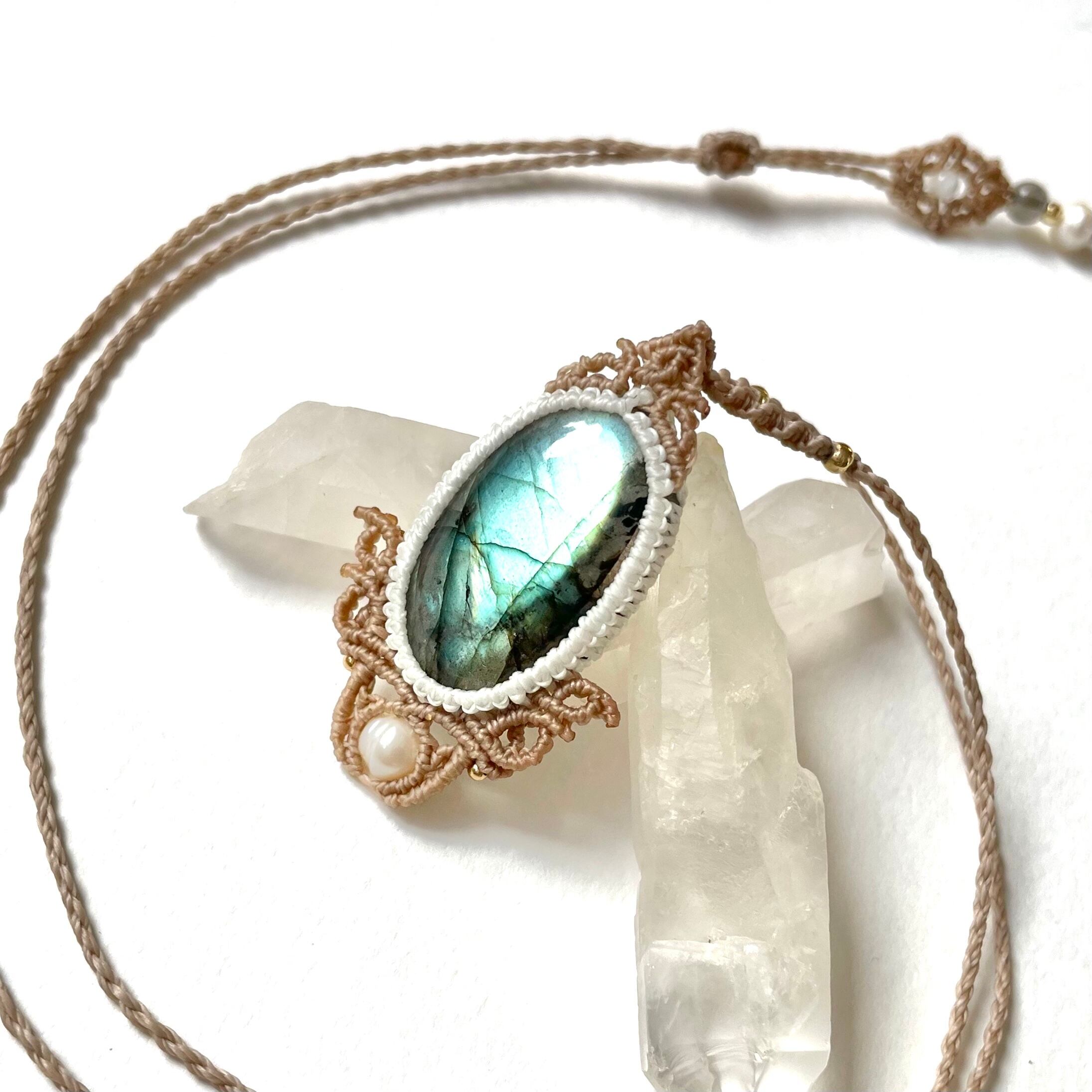 マクラメ 大人 上品 プレゼント プチギフト 天然石 マクラメネックレス マクラメペンダント マクラメアクセサリー 天然石ネックレス 天然石ペンダント 天然石アクセサリー お守り お守りジュエリー ラブラドライト
