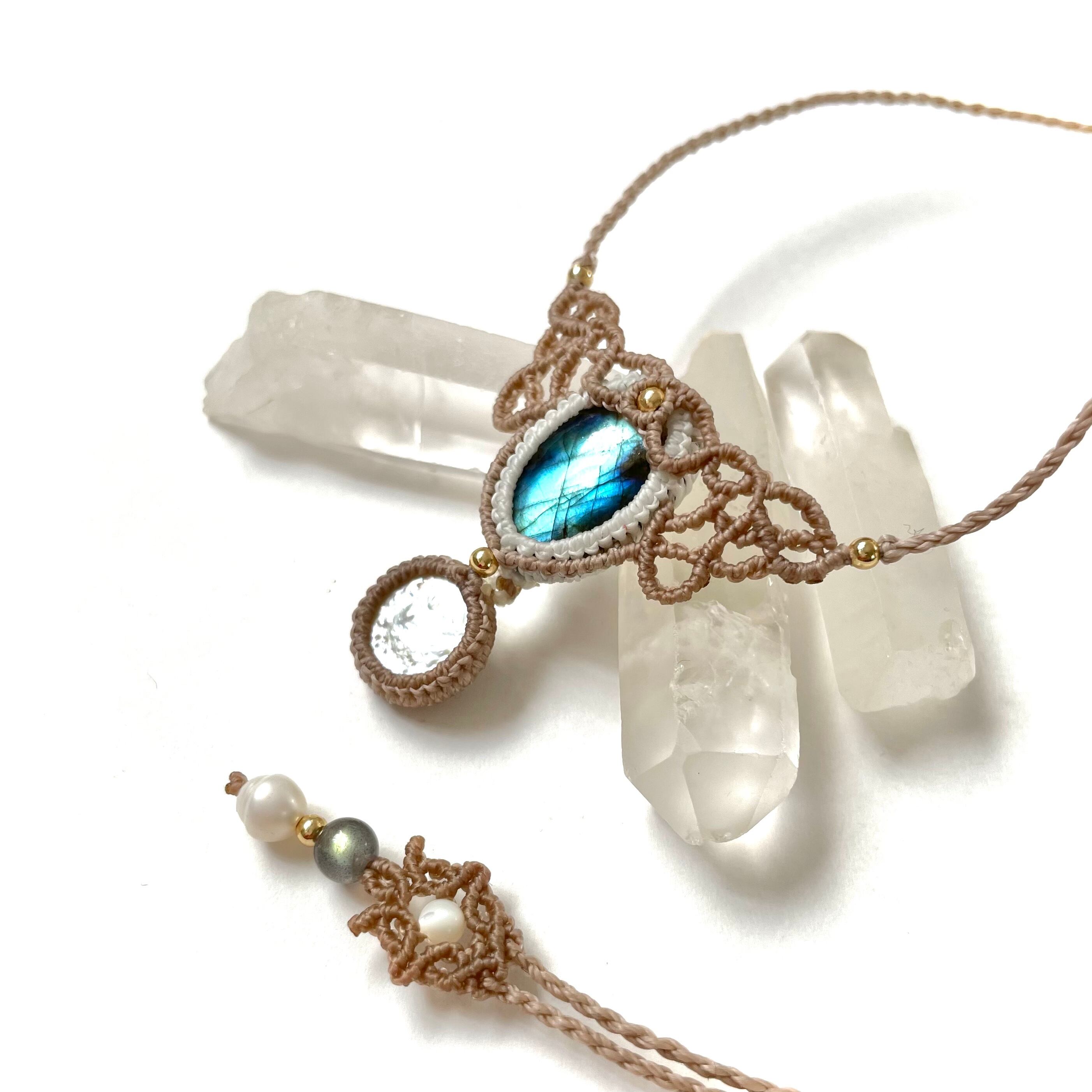 マクラメ 大人 上品 プレゼント プチギフト 天然石 マクラメネックレス マクラメペンダント マクラメアクセサリー 天然石ネックレス 天然石ペンダント 天然石アクセサリー お守り お守りジュエリー ラブラドライト パール 誕生石