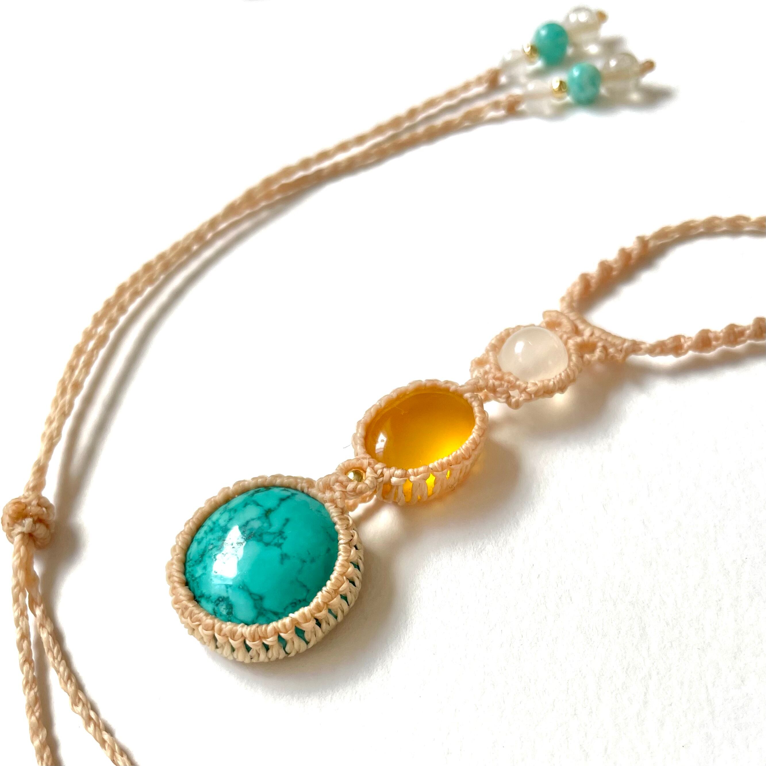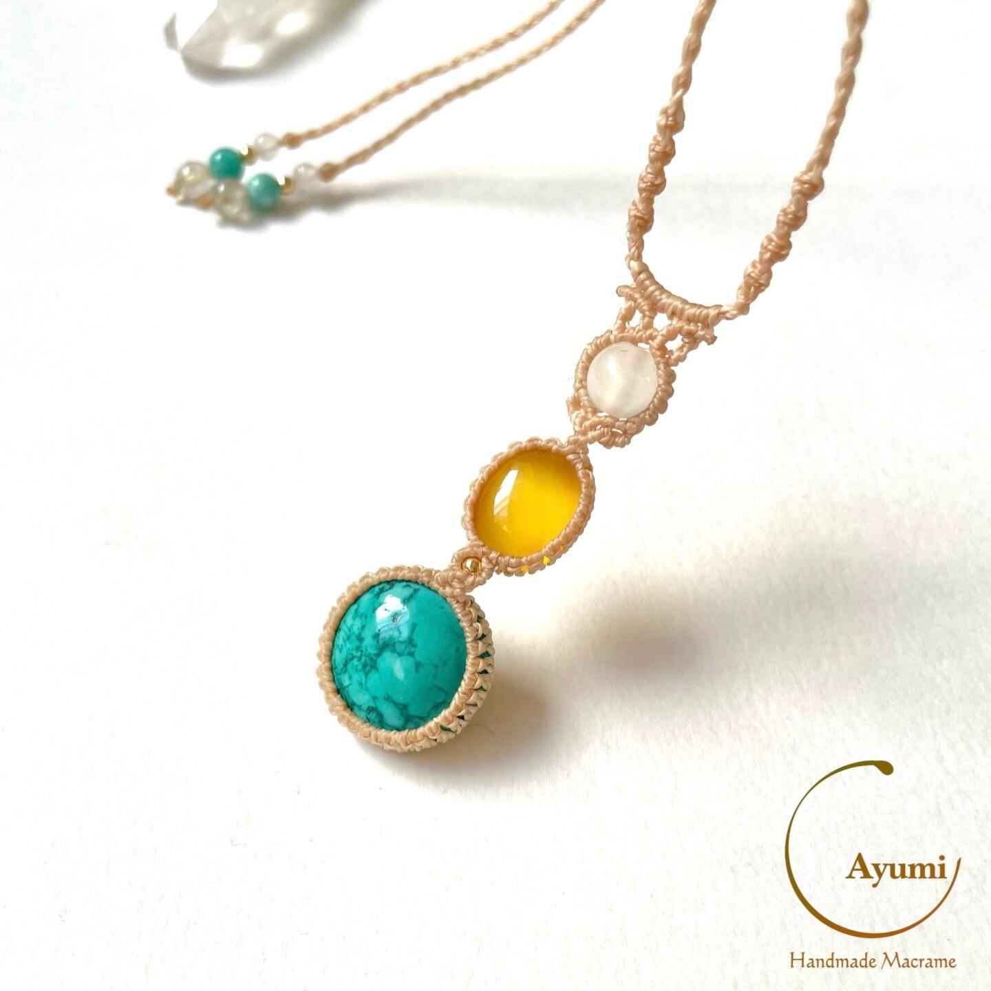 three*カルセドニーとターコイズの天然石マクラメネックレス♪
